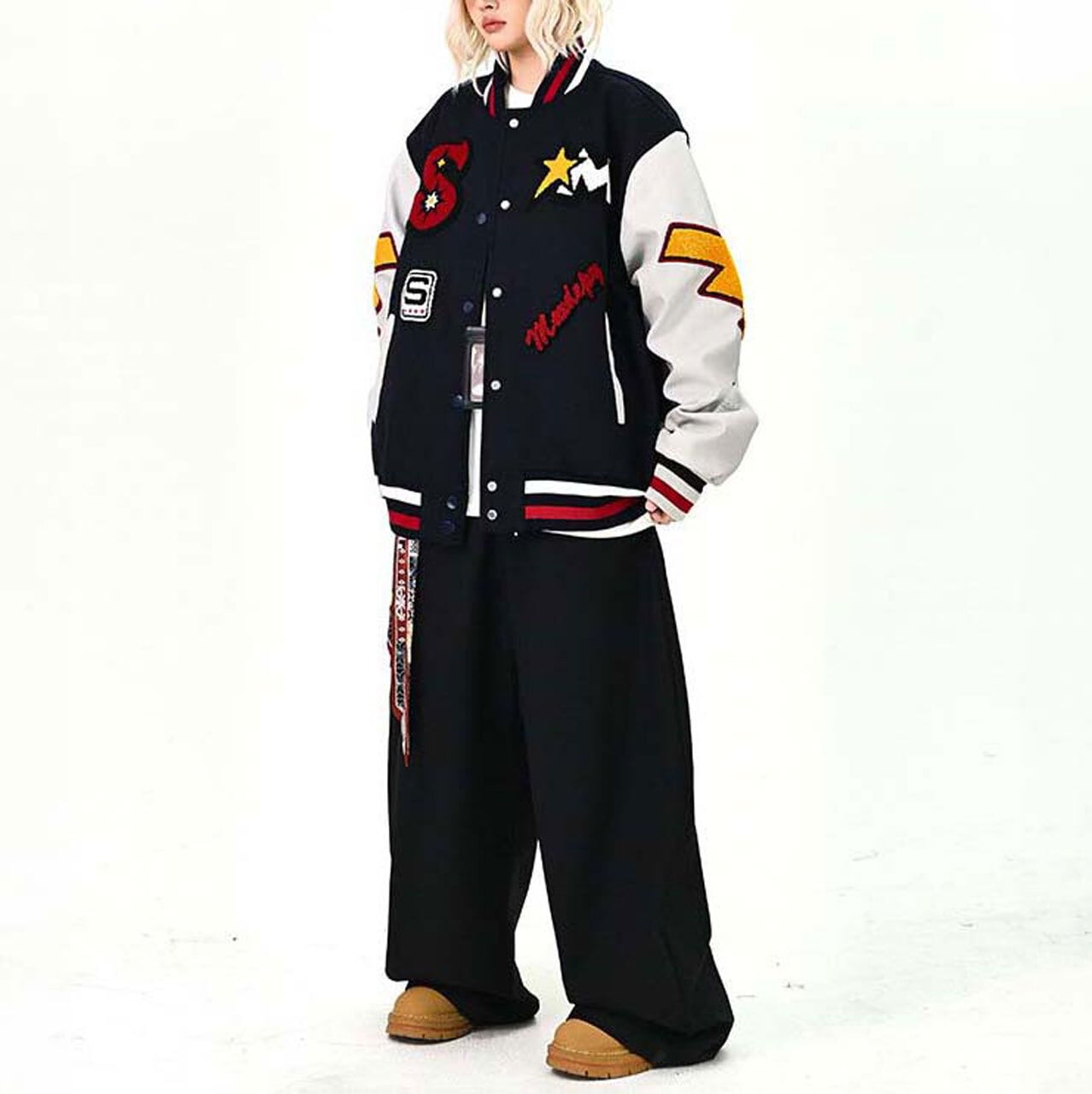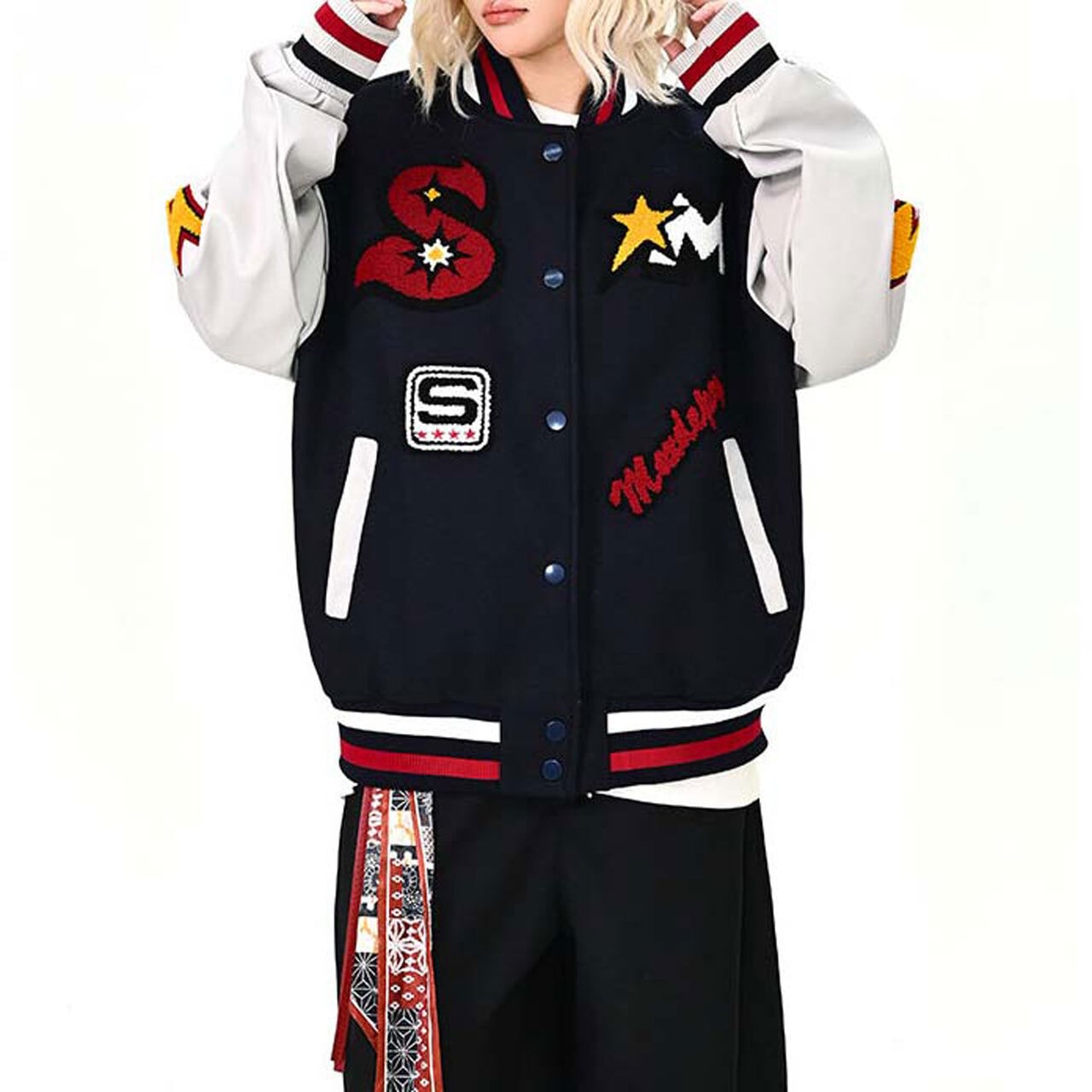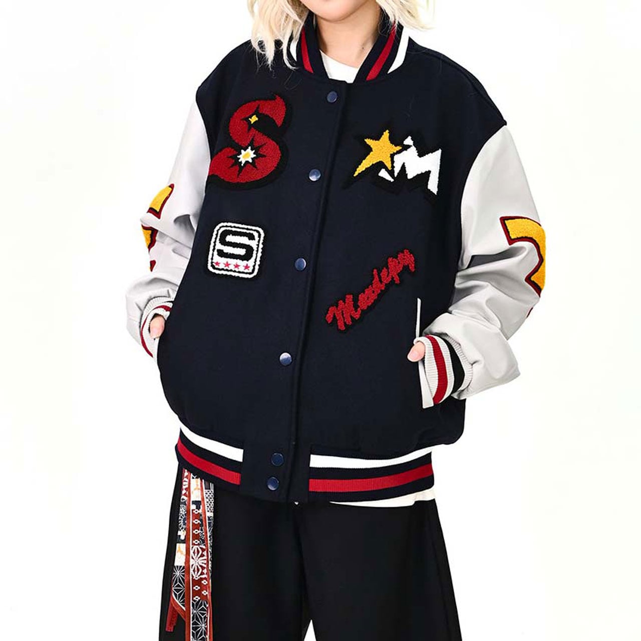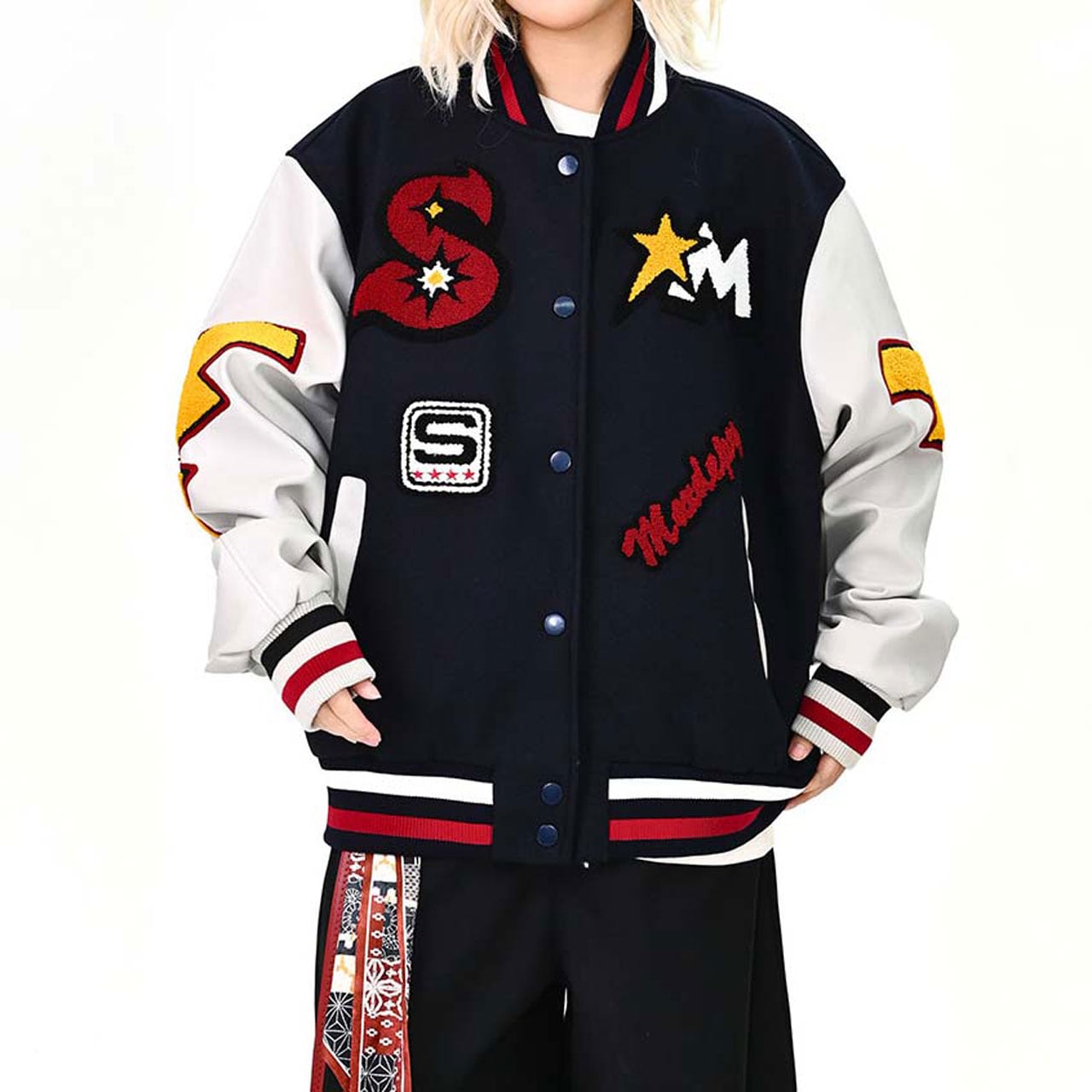 スターエンブレムパッチミックススタジアムブルゾン R01475