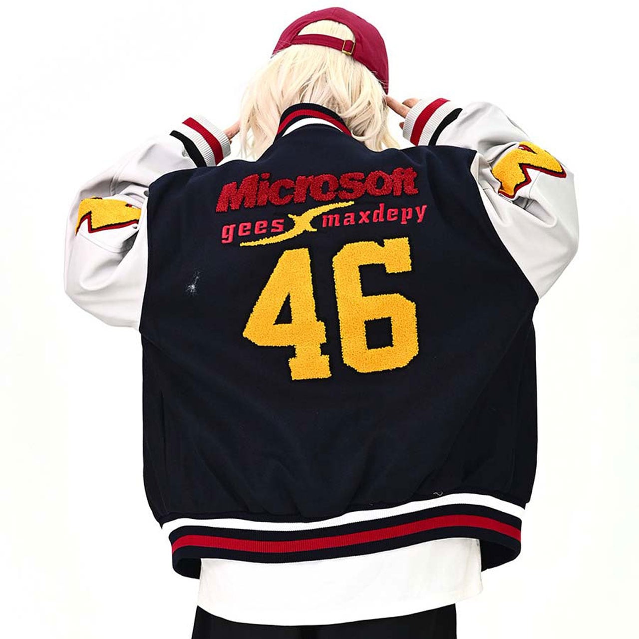 レトロな雰囲気漂う、パッチ付きスタジアムジャケット。