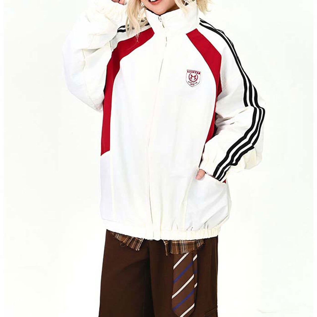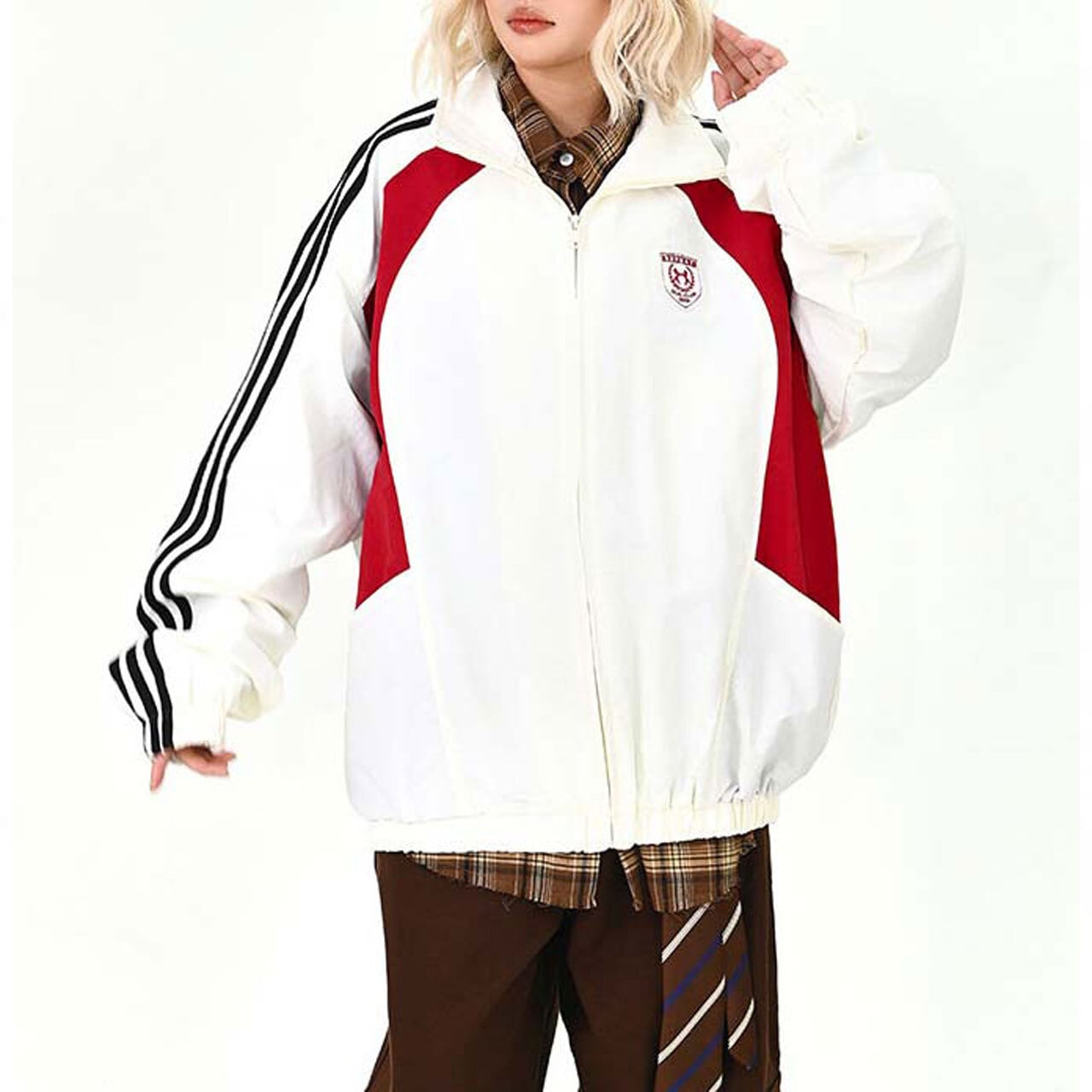 袖のラインがスポーティなアクセントになった、ジップアップジャケット。