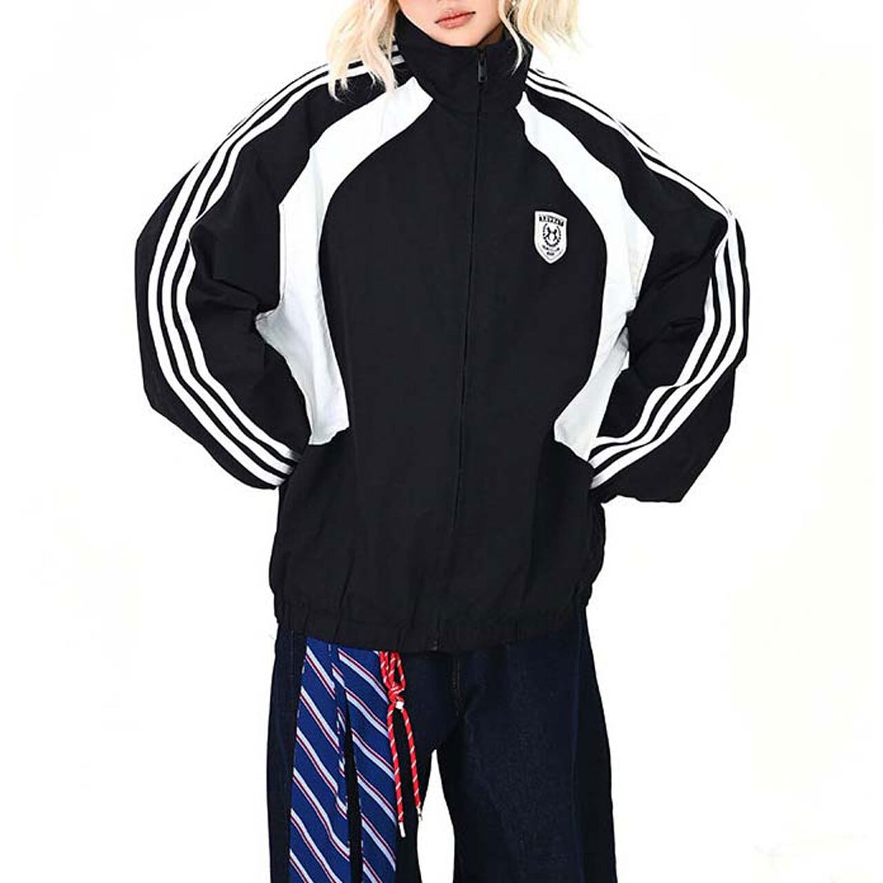 ラインブロックスポーティジップブルゾン 2col R01487