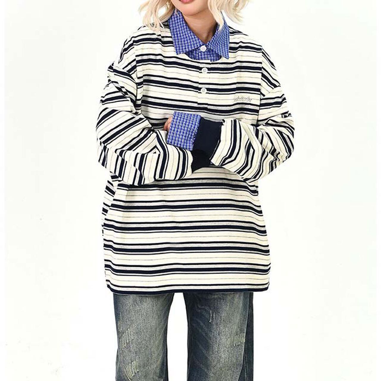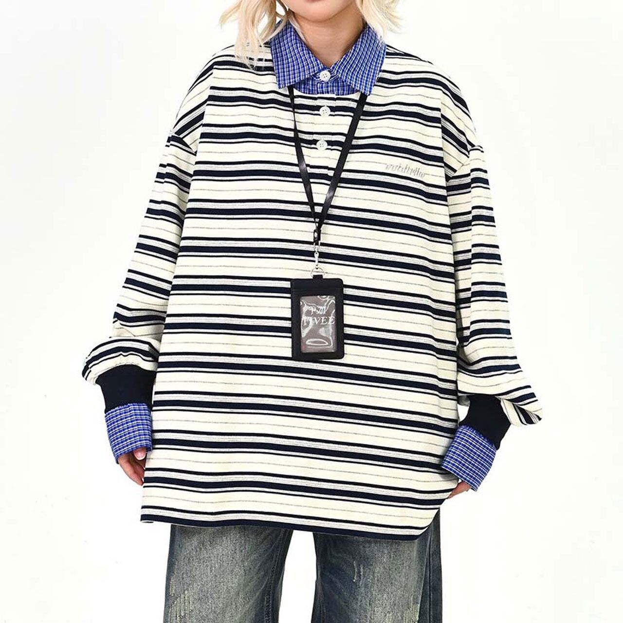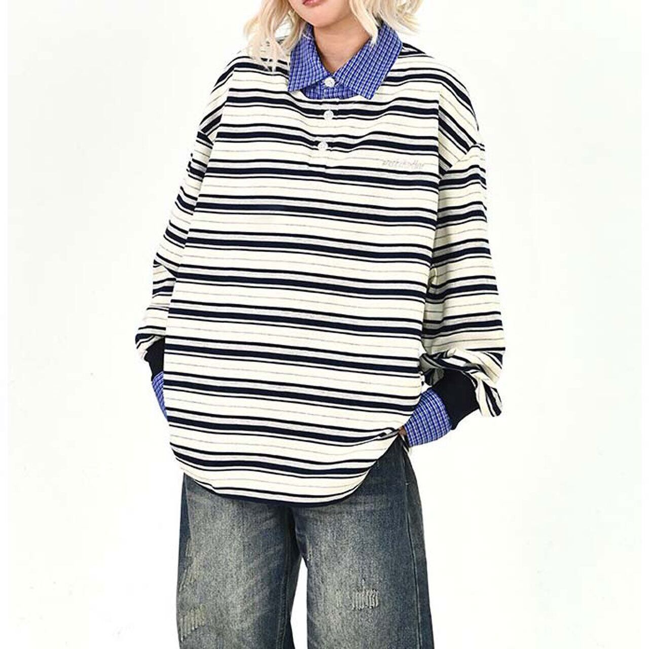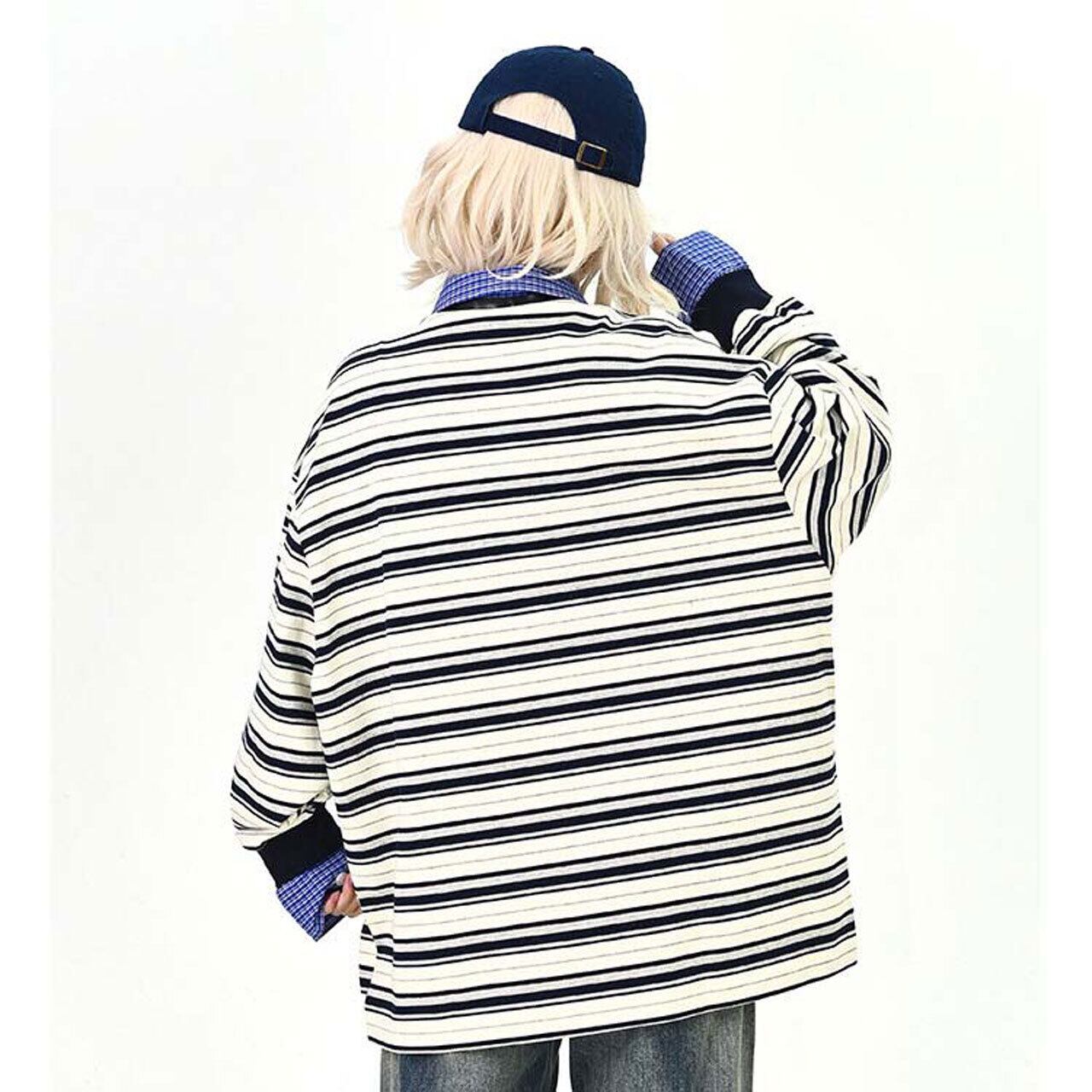 ボーダーレイヤードストリートトップス 2col R01495
