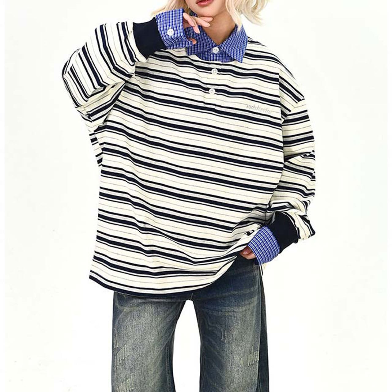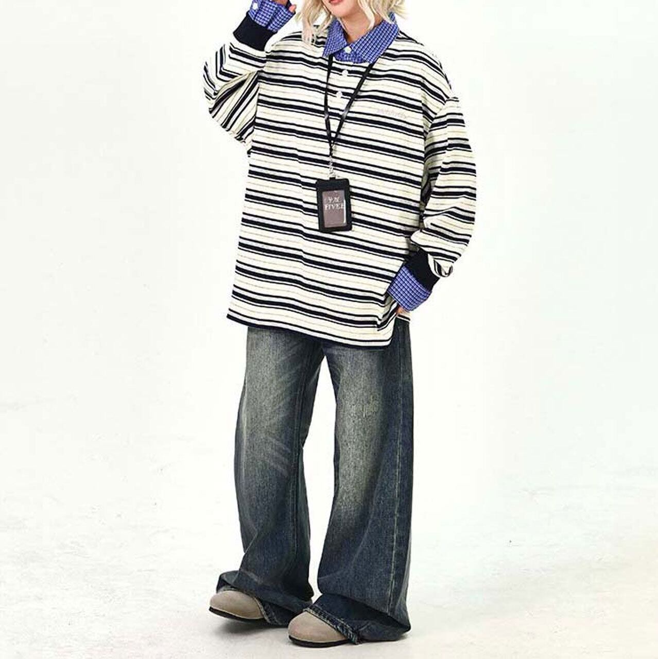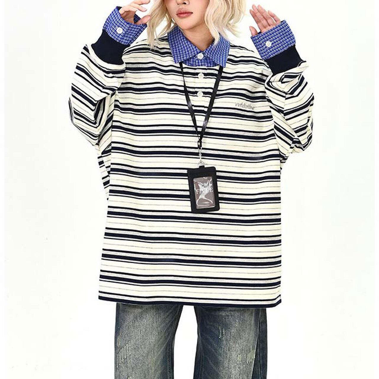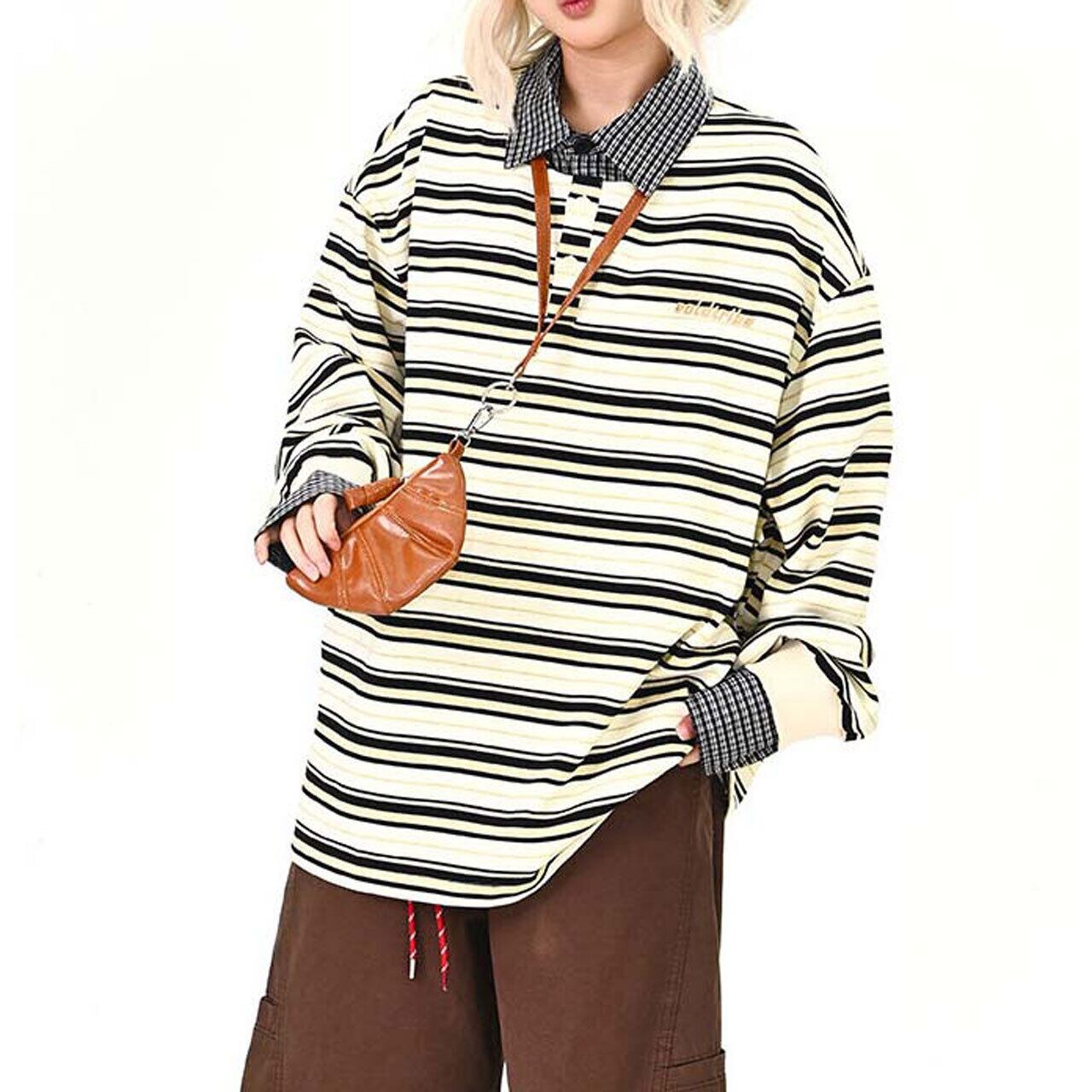 ボーダーレイヤードストリートトップス 2col R01495