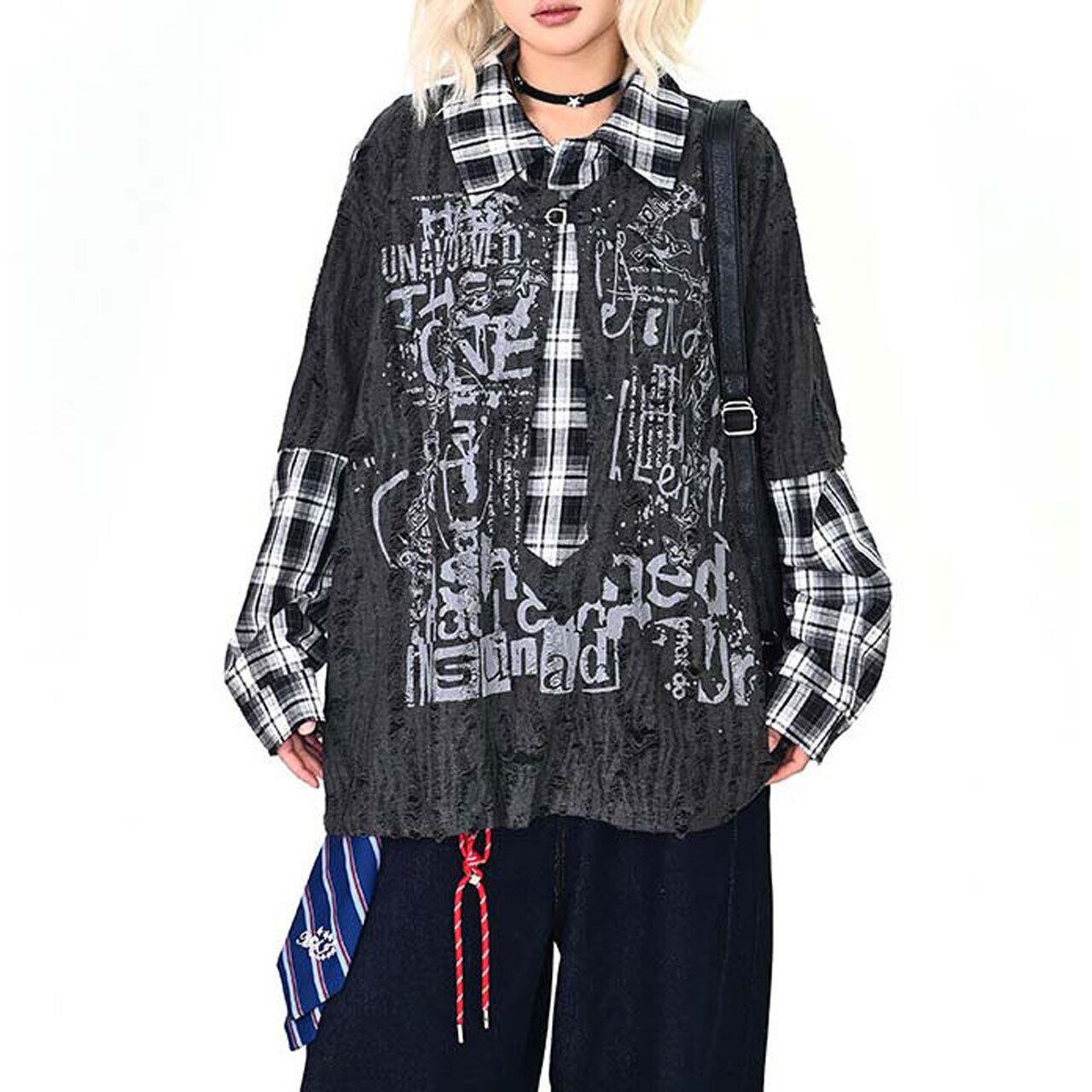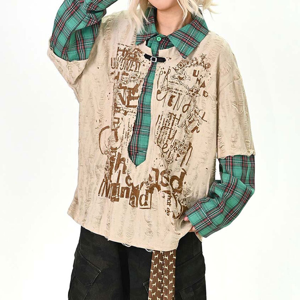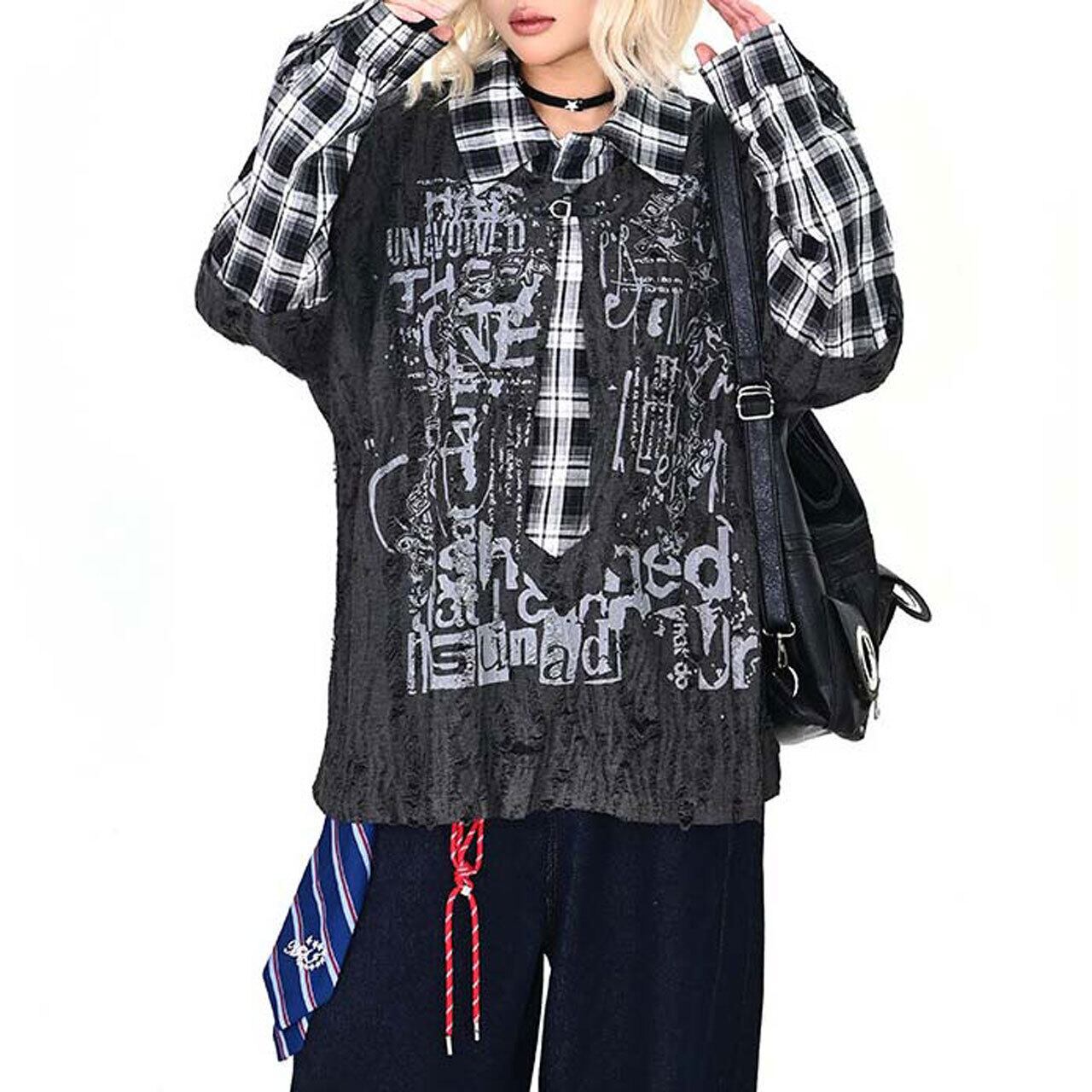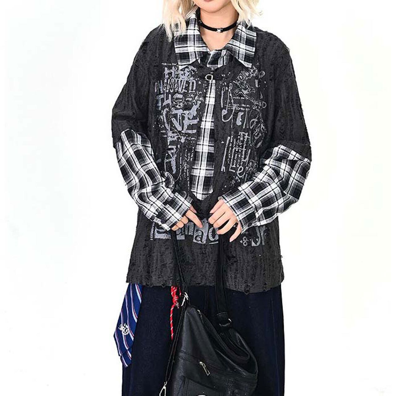 ダメージグラフィックチェックレイヤードトップス 2col R01497