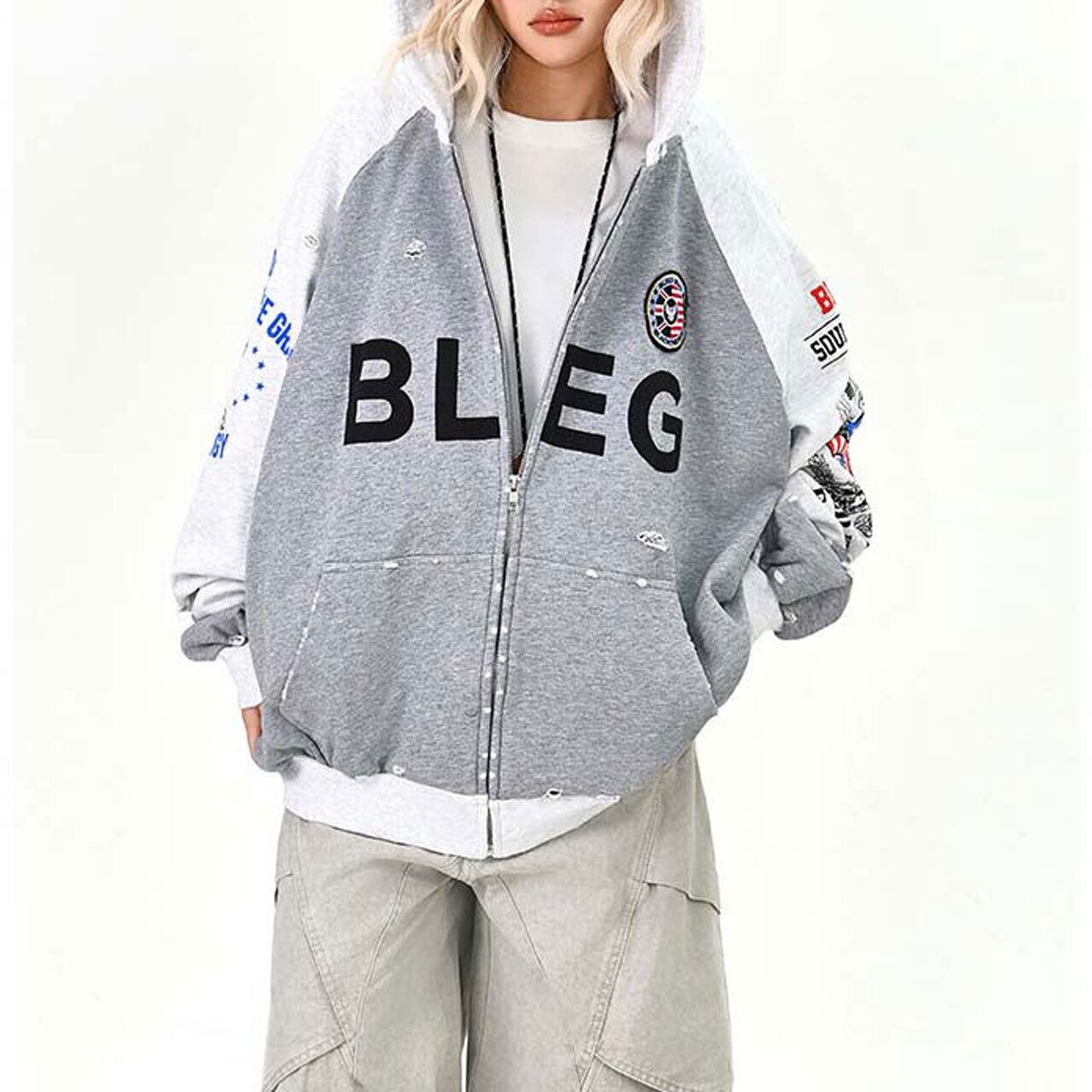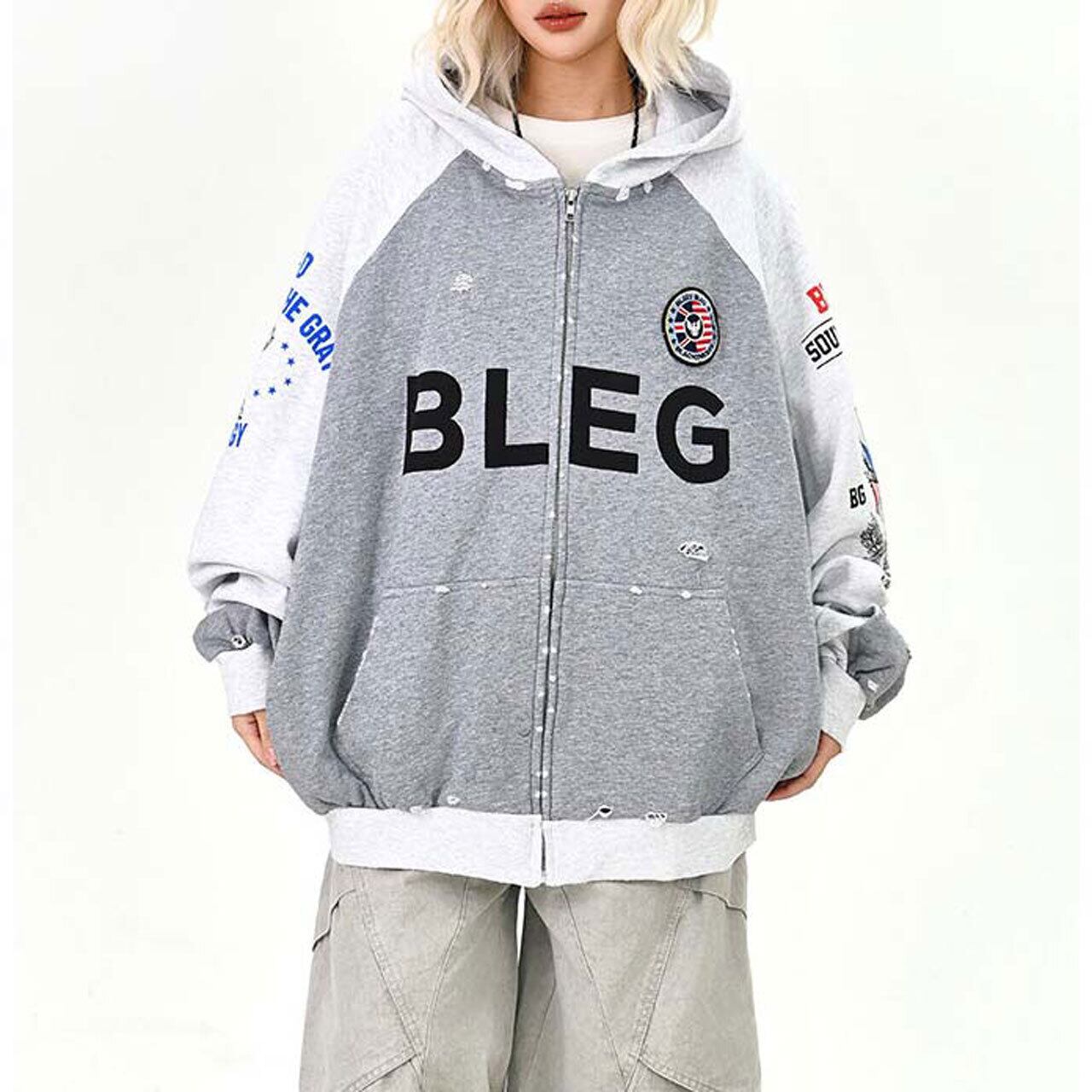 ラグランワッペンロゴジップフーディトップス R01507