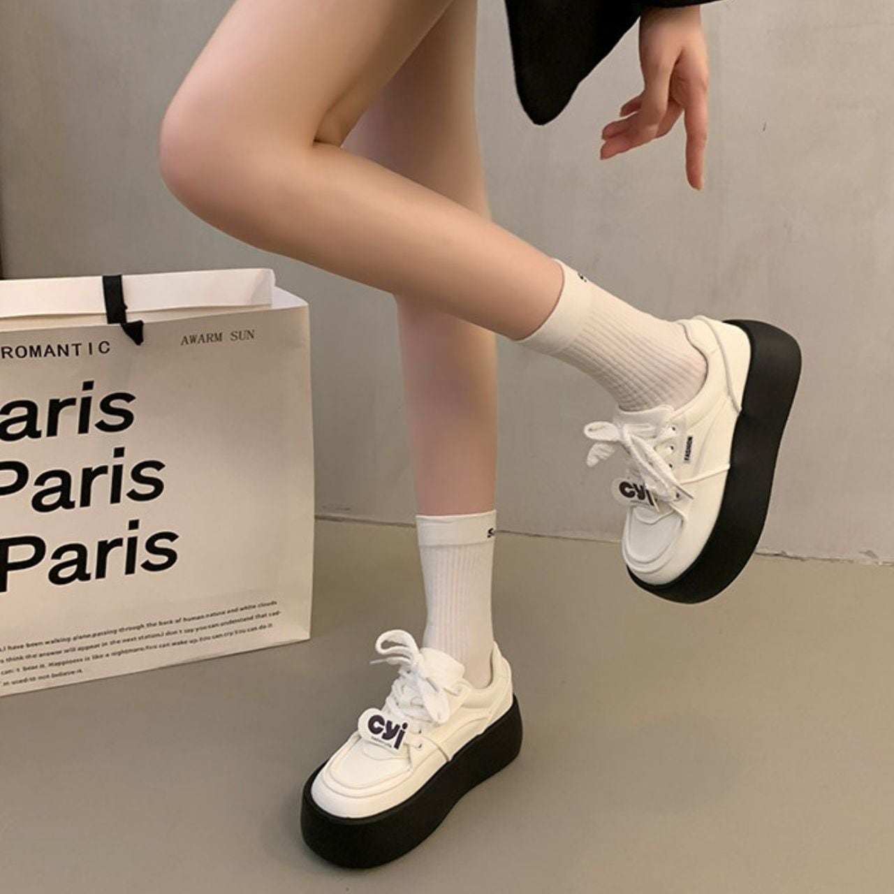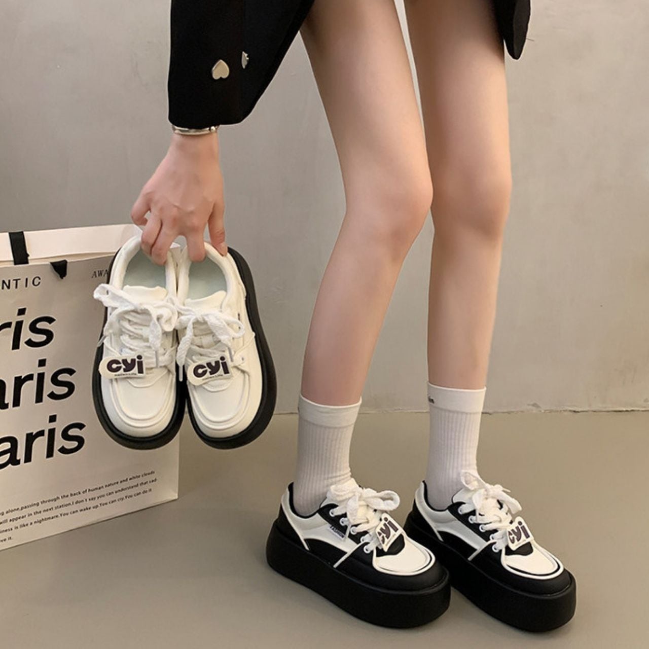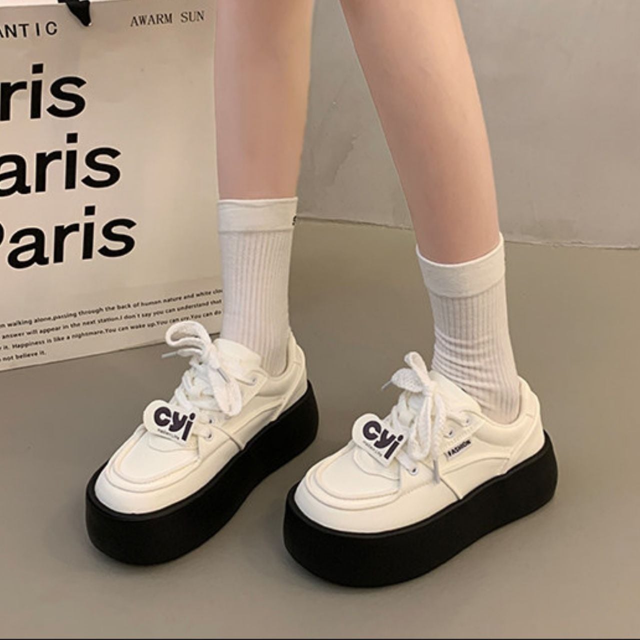 存在感のある厚底フォルムが、足元からスタイルを引き締める一足。
