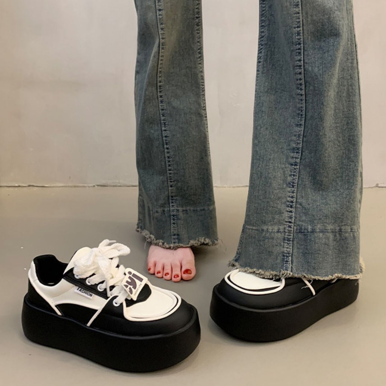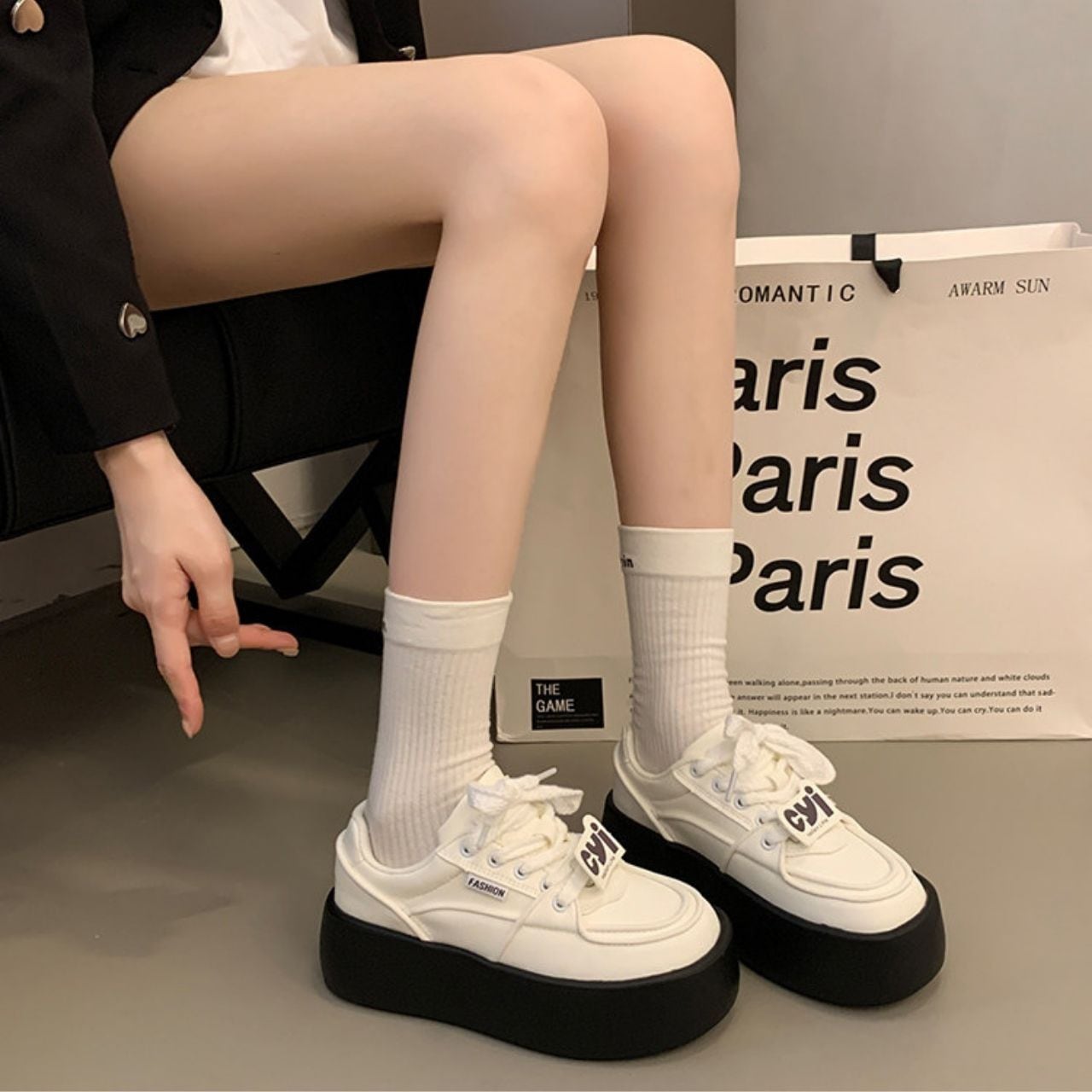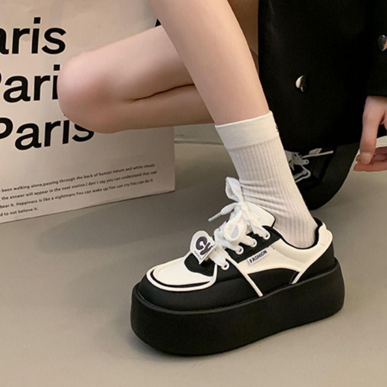 存在感のある厚底フォルムが、足元からスタイルを引き締める一足。