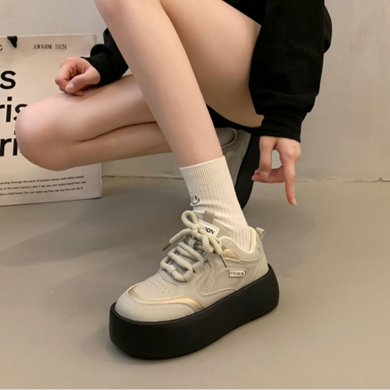 ミニマルラインプラットフォームスニーカー 3col R01554