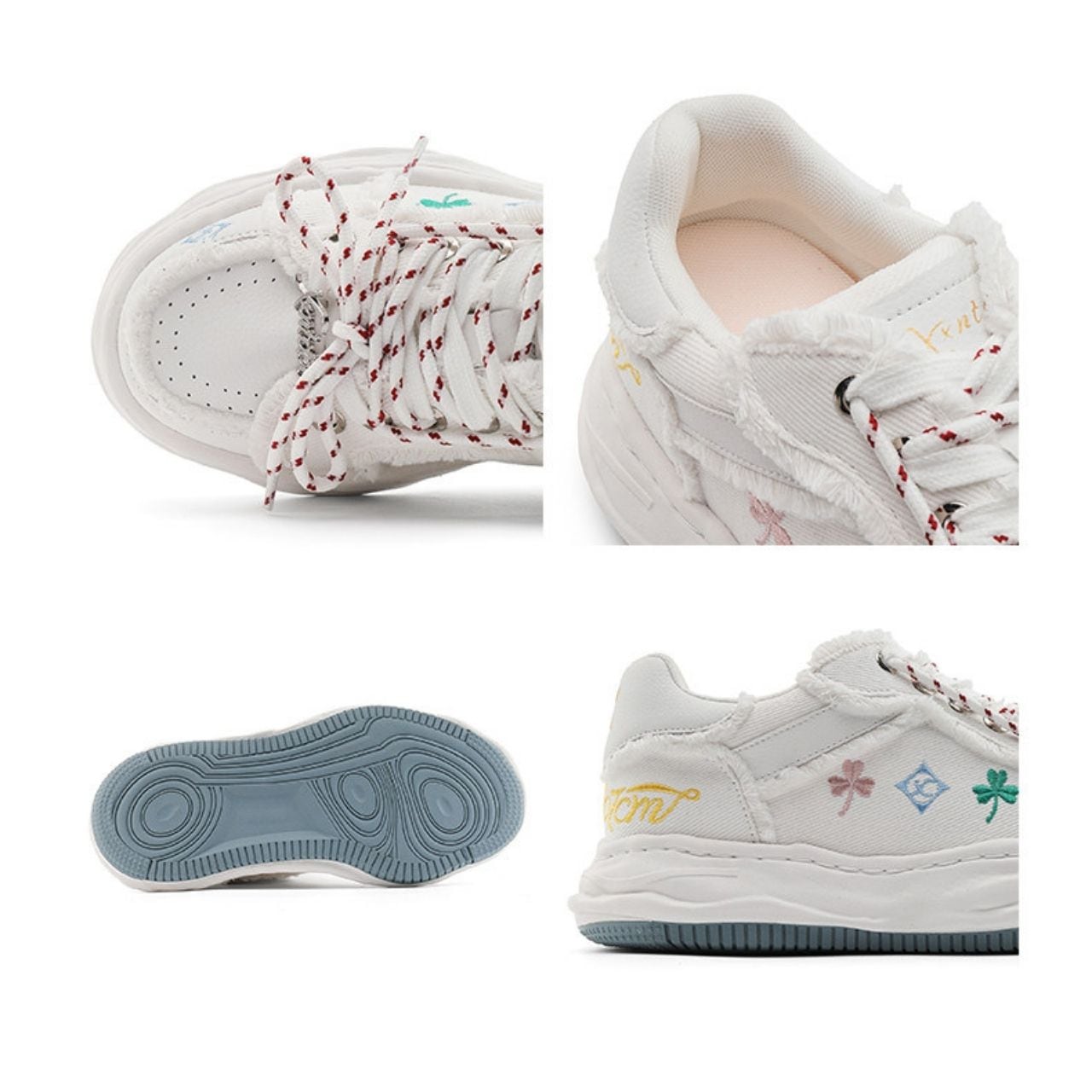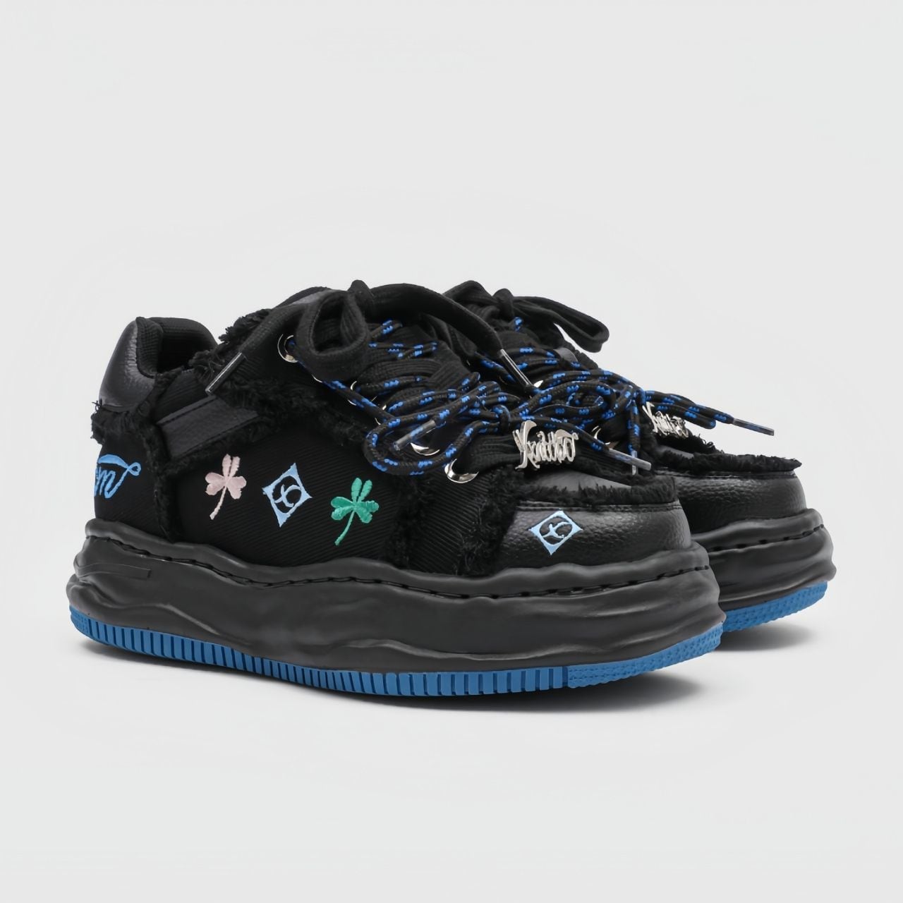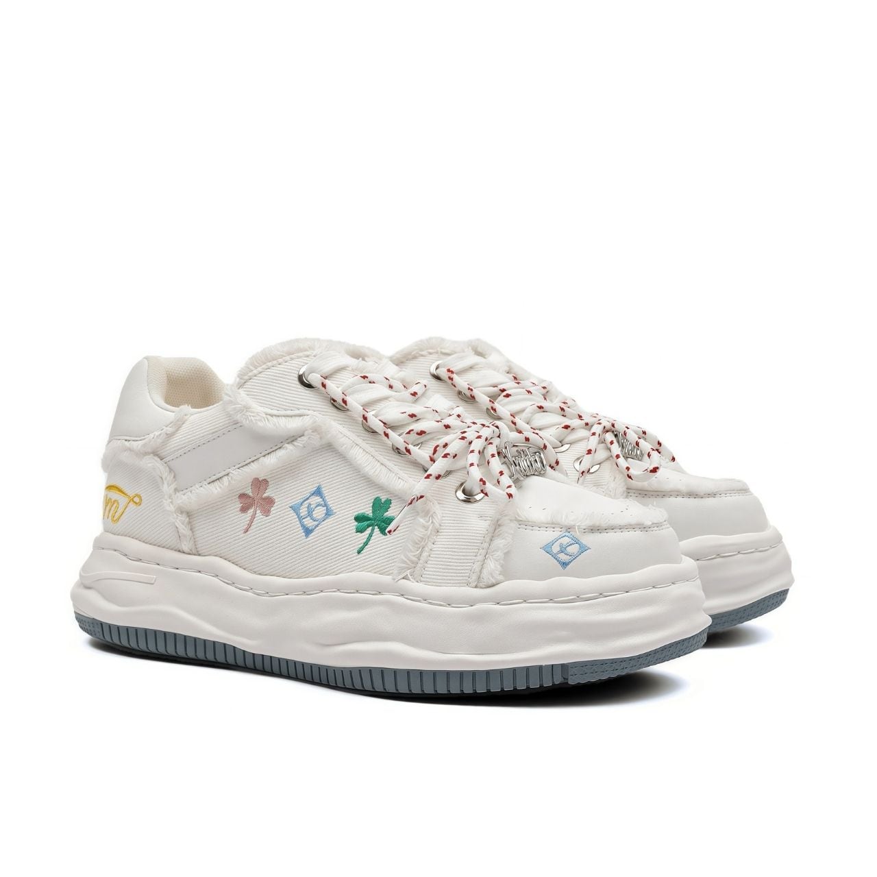 ポップなモチーフ刺繍が散りばめられた、遊び心たっぷりのデザインスニーカー。