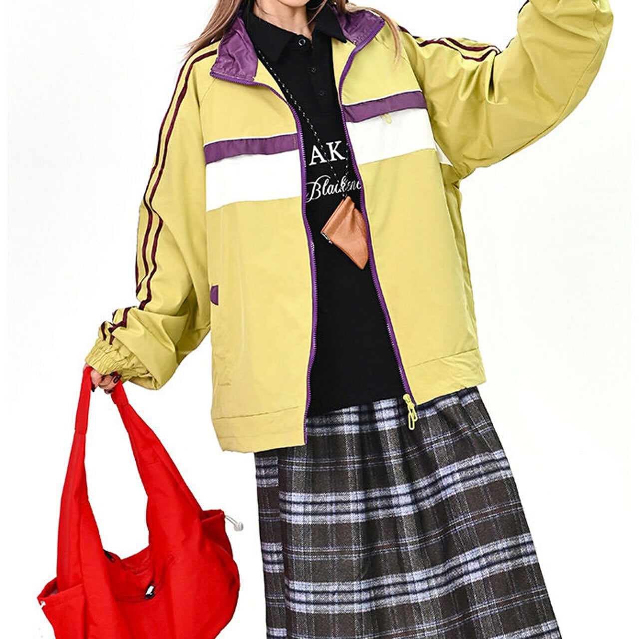 レトロな配色切り替えが目を引く、スポーティーなジップジャケット。