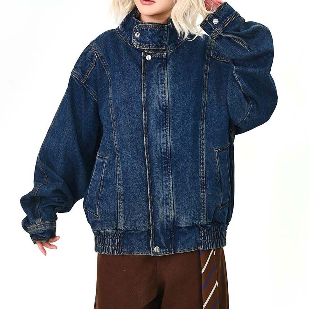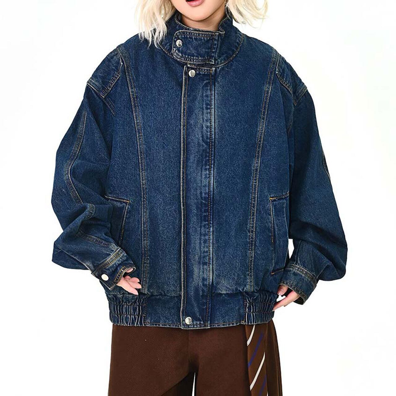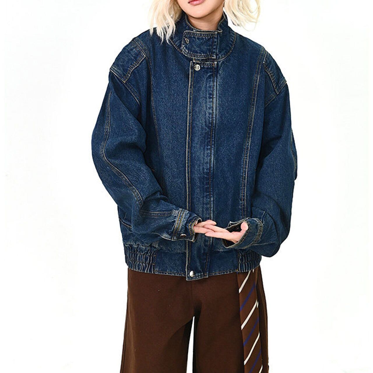 スタンドネックステッチデニムブルゾン 1col R01575
