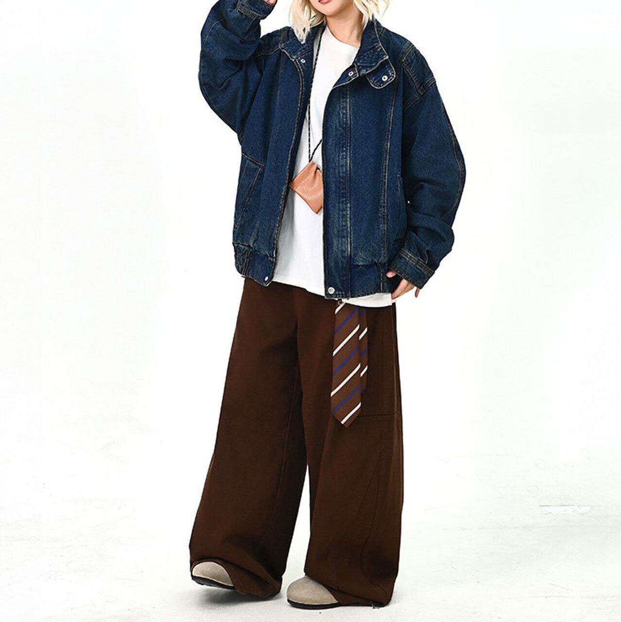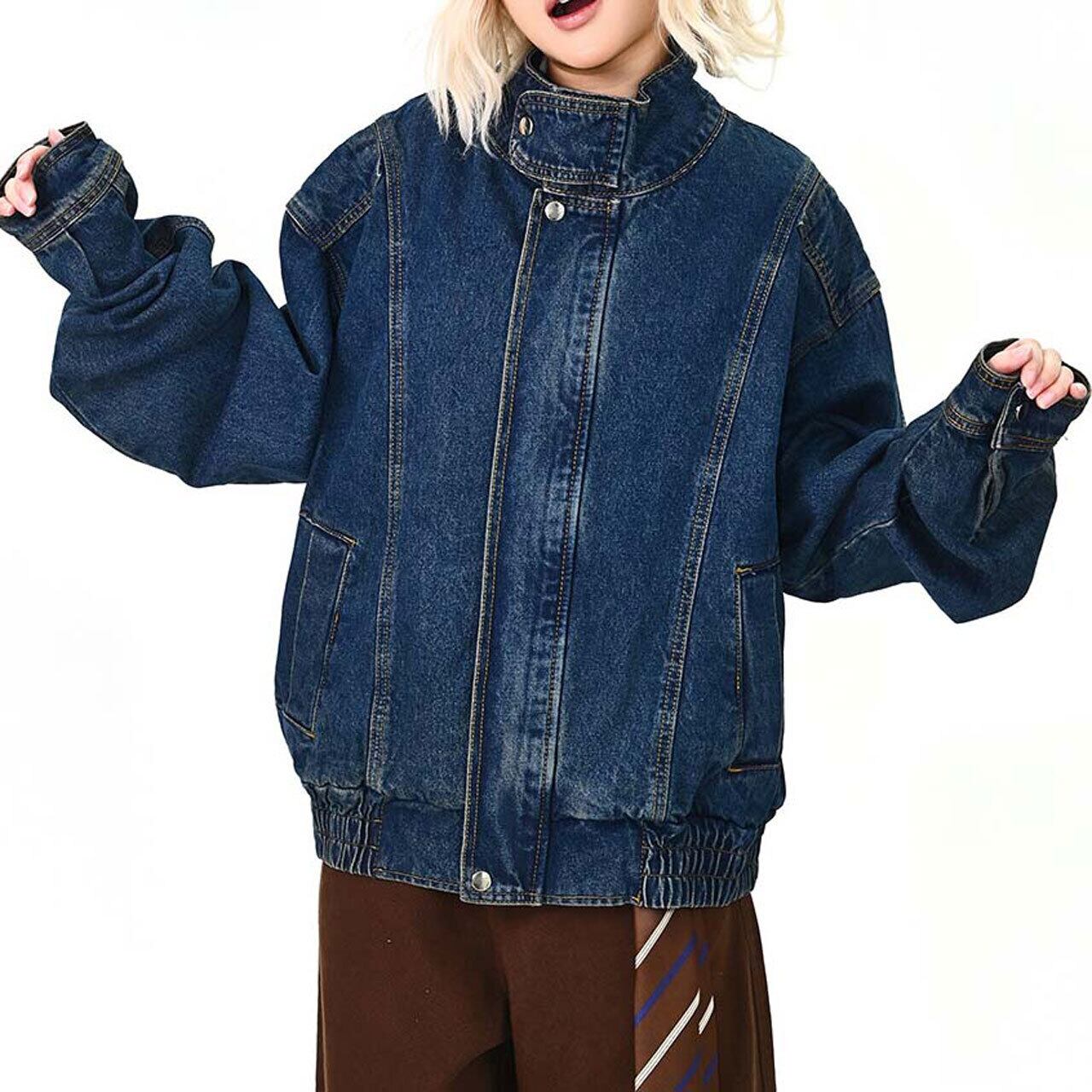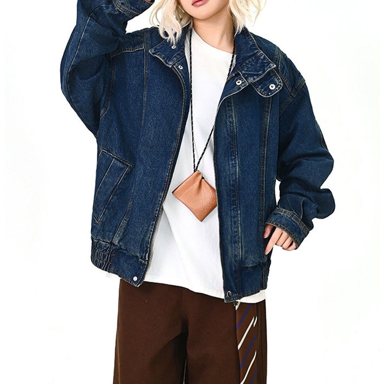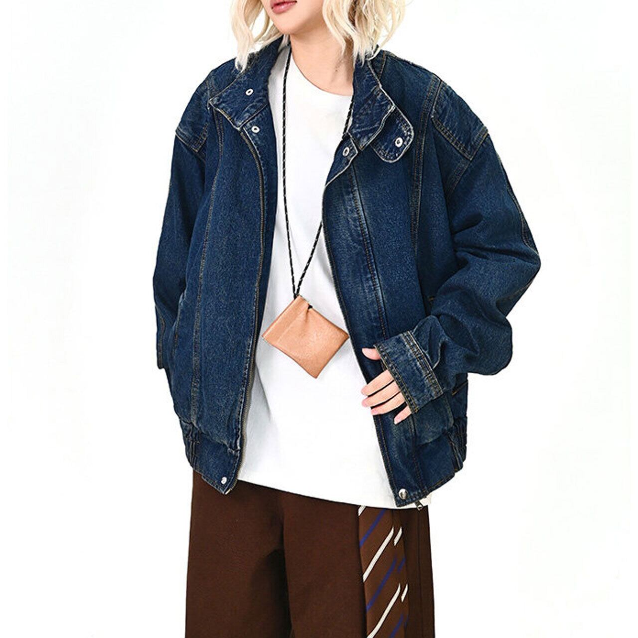 スタンドネックステッチデニムブルゾン 1col R01575