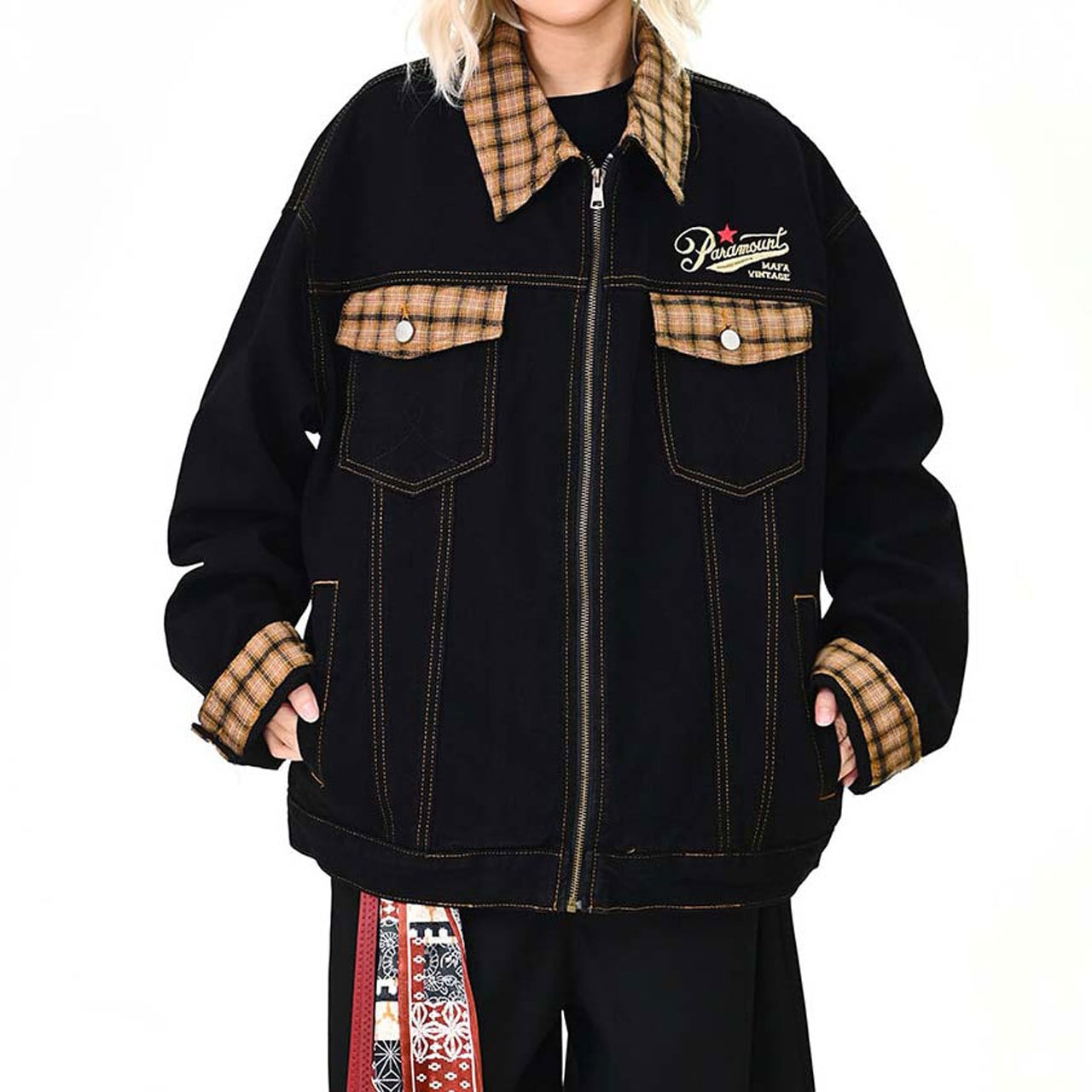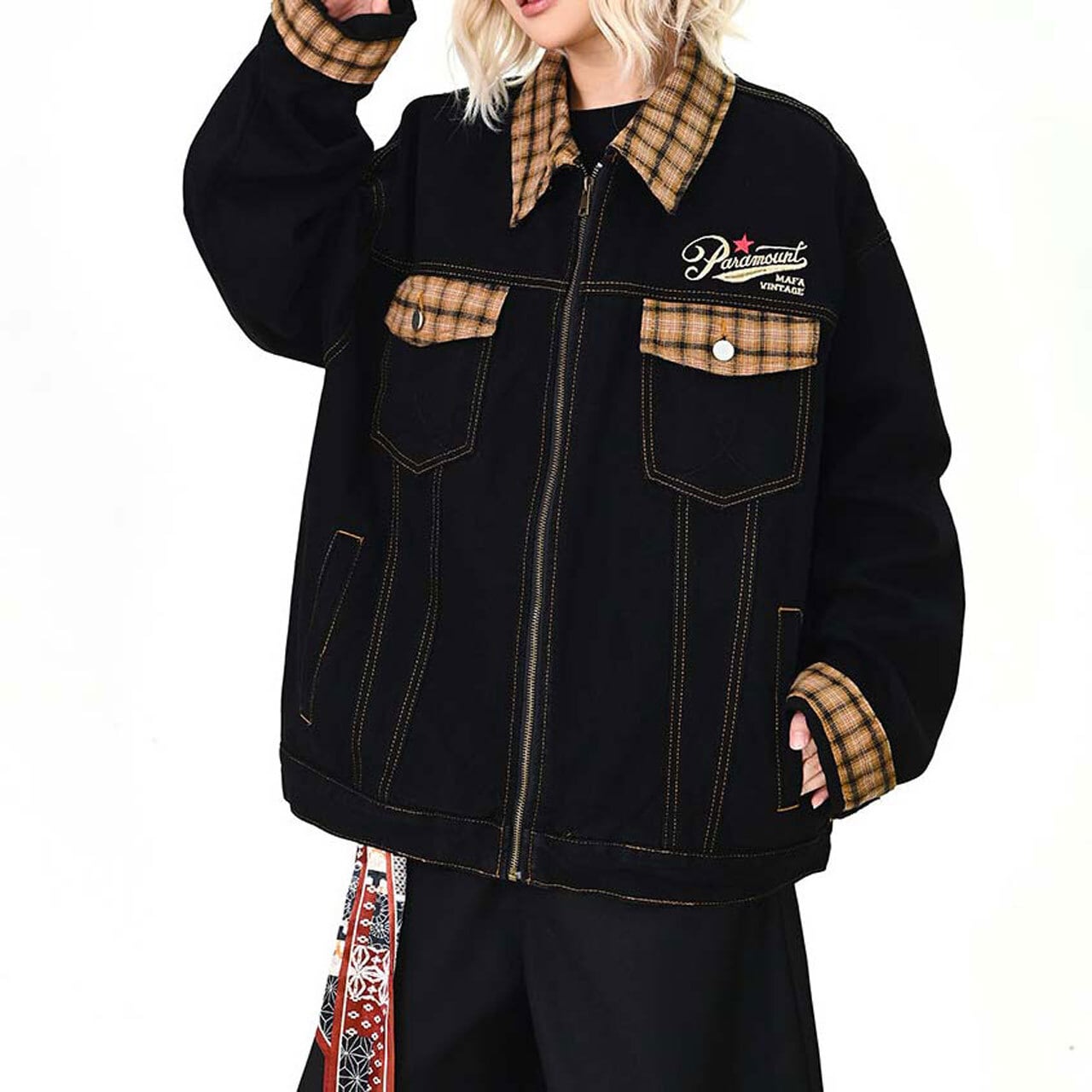 ワークテイストにチェック柄を効かせた、存在感のあるデザインジャケット。