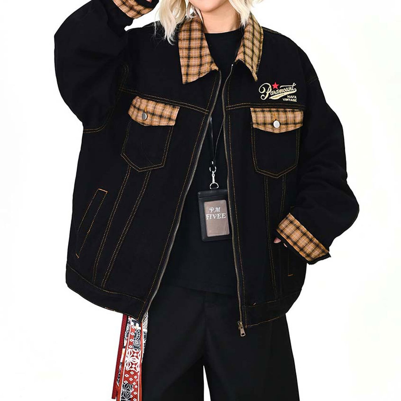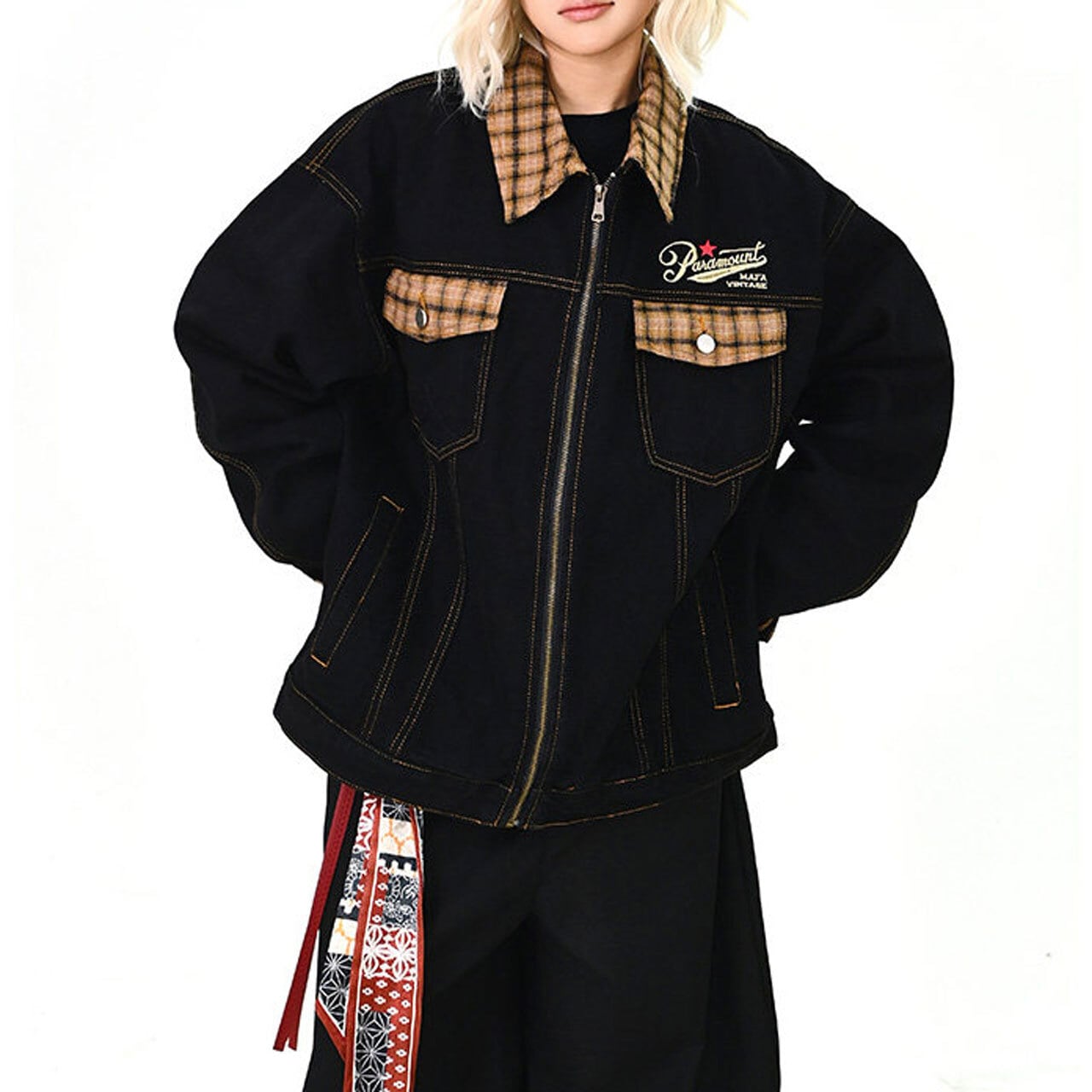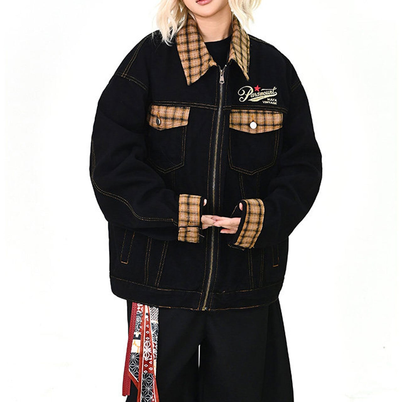 チェックアクセントワークミックスブルゾン 1col R01576