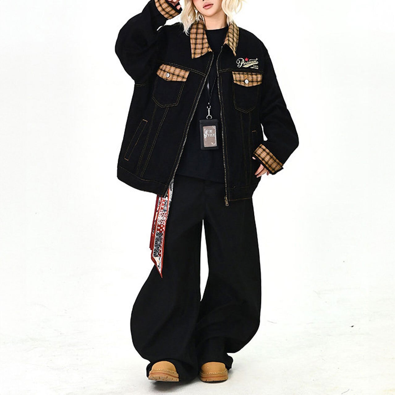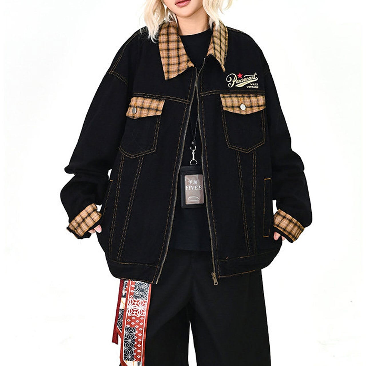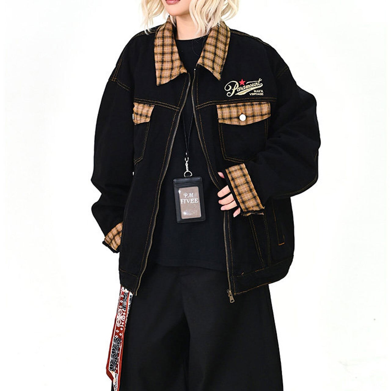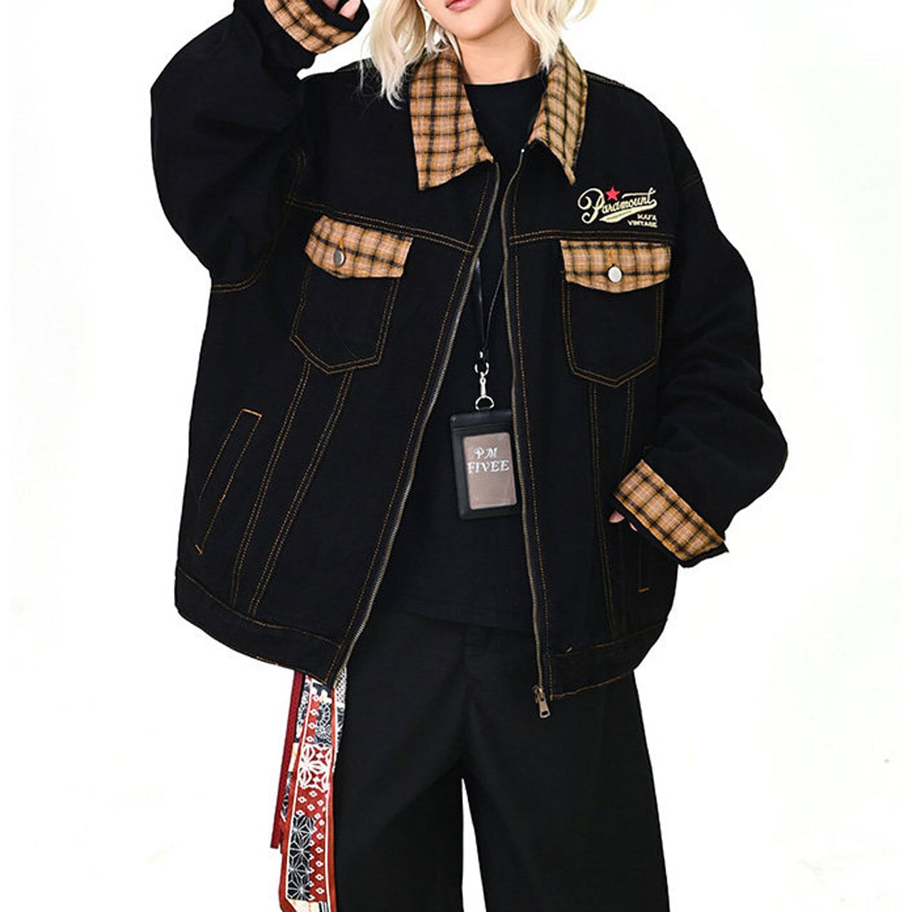チェックアクセントワークミックスブルゾン 1col R01576