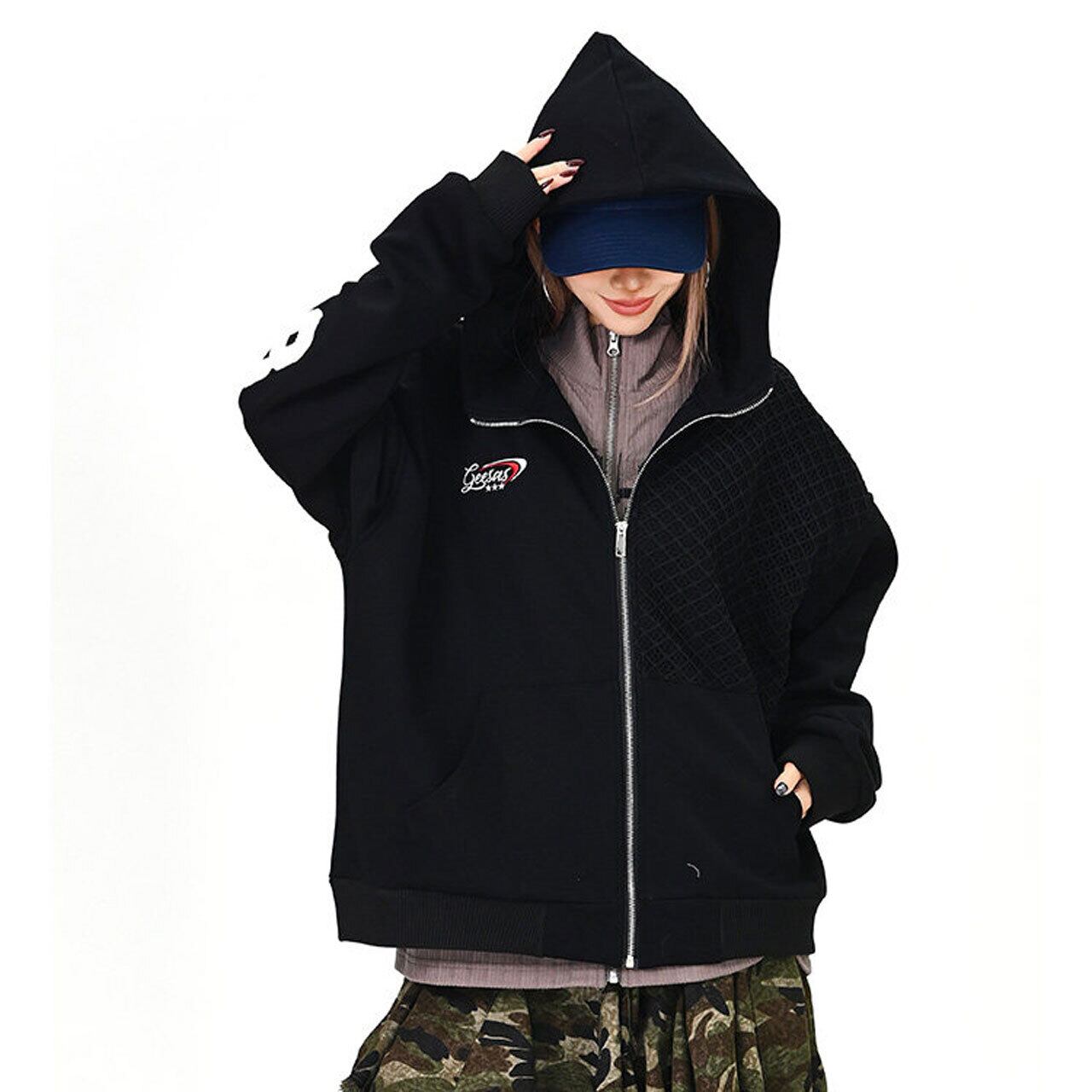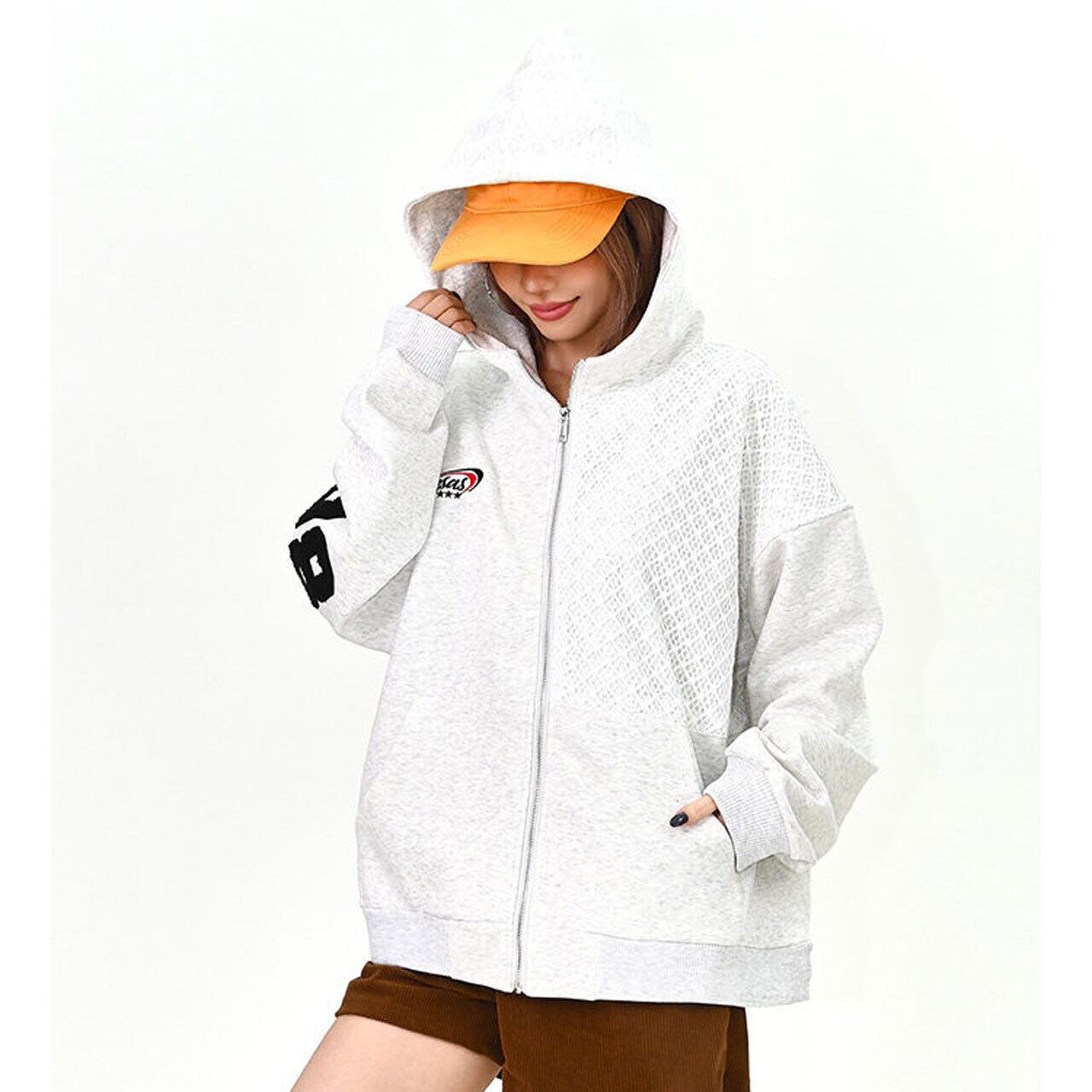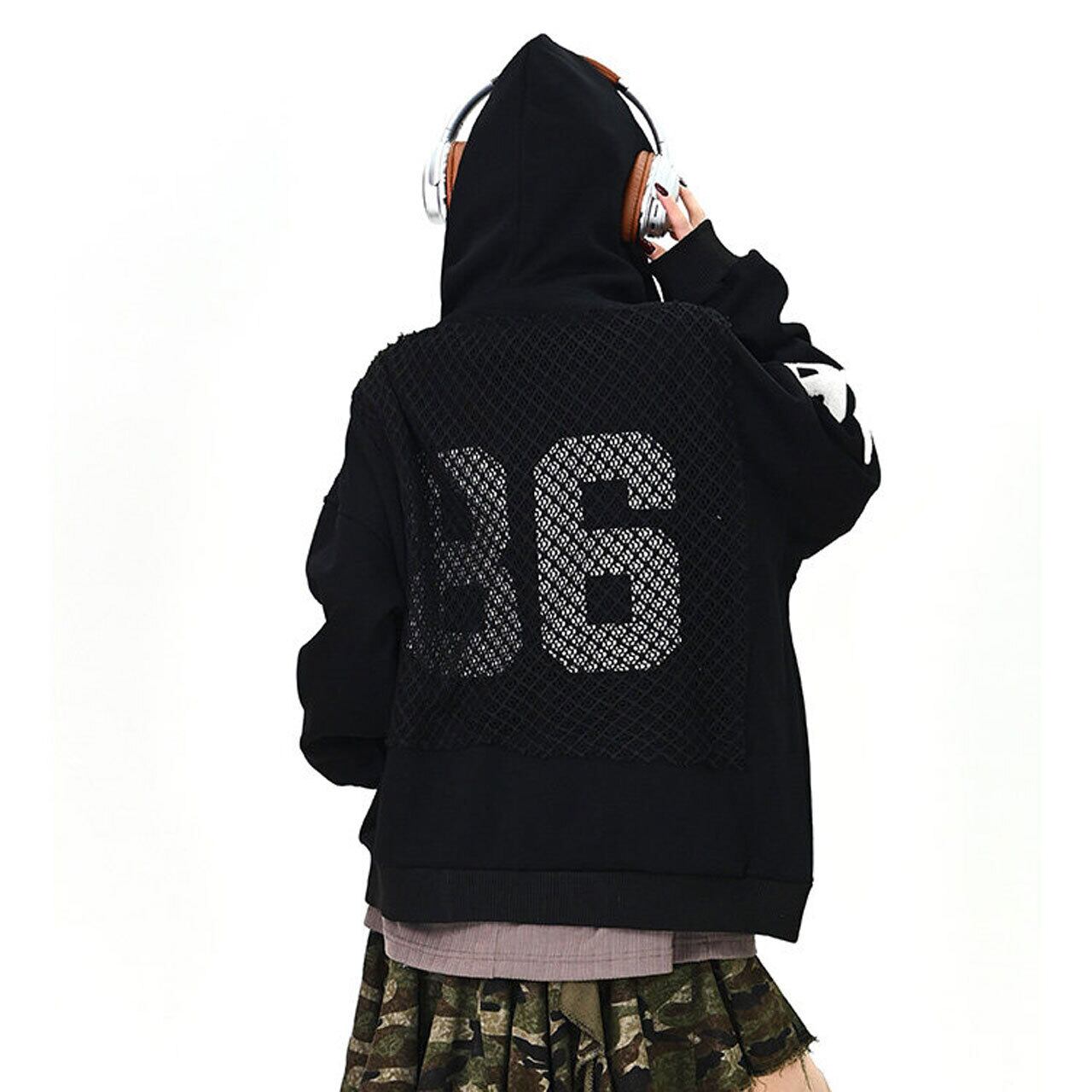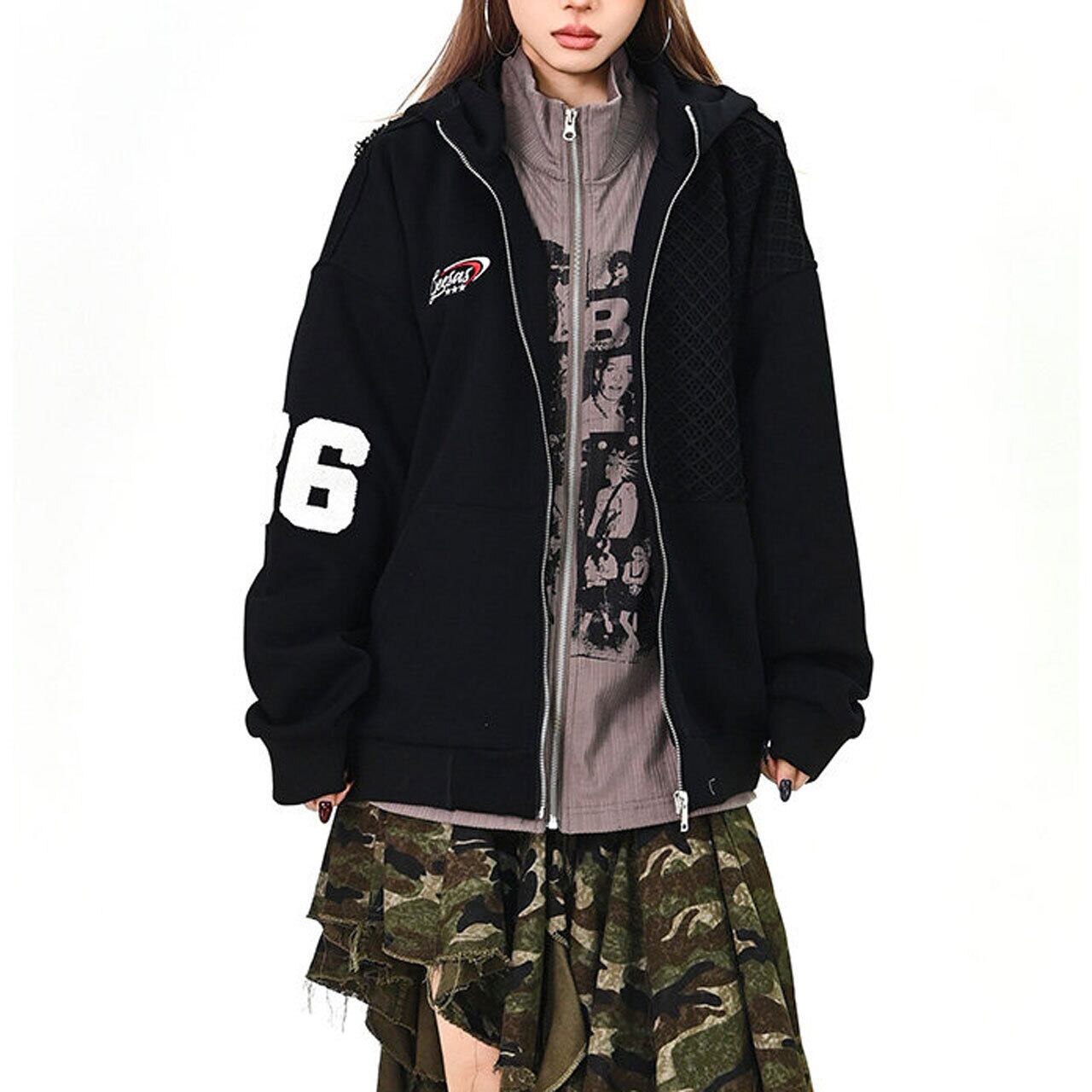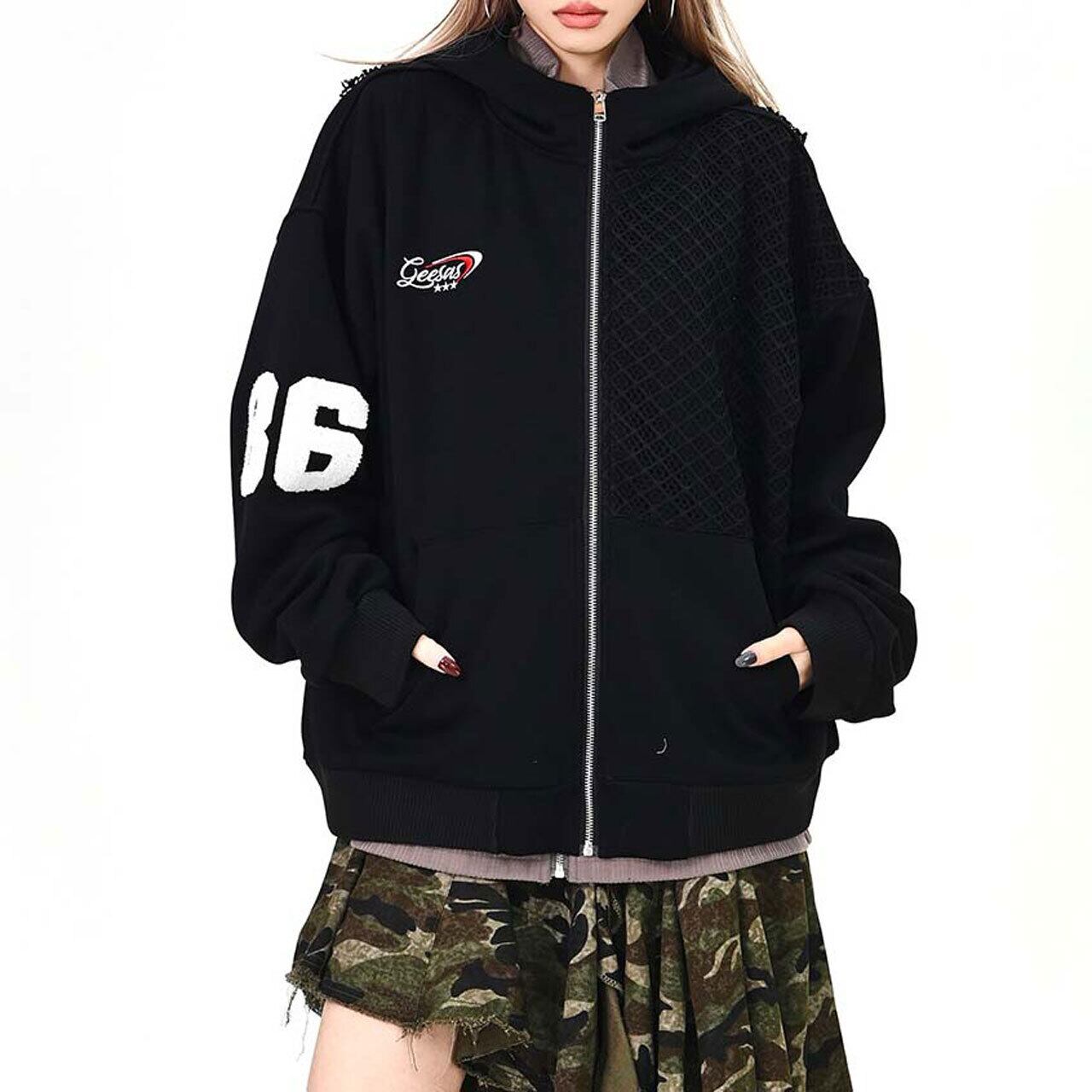 メッシュデザインナンバリングジップフーディ 2col R01577