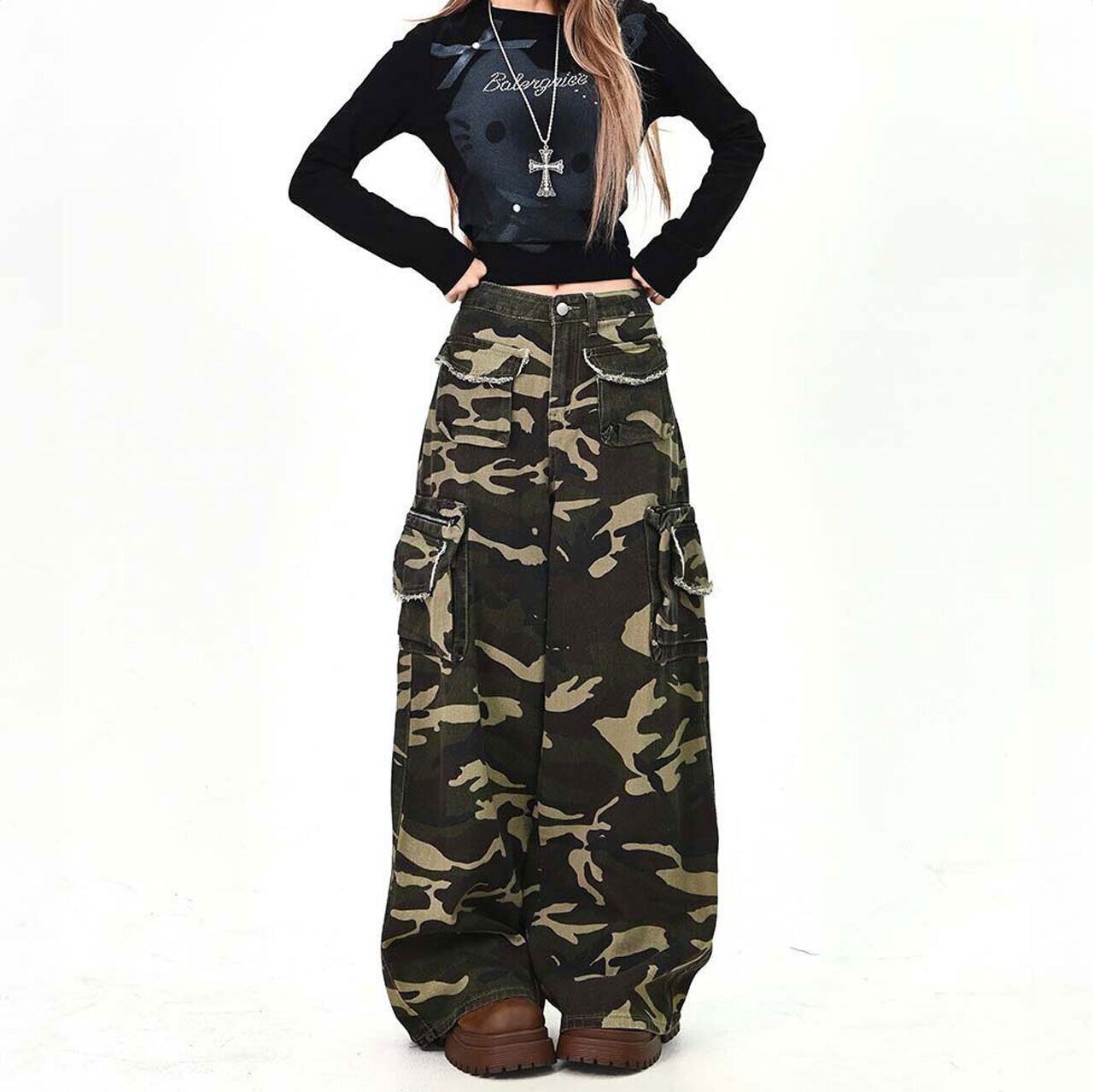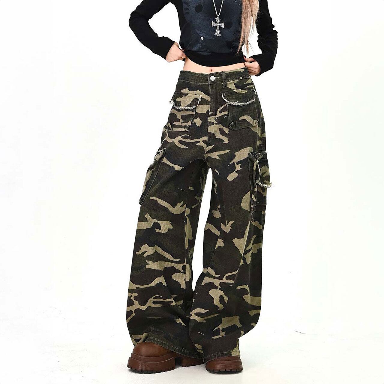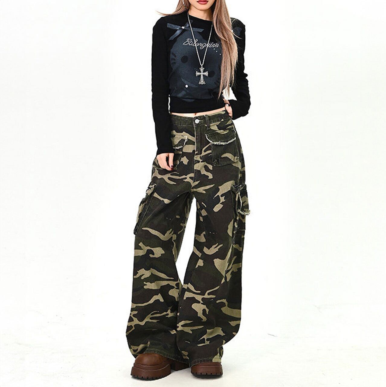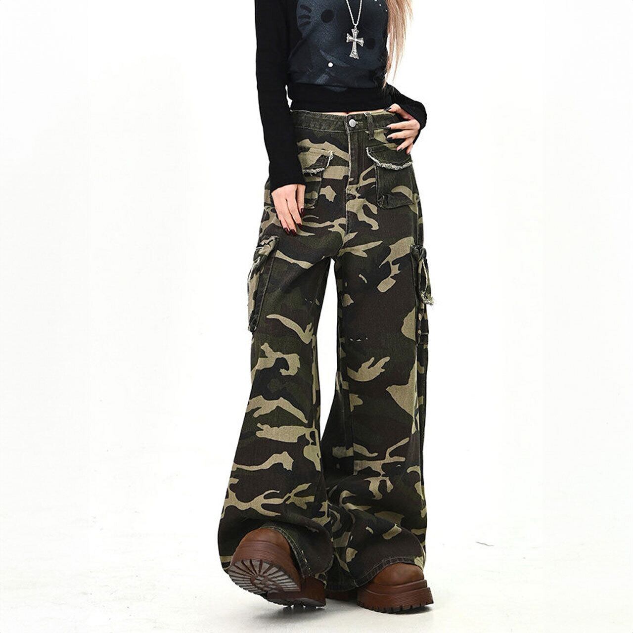 存在感のあるカモフラ柄が主役になるワイドカーゴパンツ。
