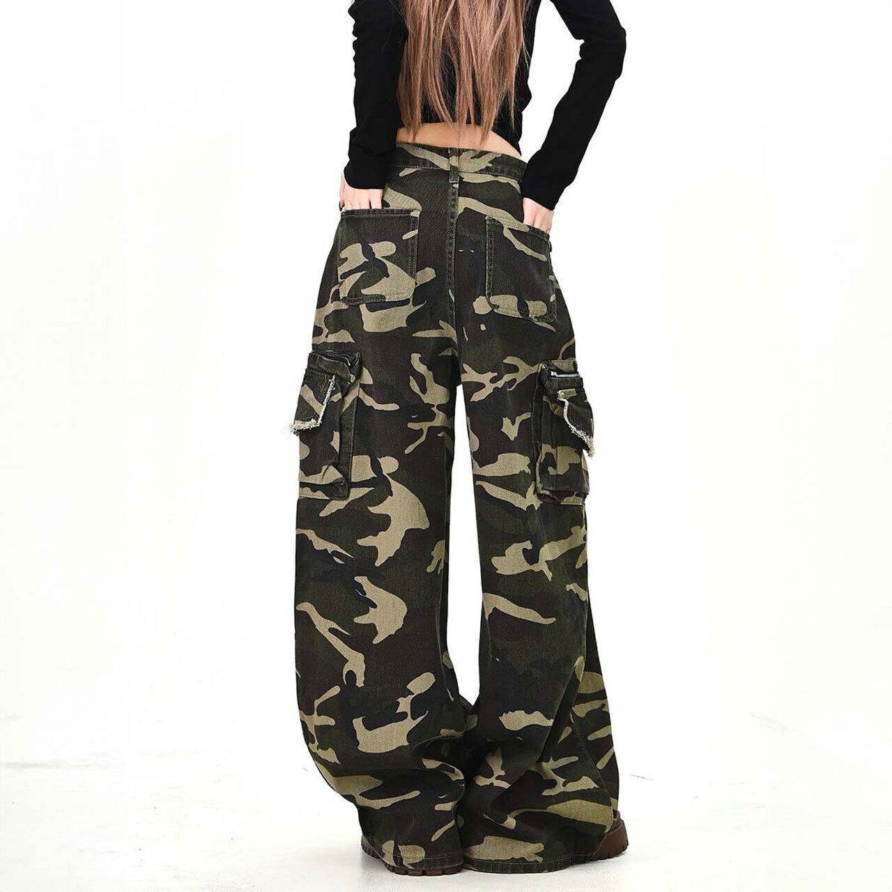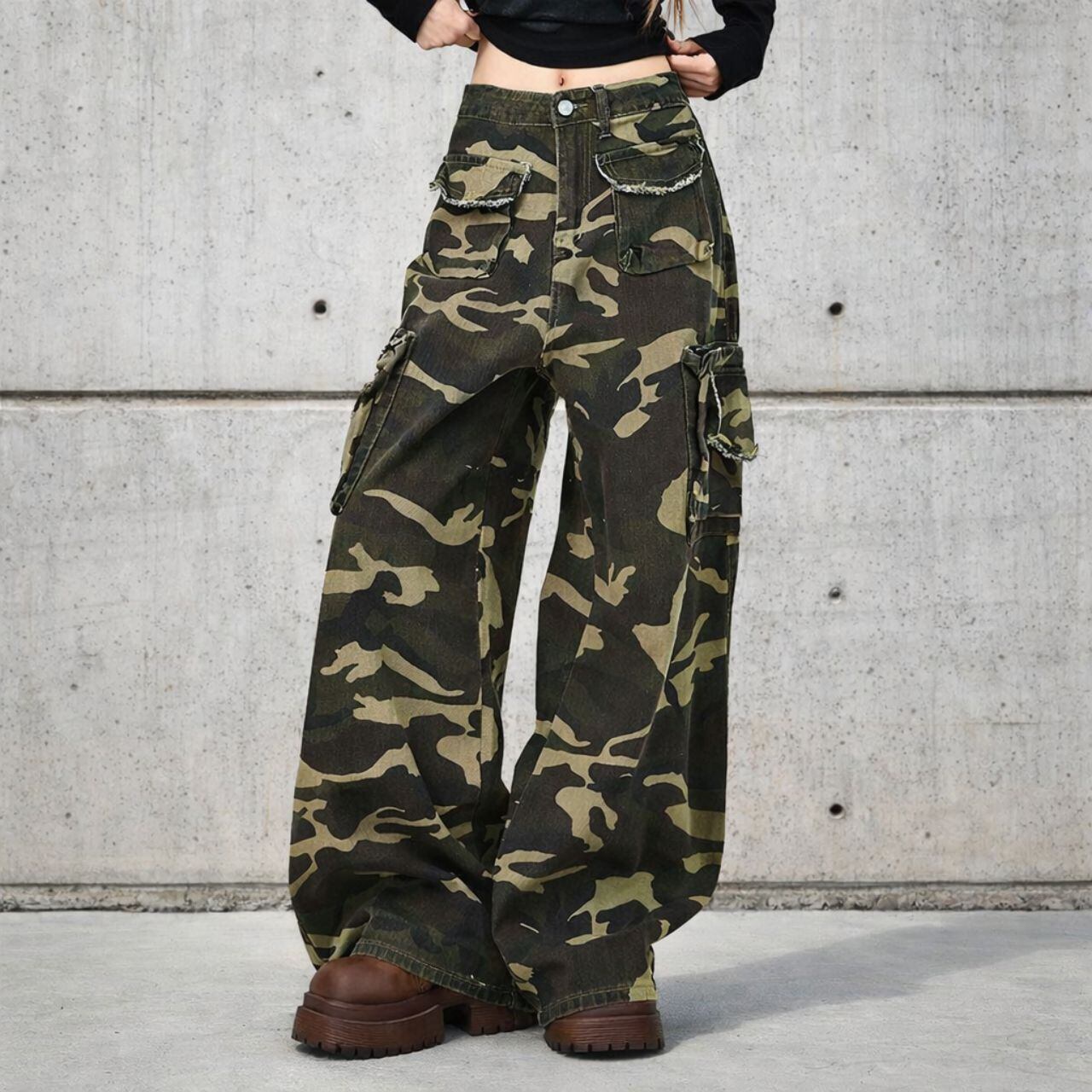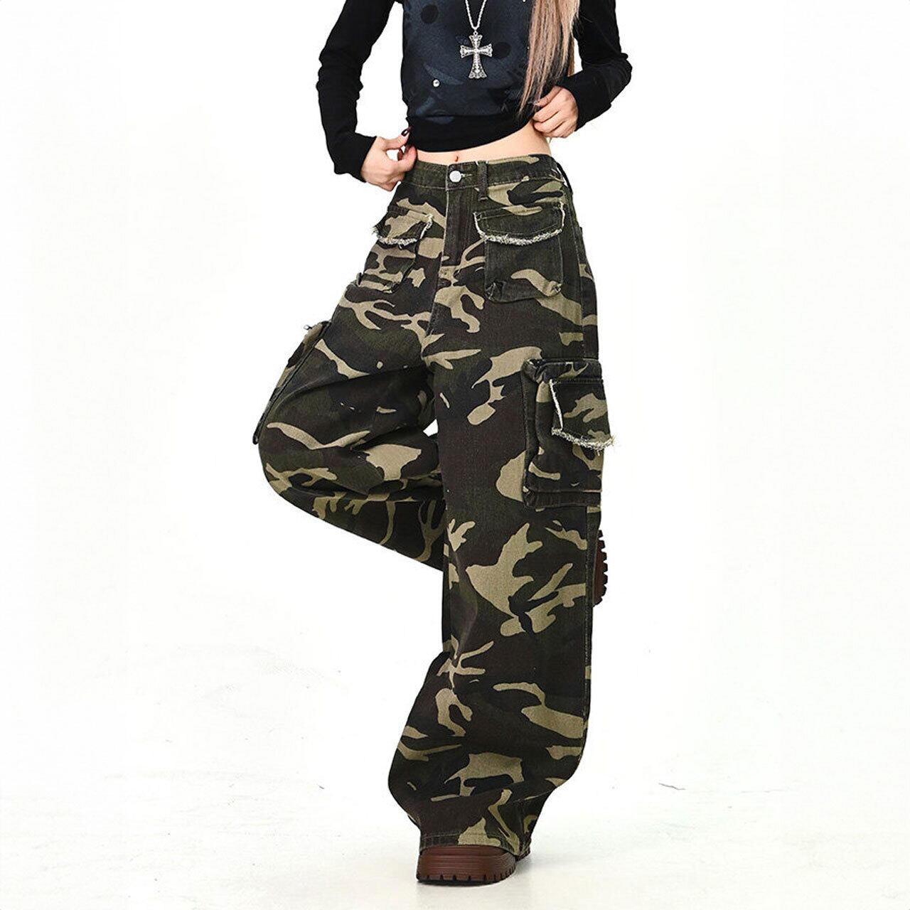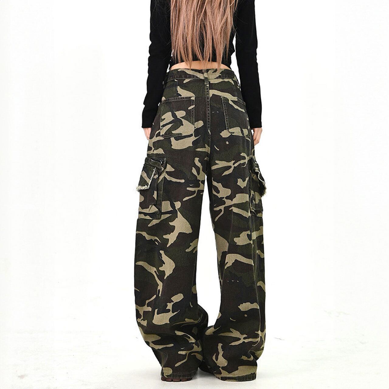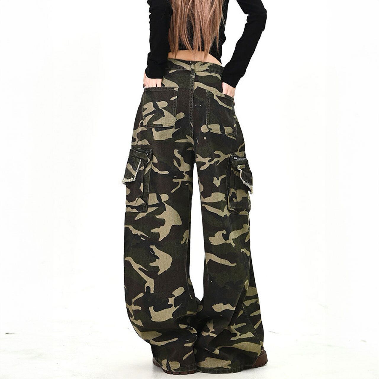 存在感のあるカモフラ柄が主役になるワイドカーゴパンツ。