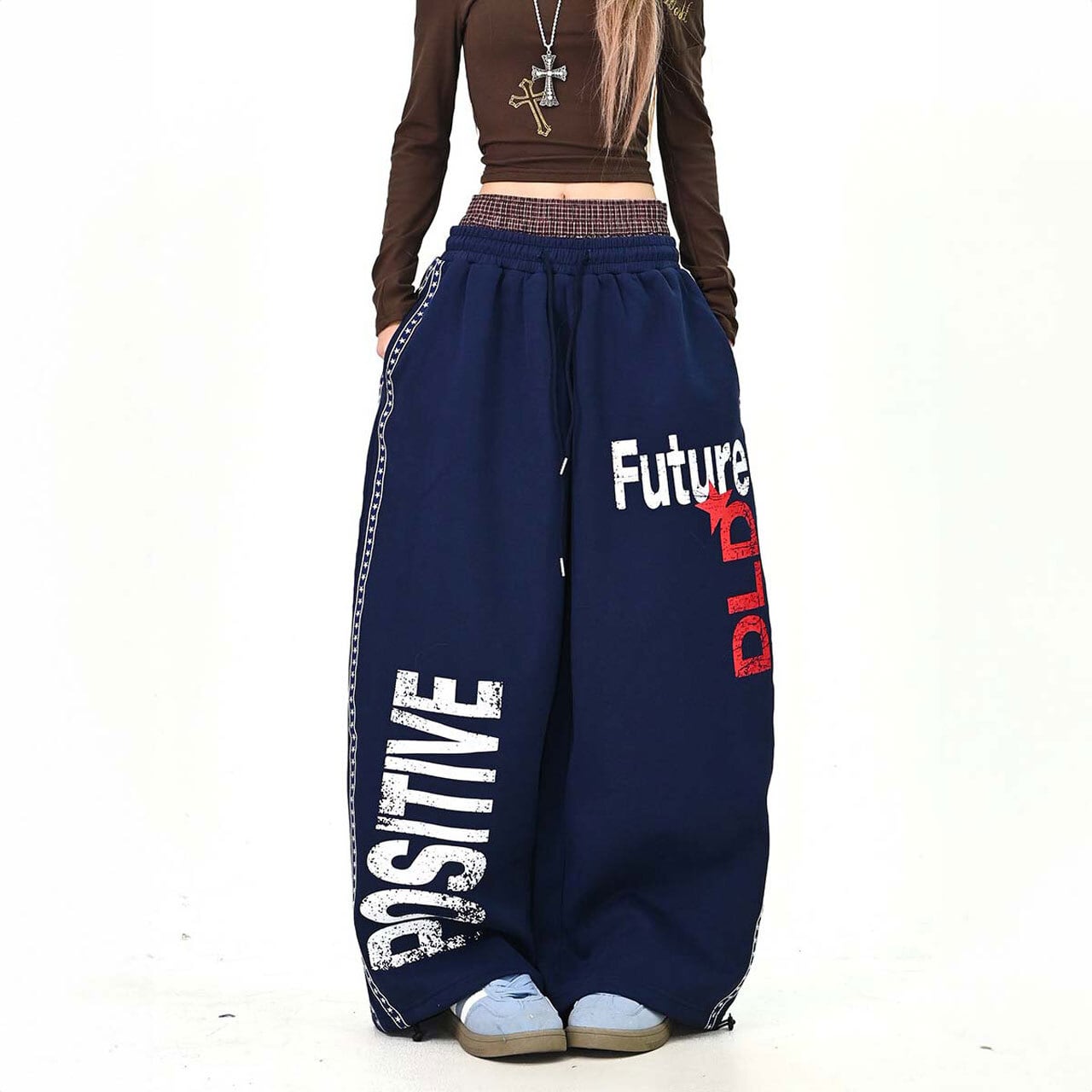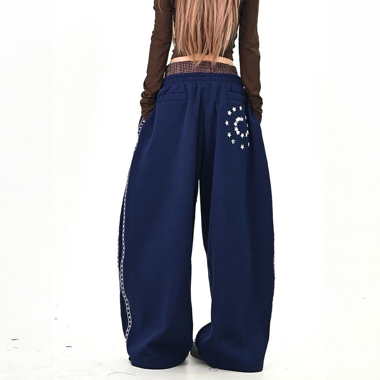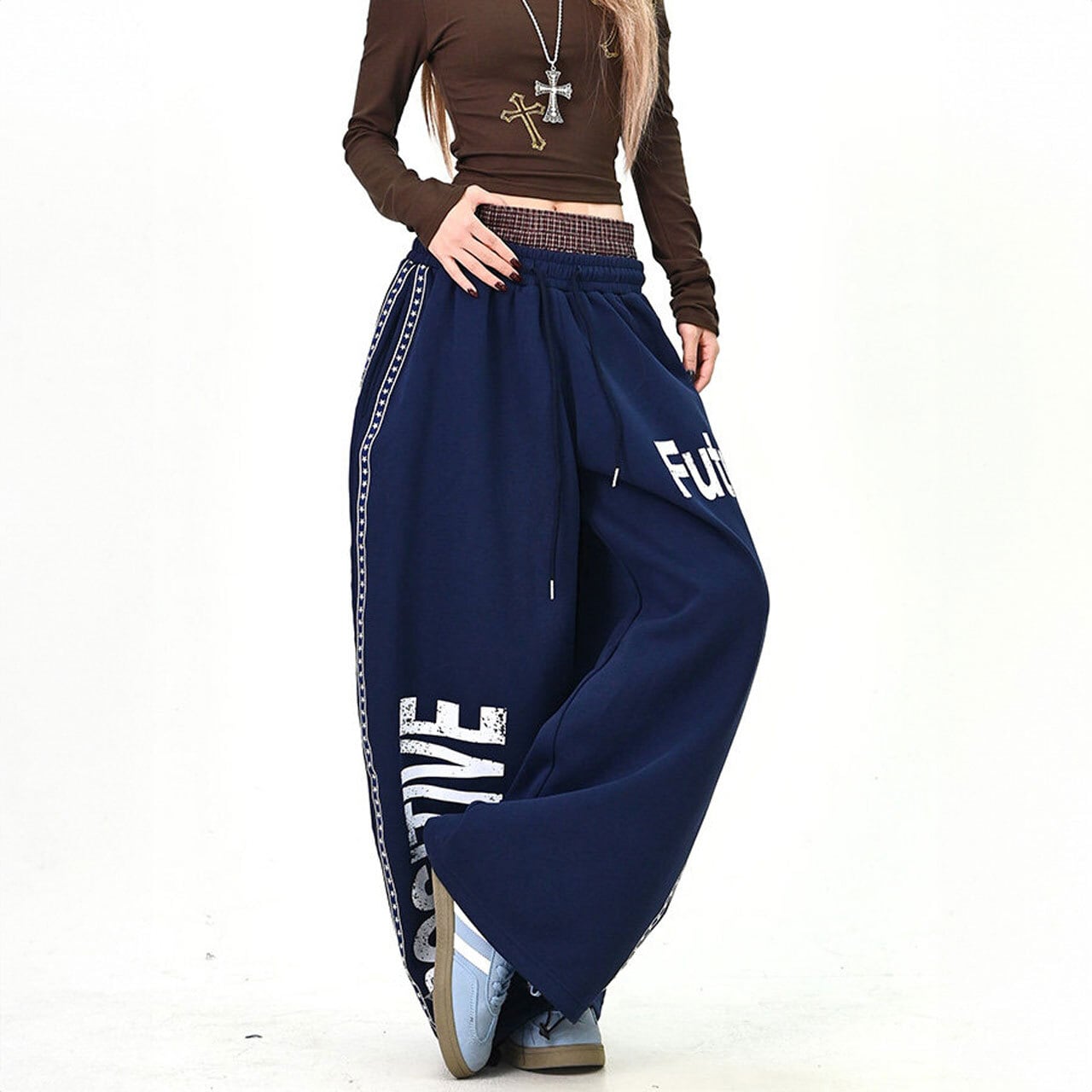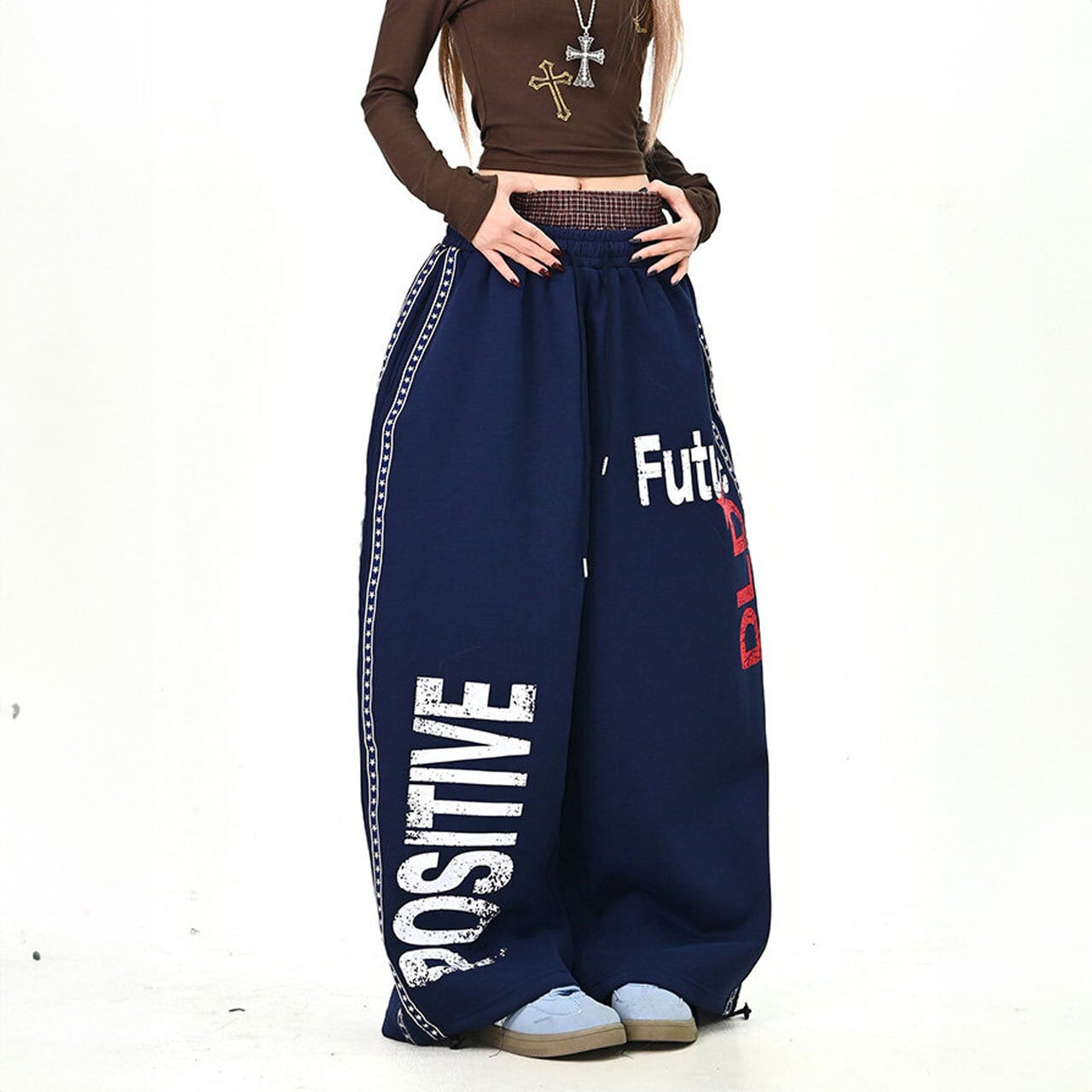 大胆なロゴプリントがストリート感を高めるワイドスウェットパンツ。