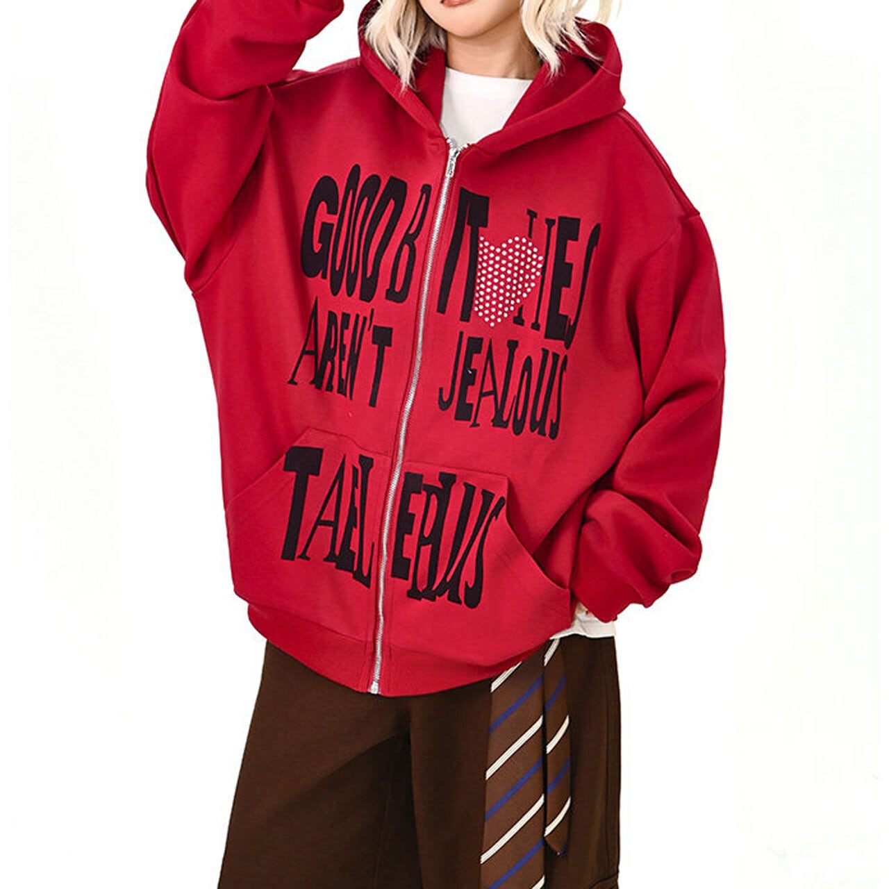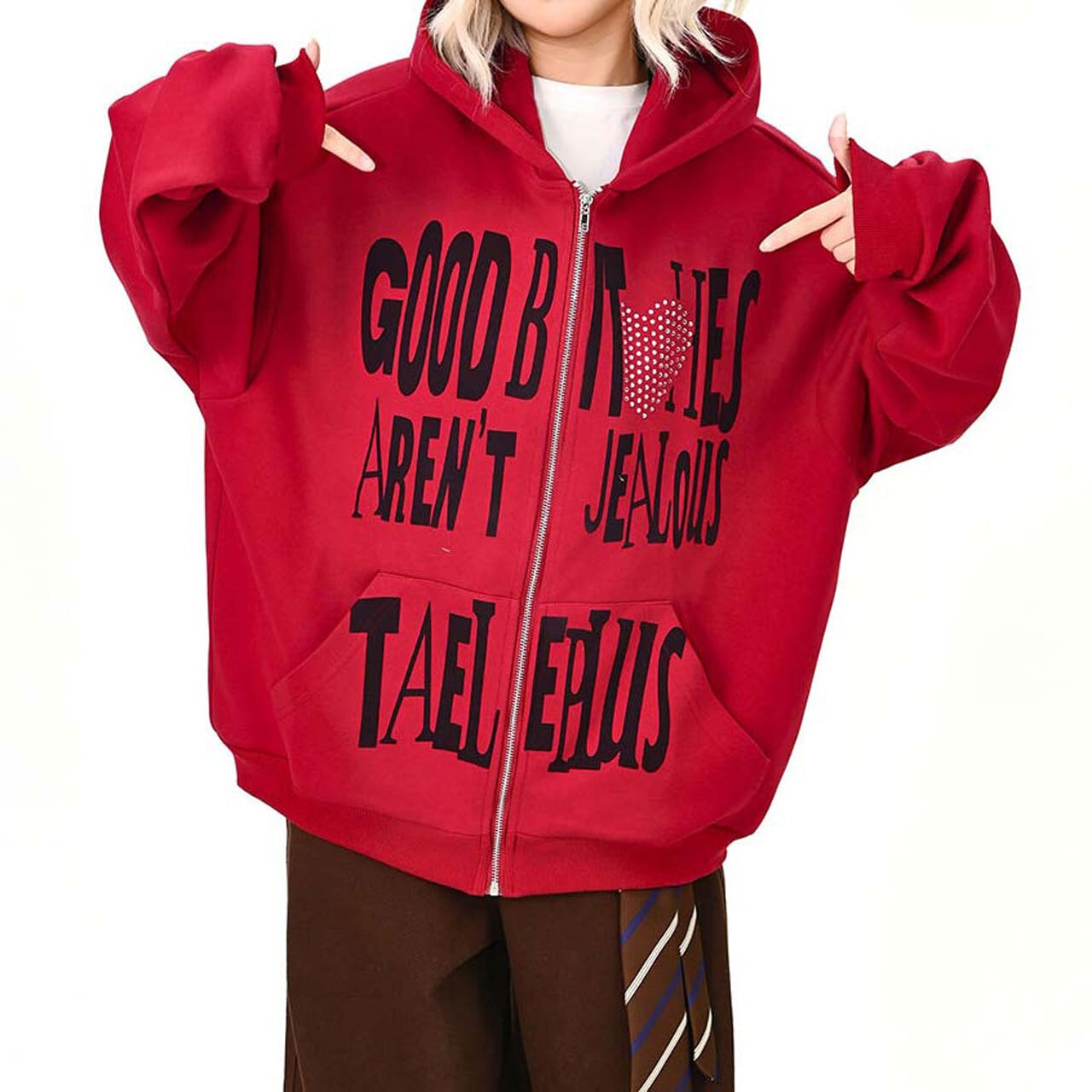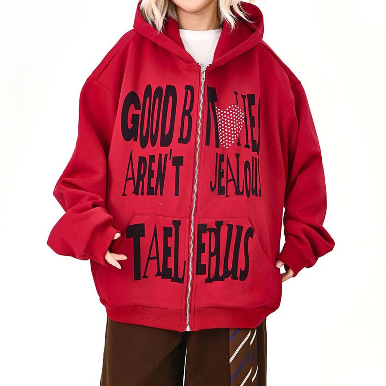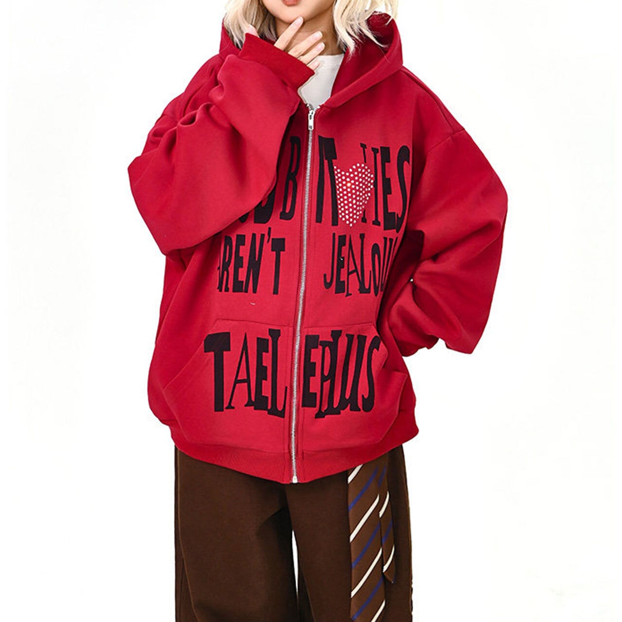 ハートモチーフメッセージロゴジップフーディ 2col R01595