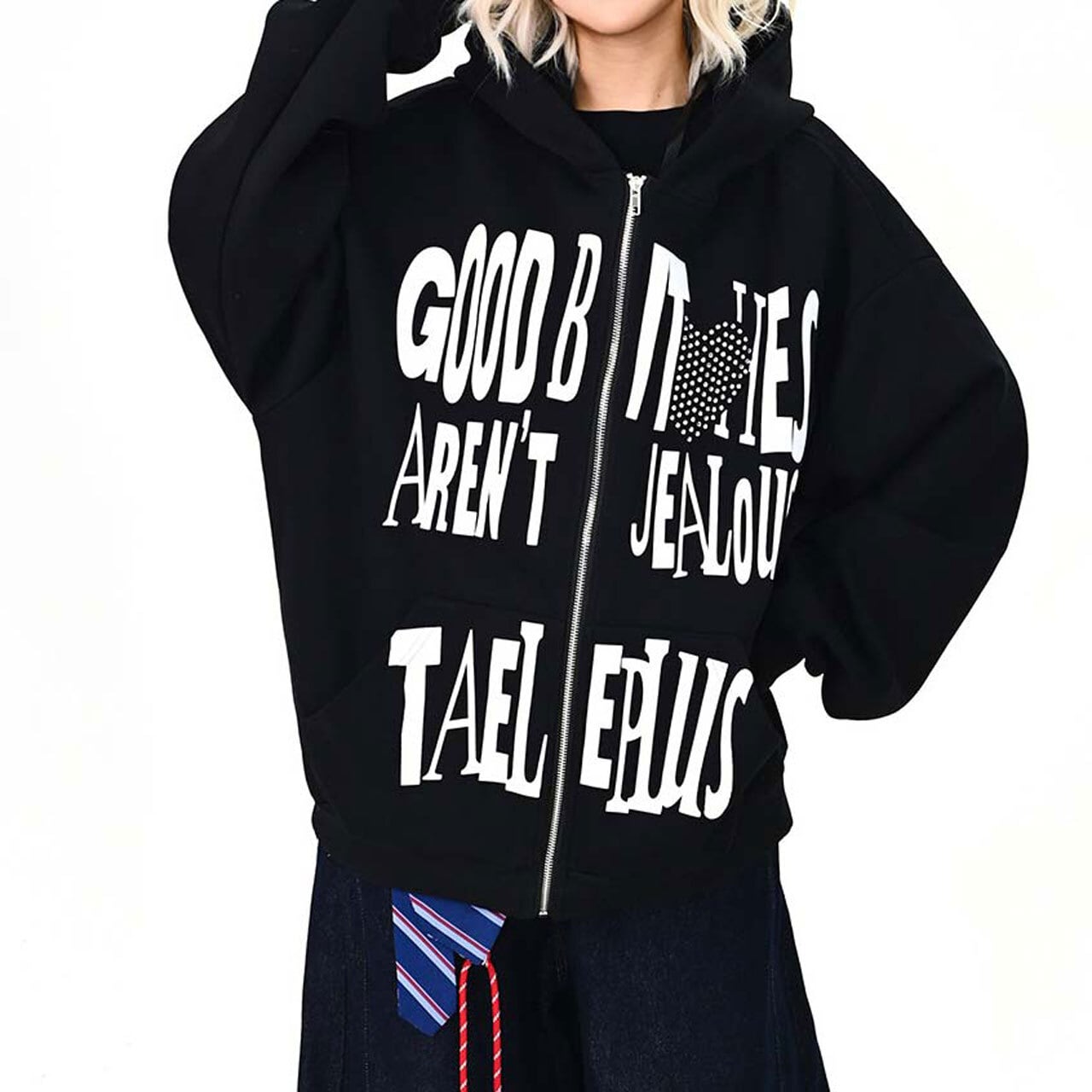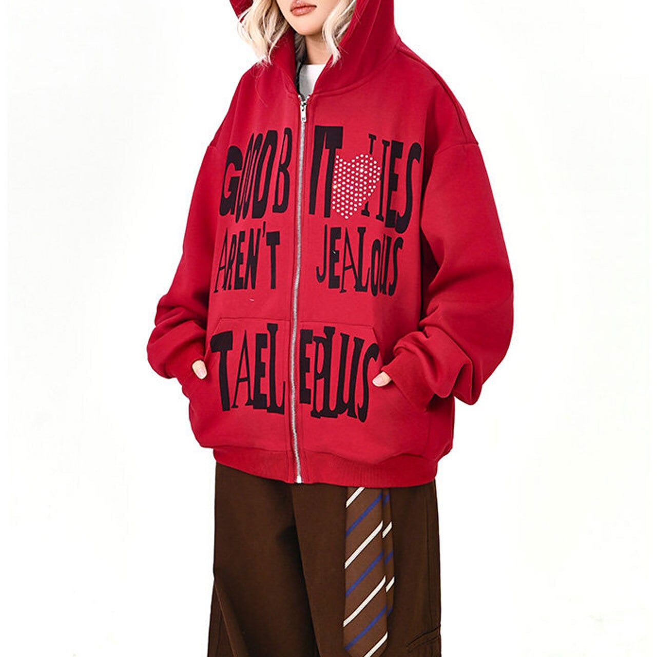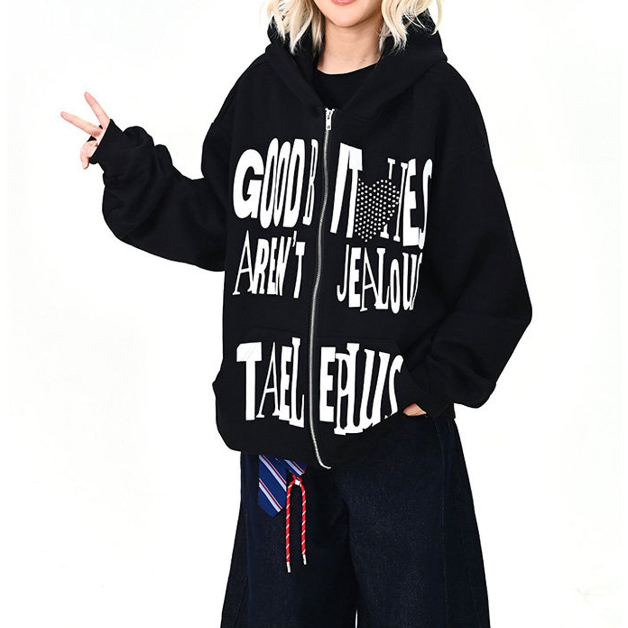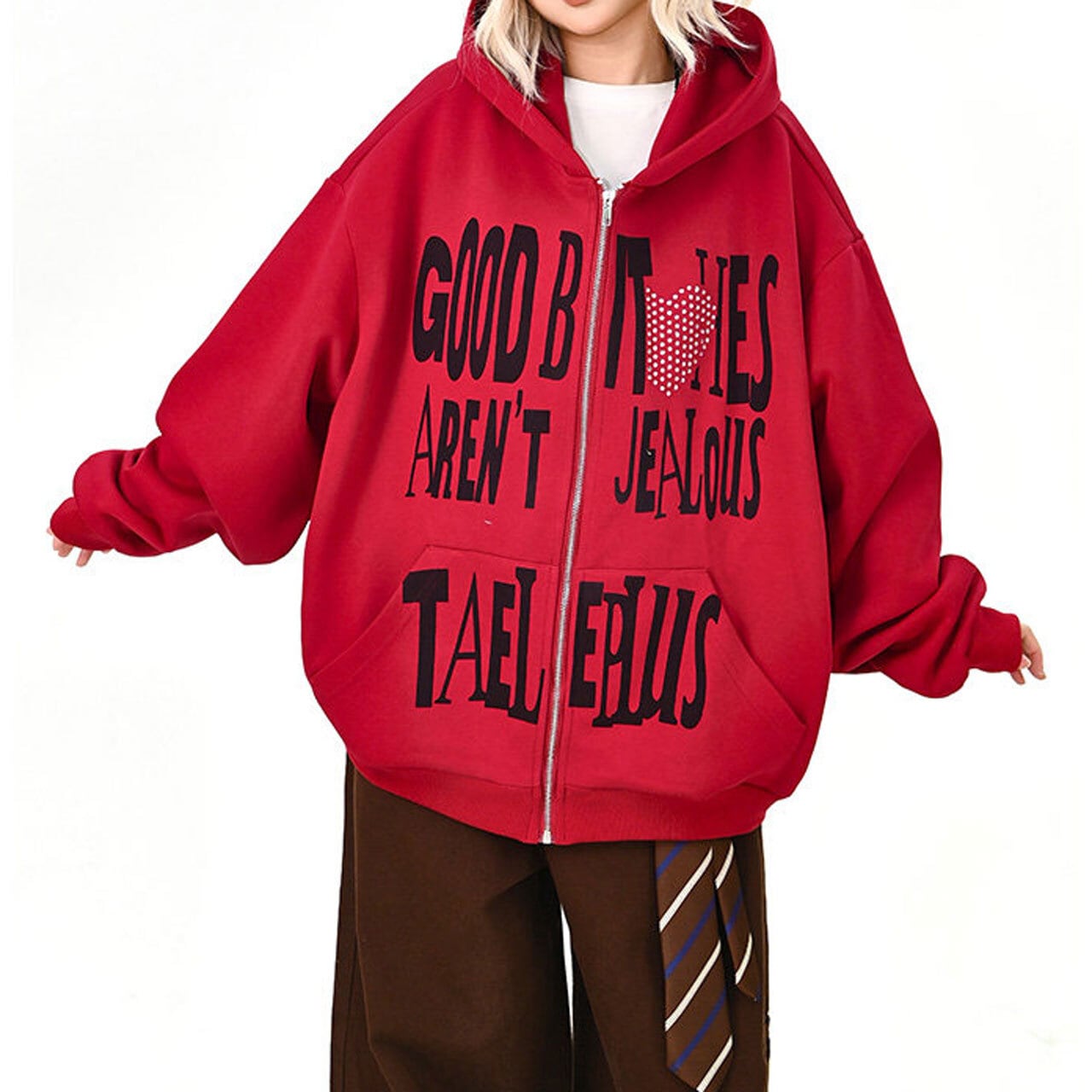 ハートモチーフメッセージロゴジップフーディ 2col R01595