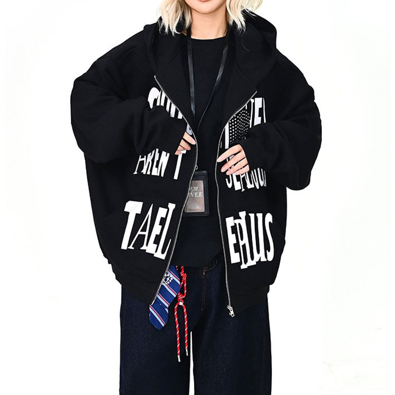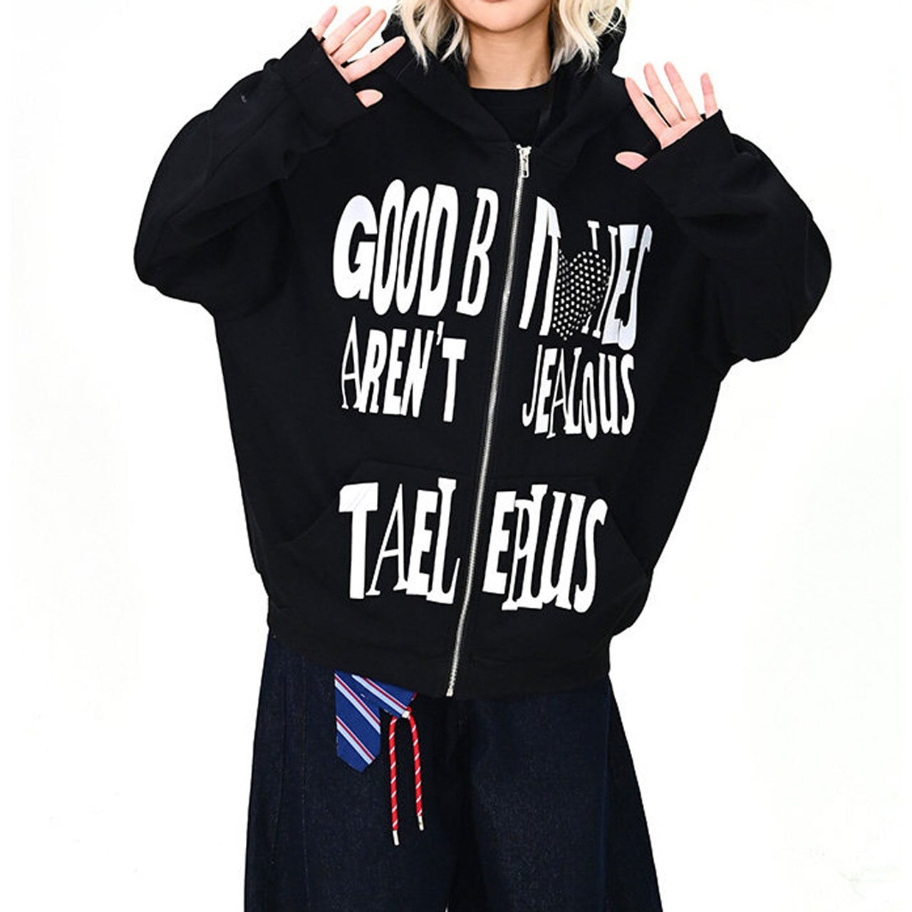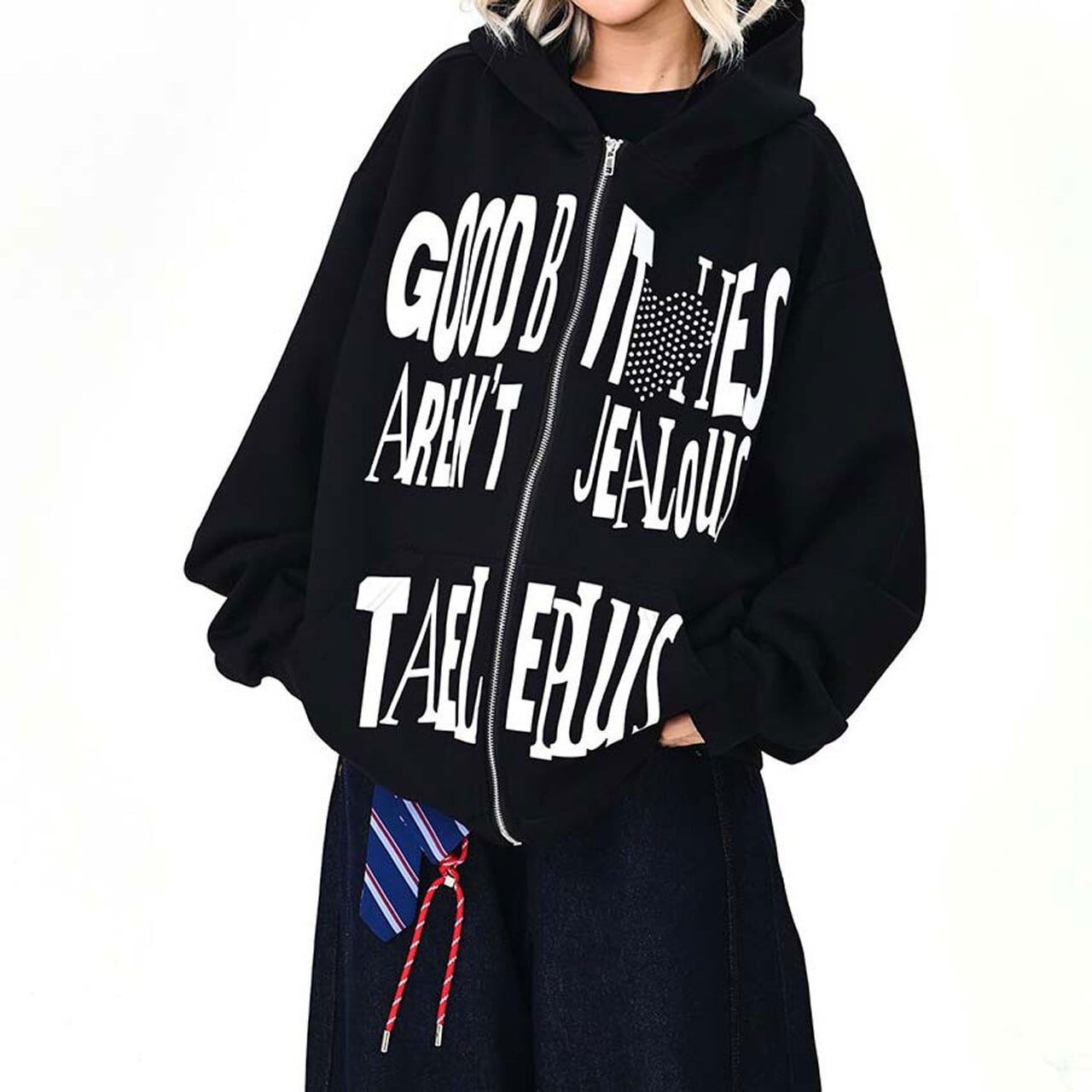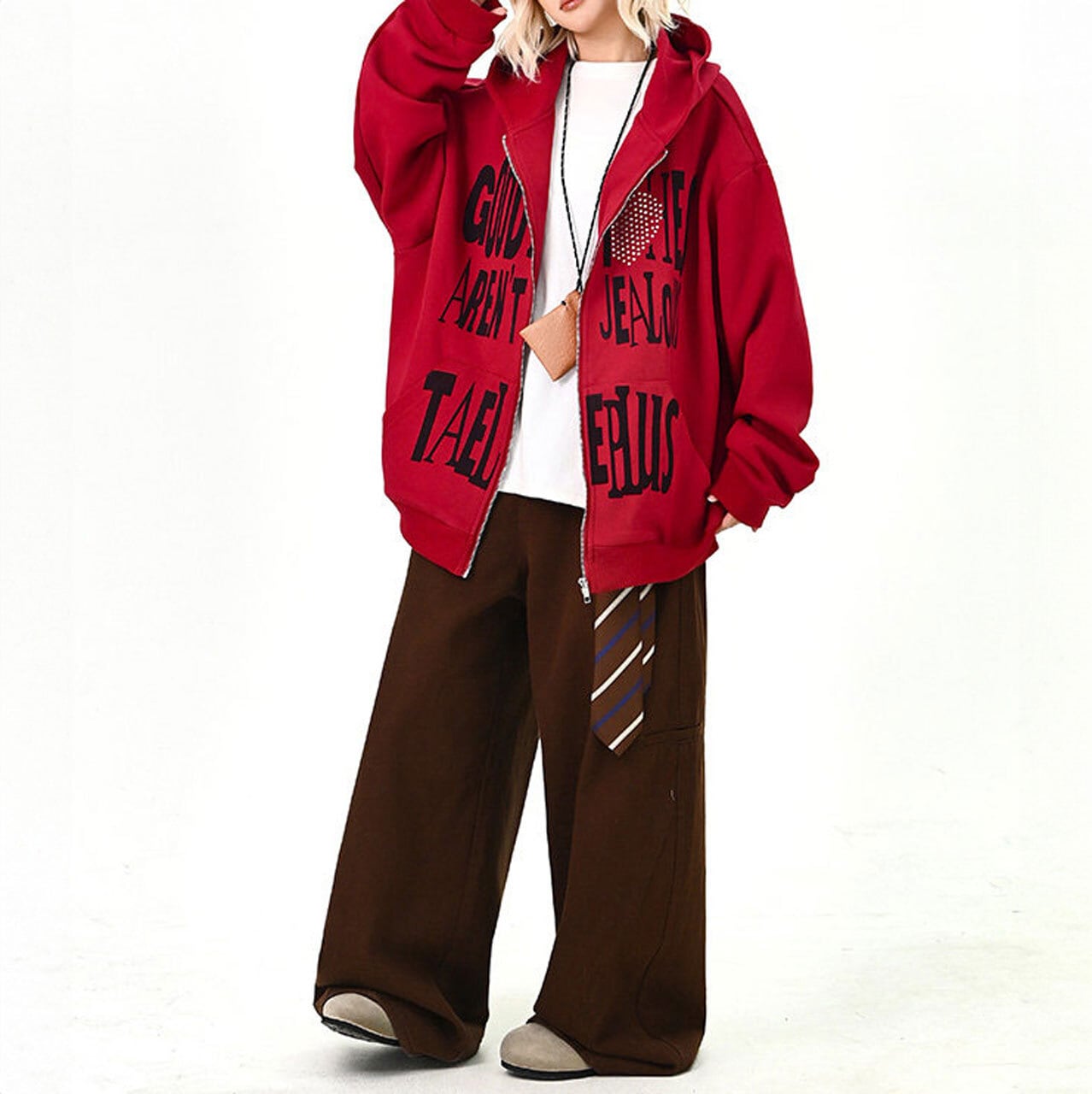 ハートモチーフメッセージロゴジップフーディ 2col R01595