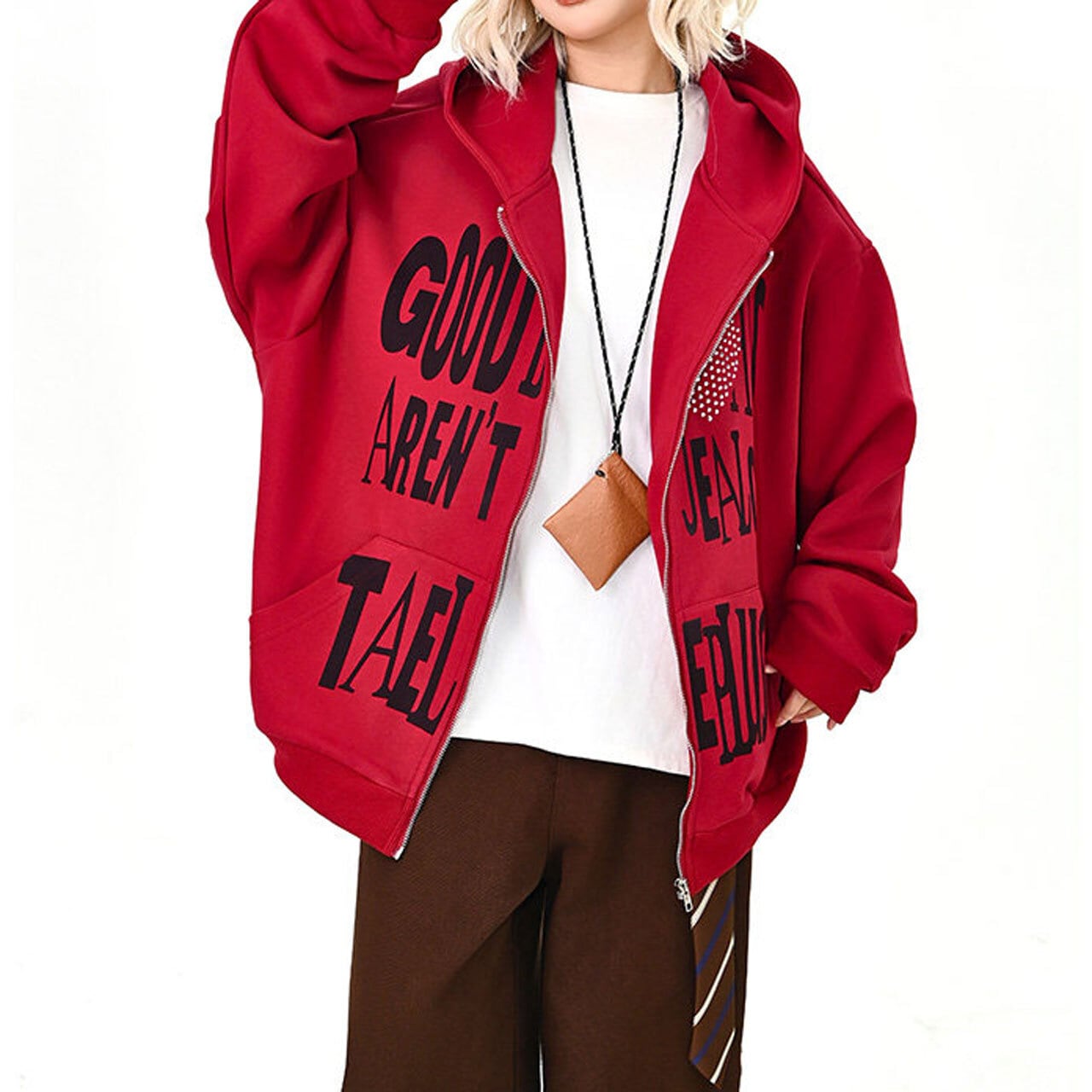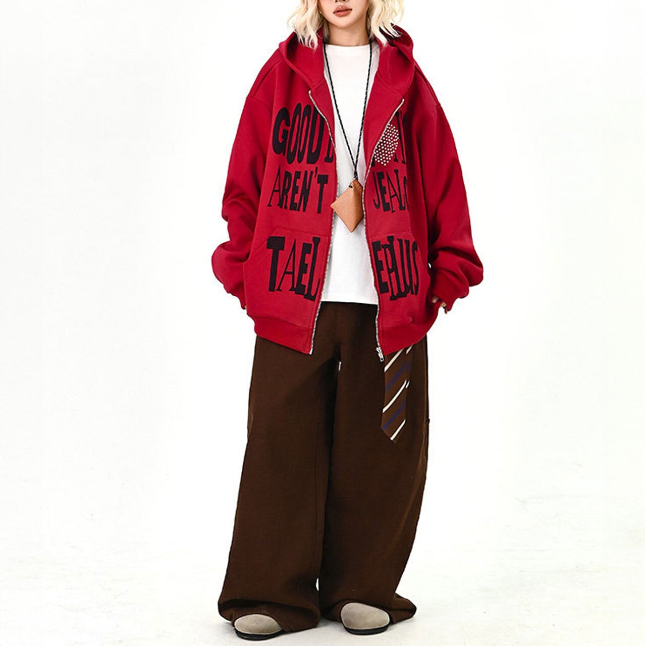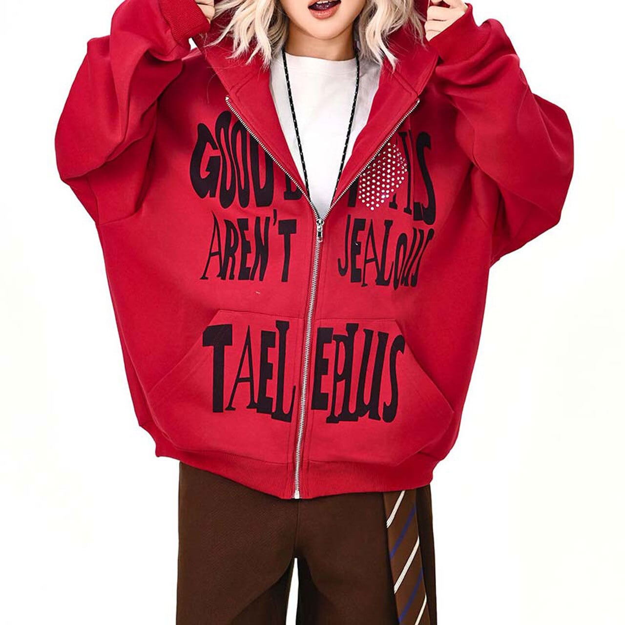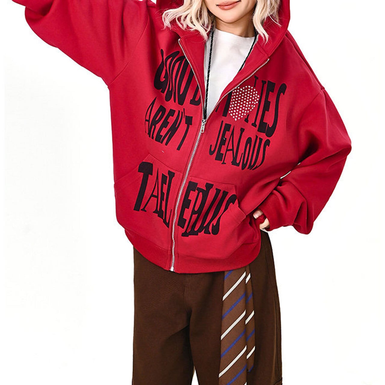 ハートモチーフメッセージロゴジップフーディ 2col R01595