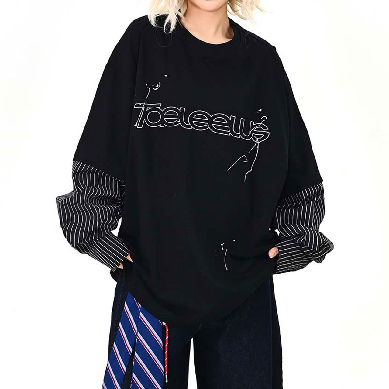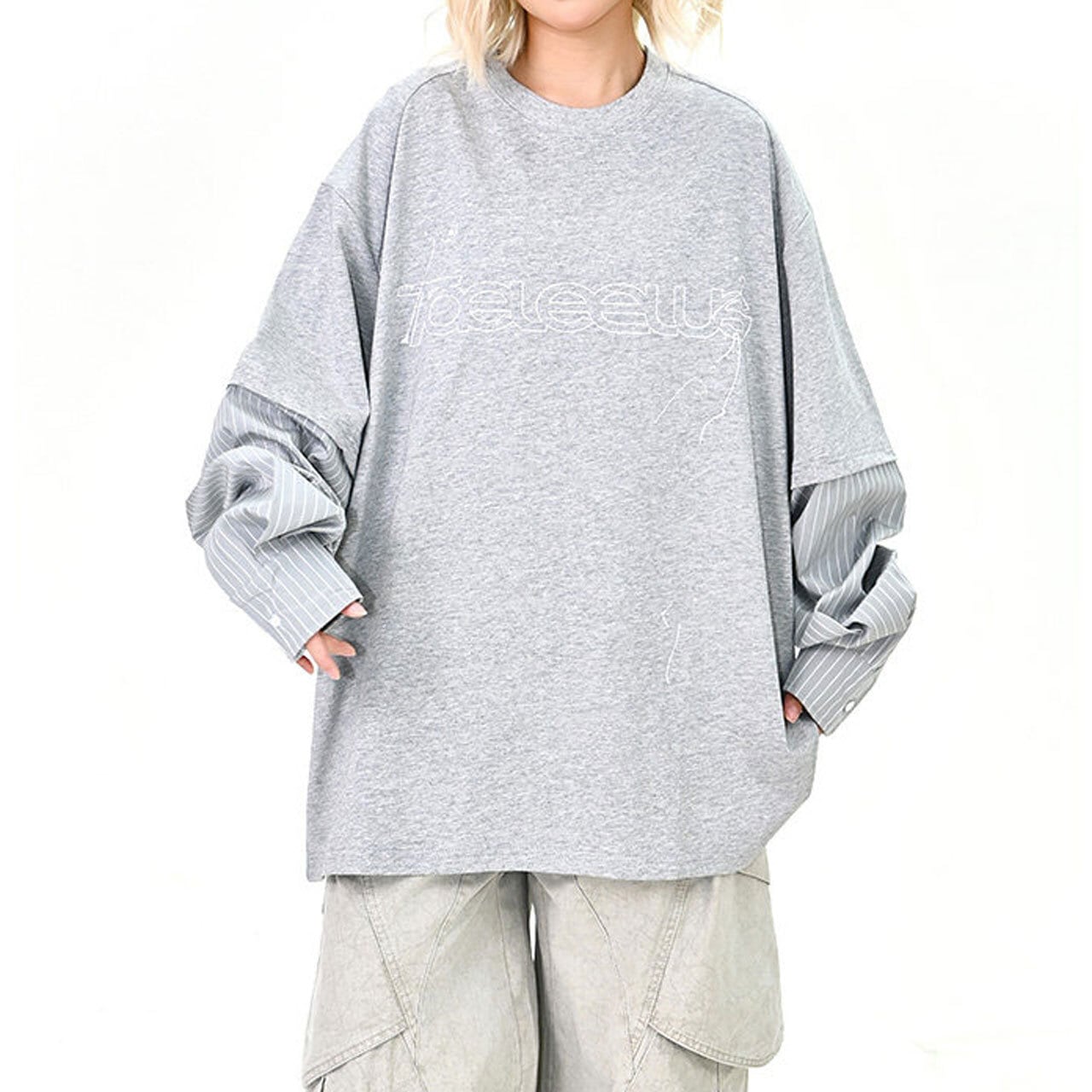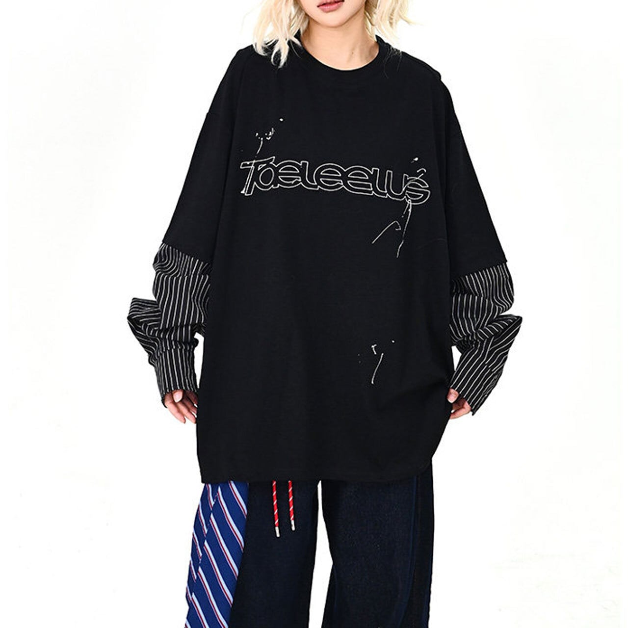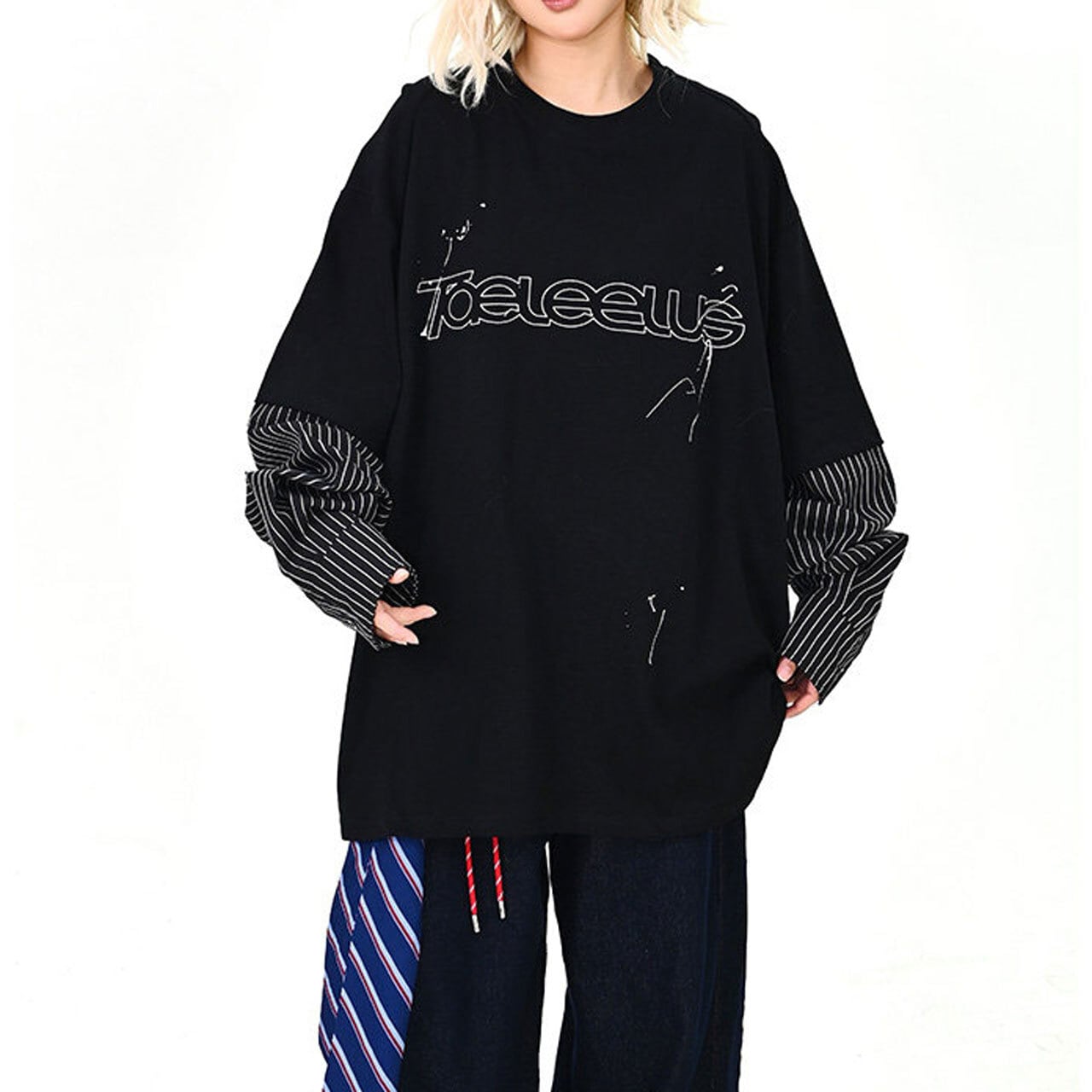 ロゴピンストライプレイヤードロングT 2col R01600