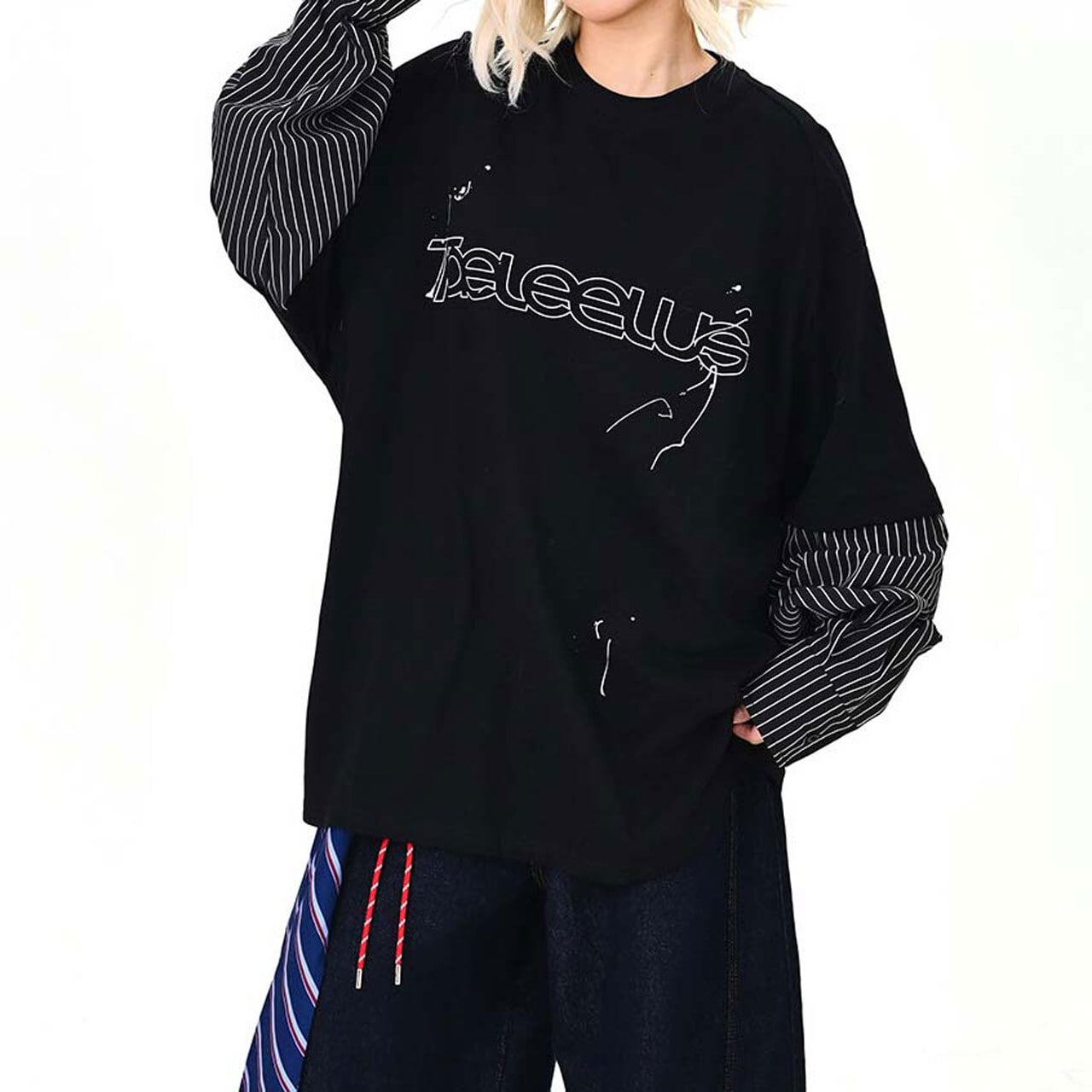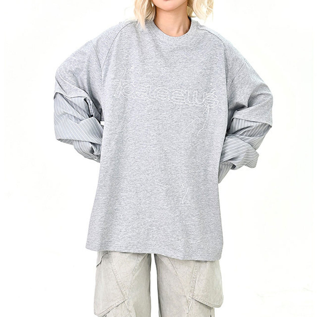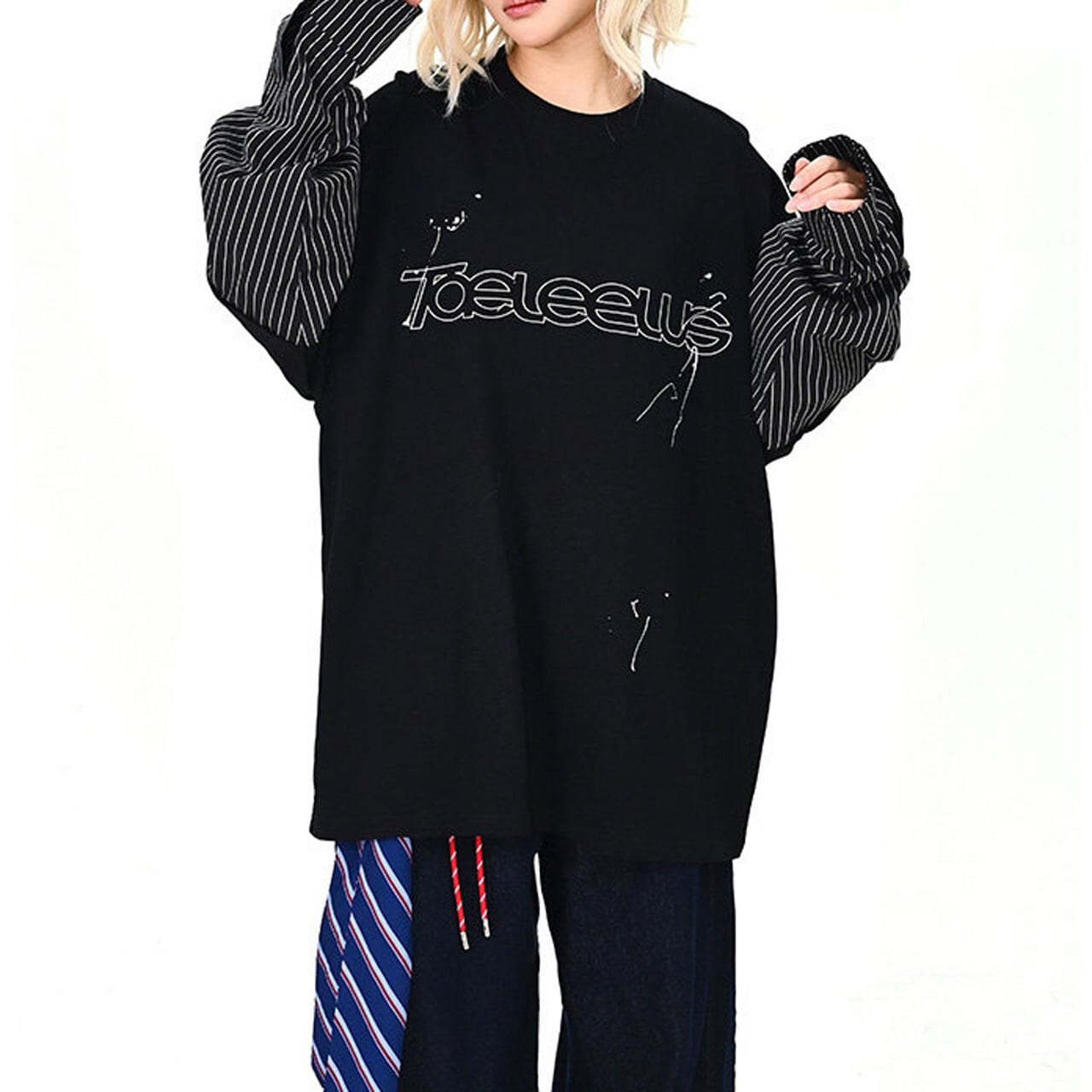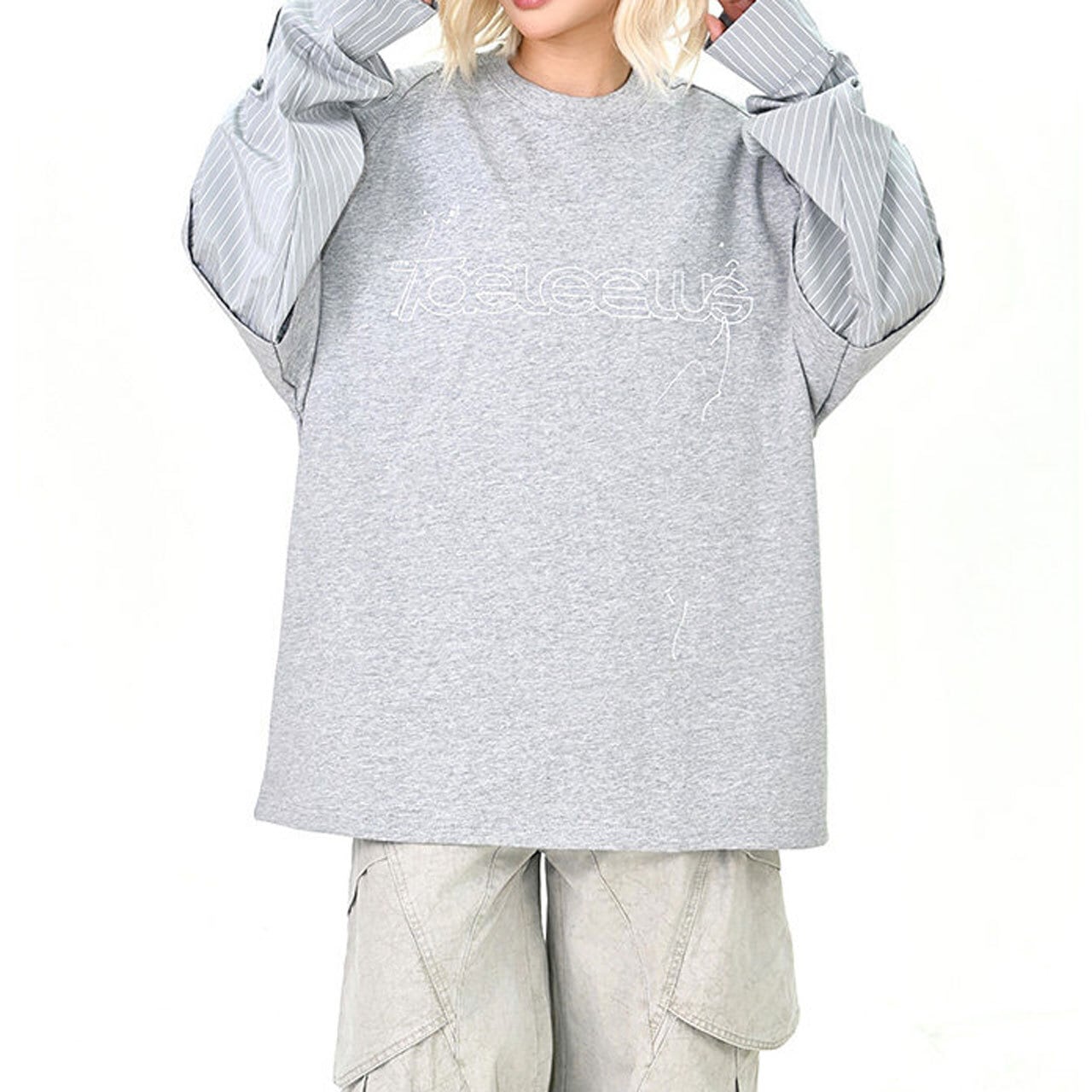 ロゴピンストライプレイヤードロングT 2col R01600