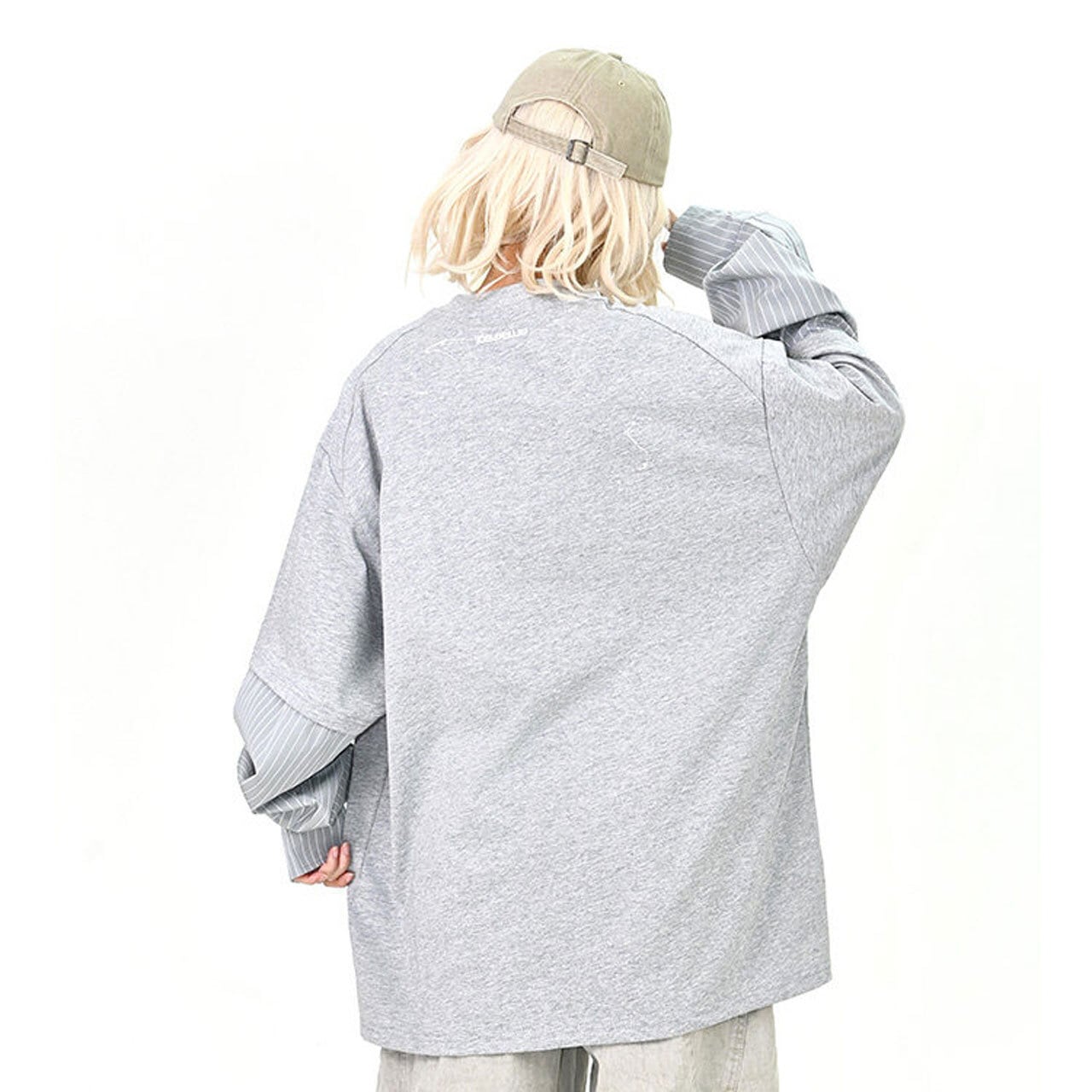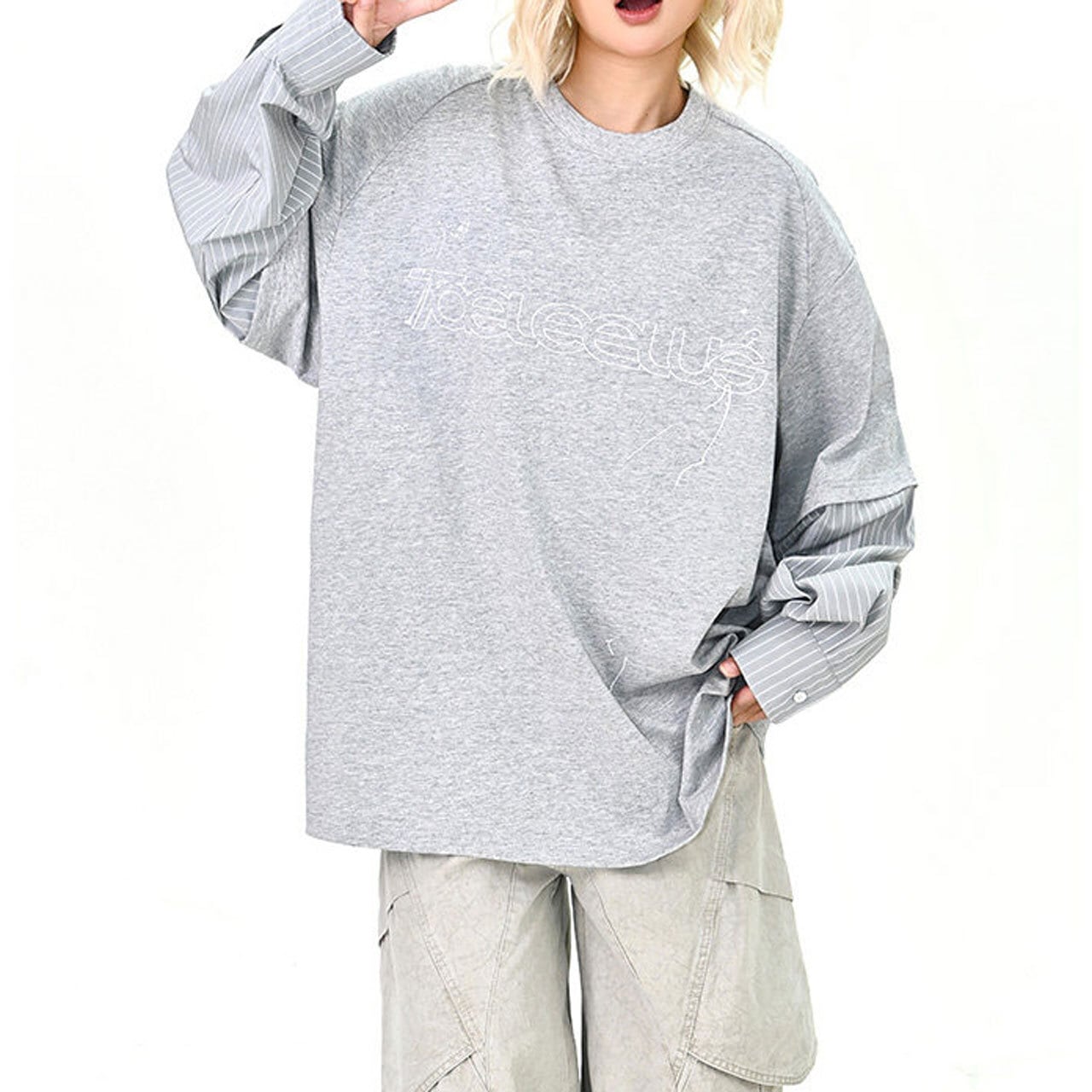 袖の切り替えが一枚で奥行きのあるスタイルを演出します。