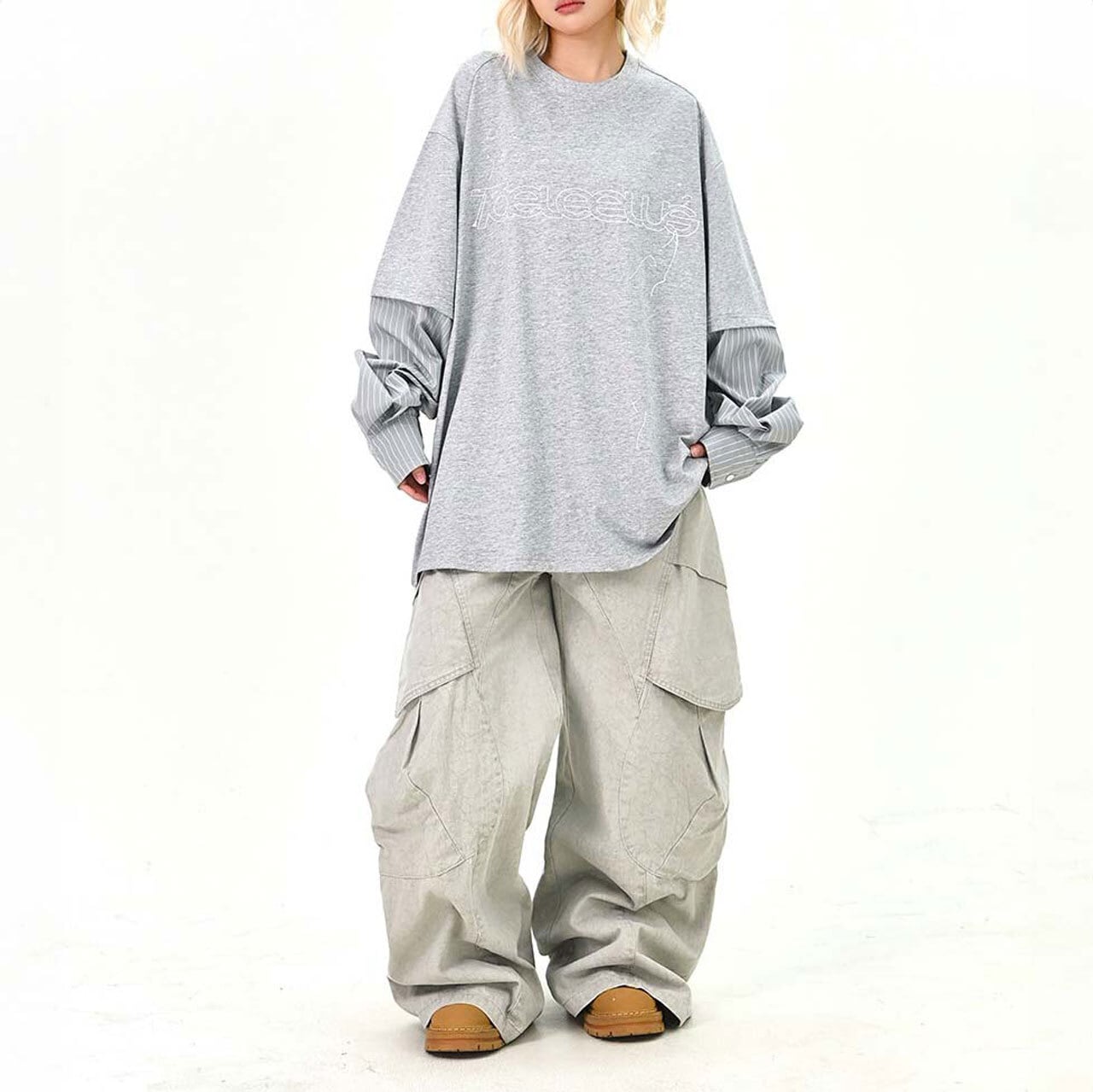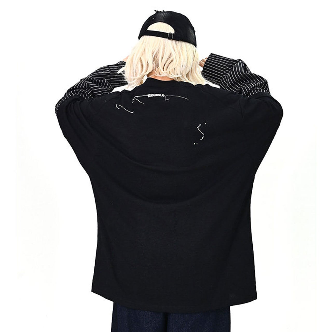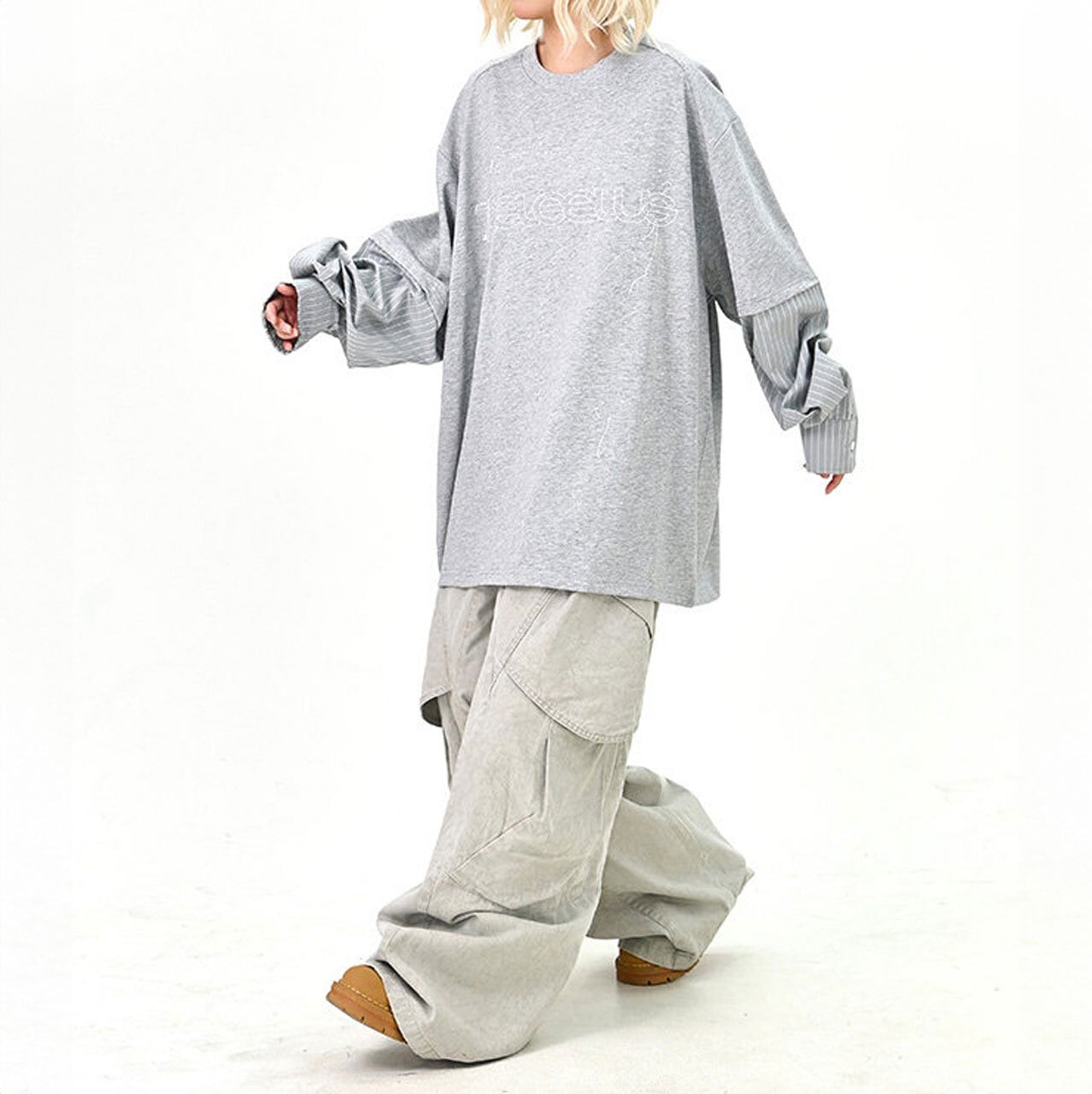 ワイドパンツと合わせて、ストリート感のある着こなしに。