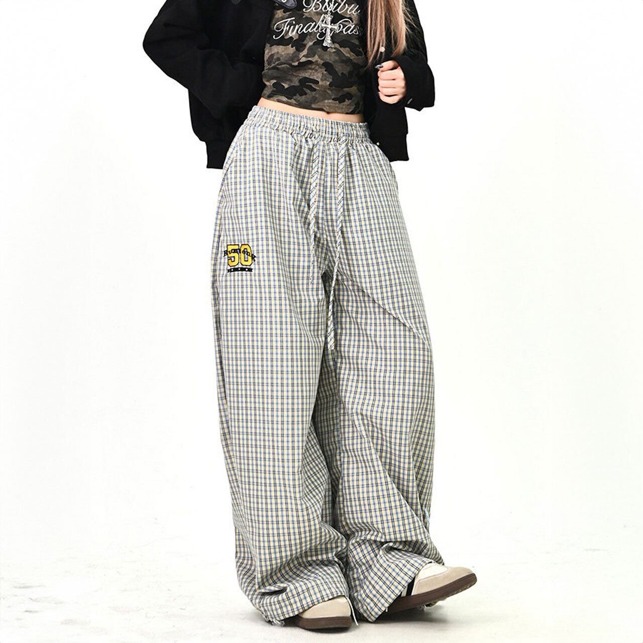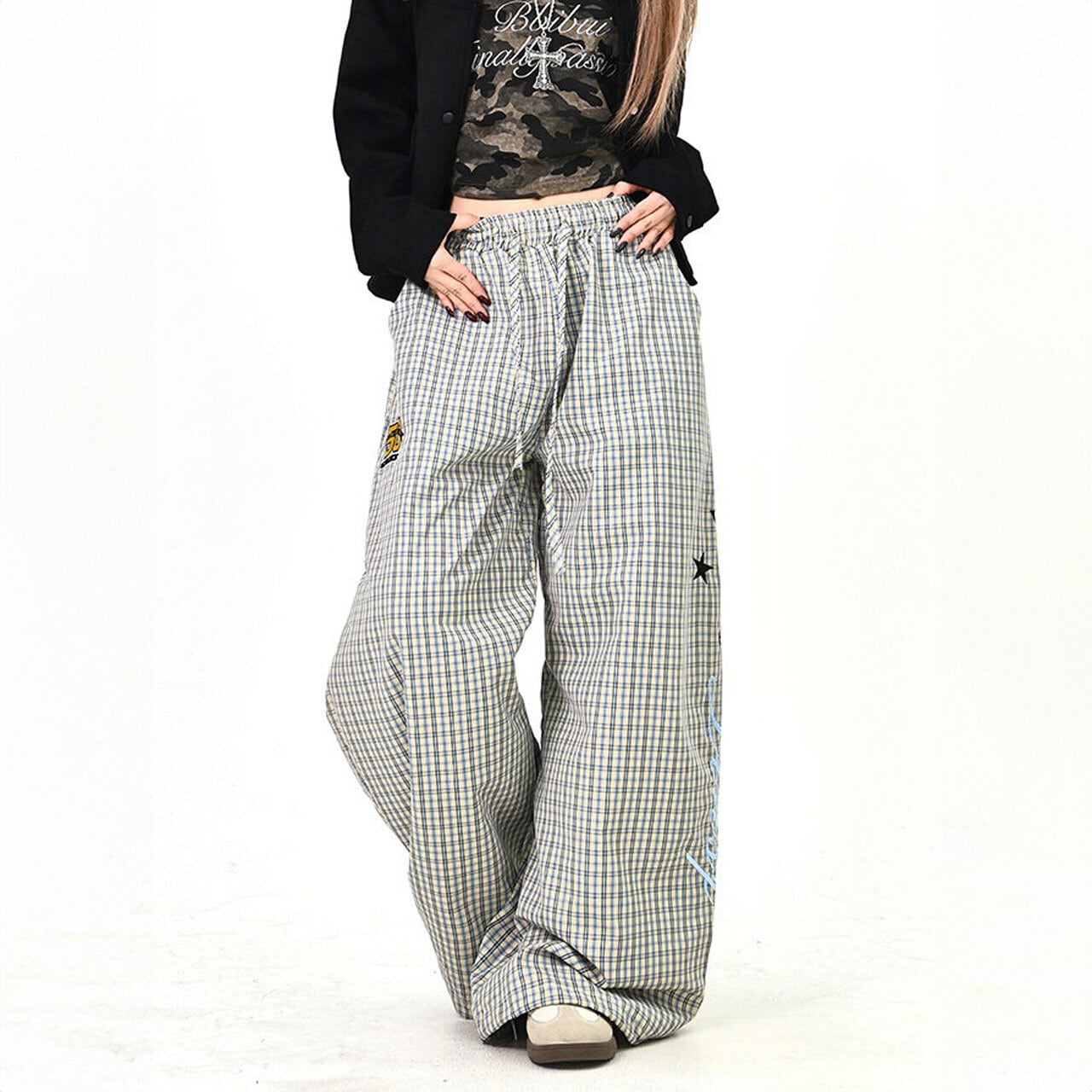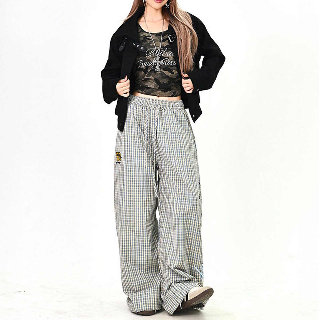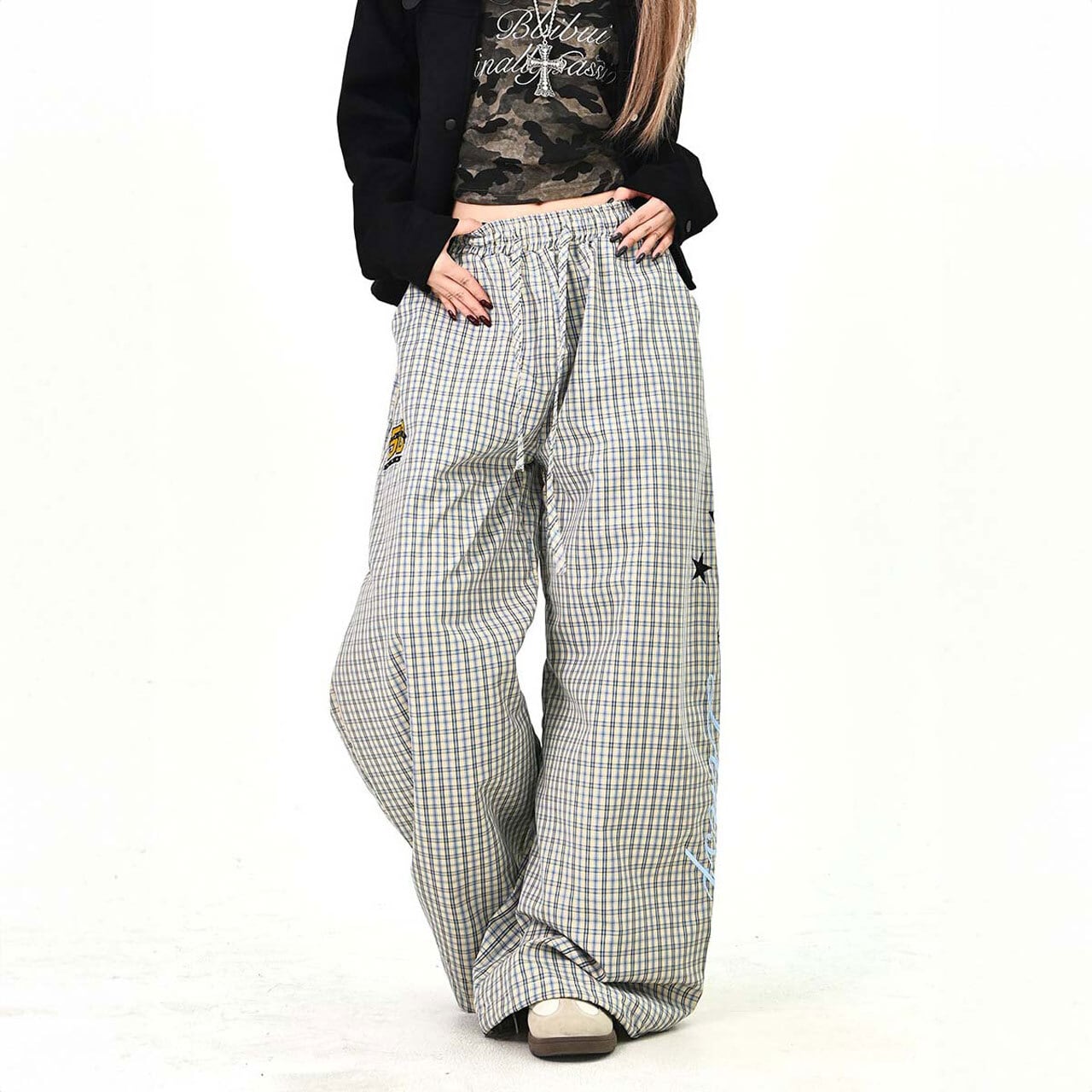 存在感のあるチェック柄が目を引く、ストリートムード全開のワイドパンツ。