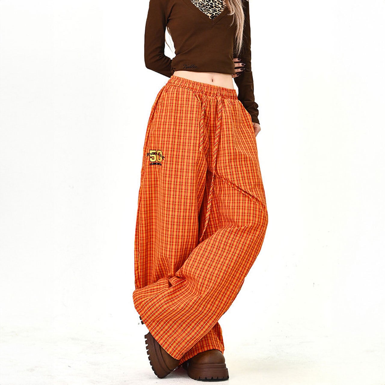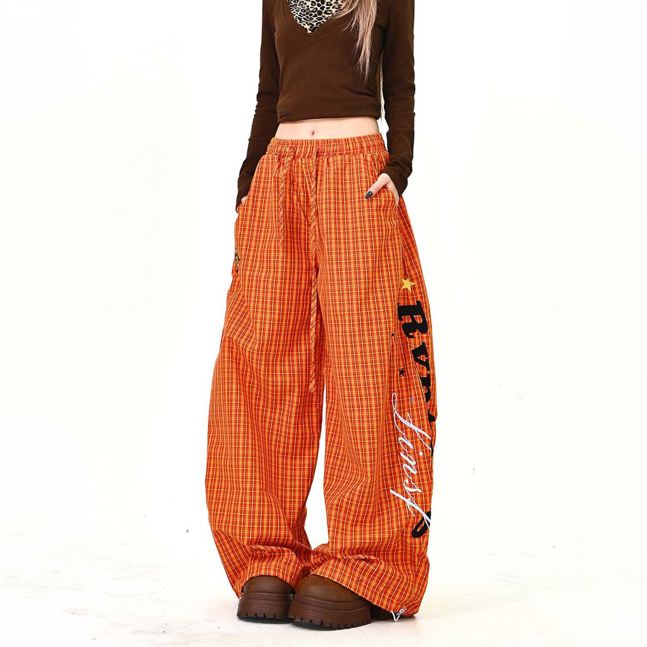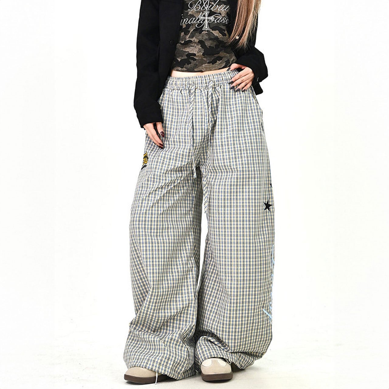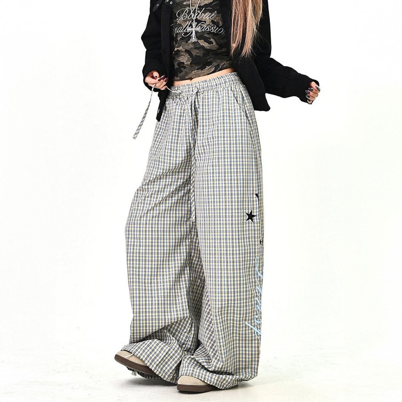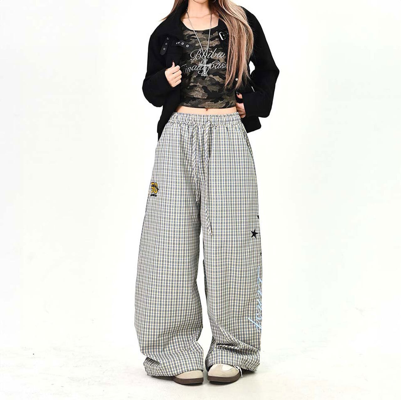 存在感のあるチェック柄が目を引く、ストリートムード全開のワイドパンツ。