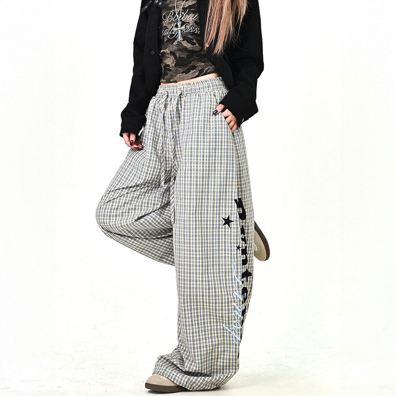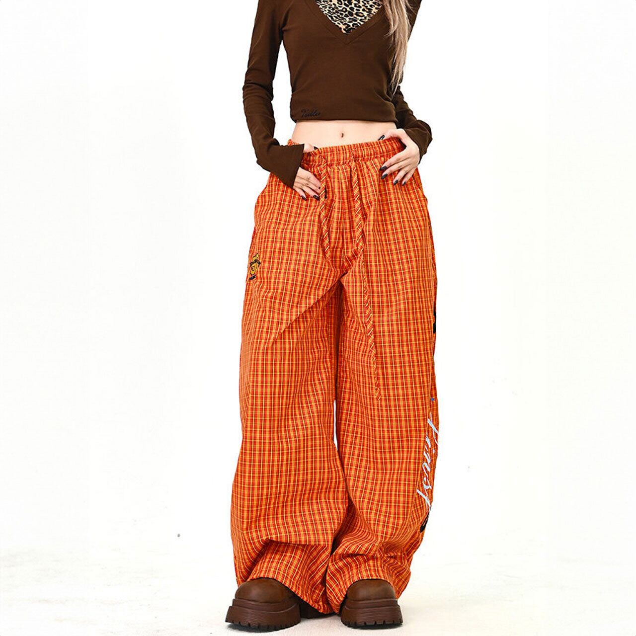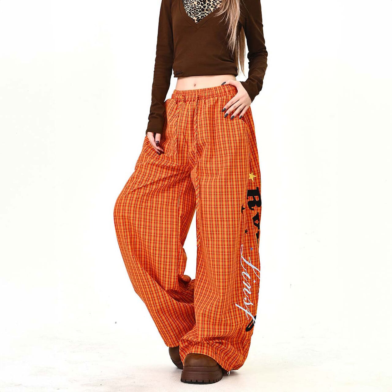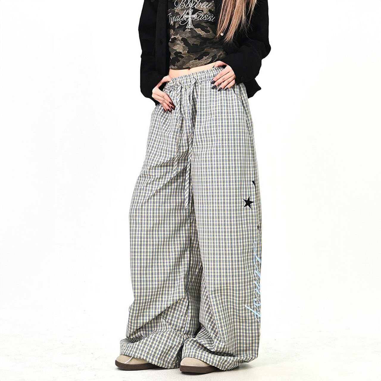 存在感のあるチェック柄が目を引く、ストリートムード全開のワイドパンツ。