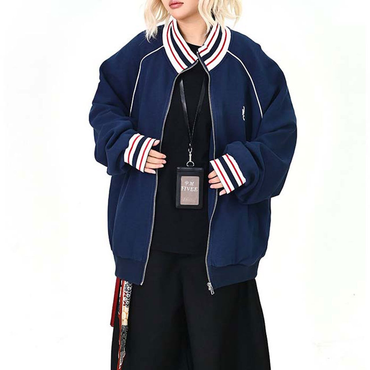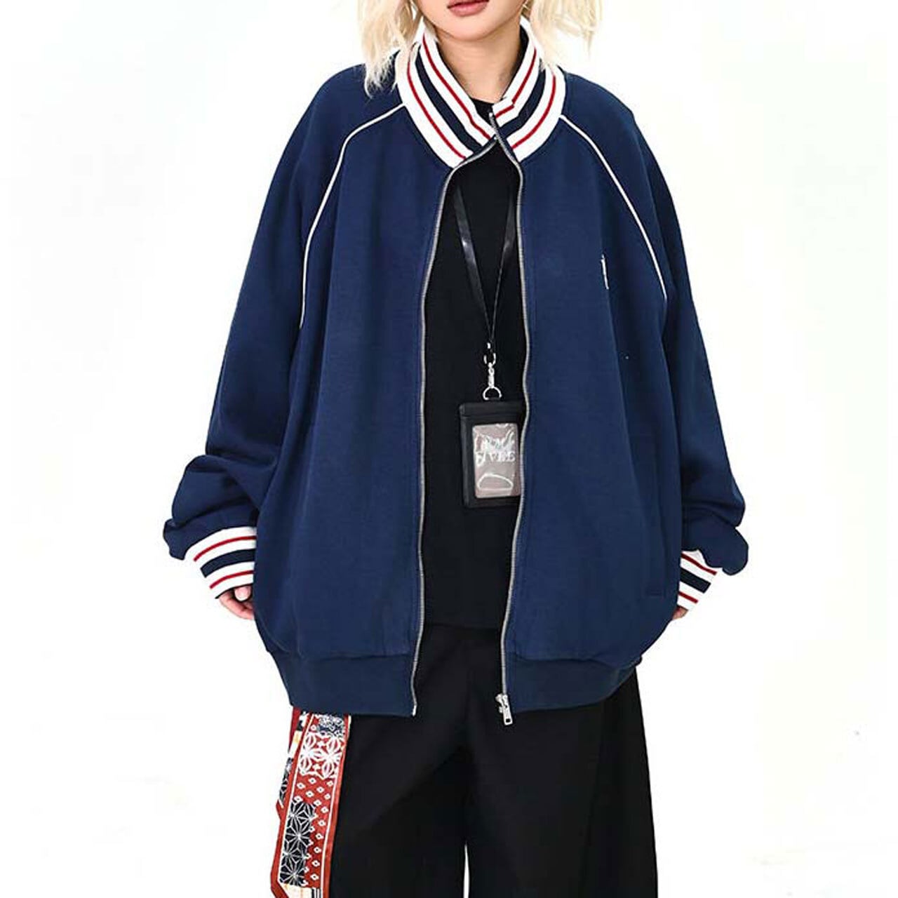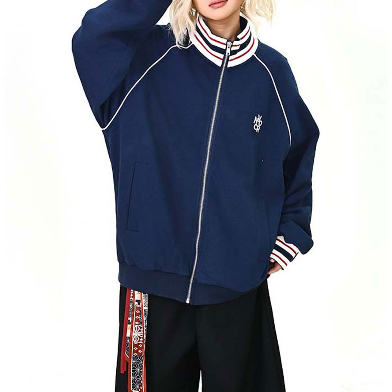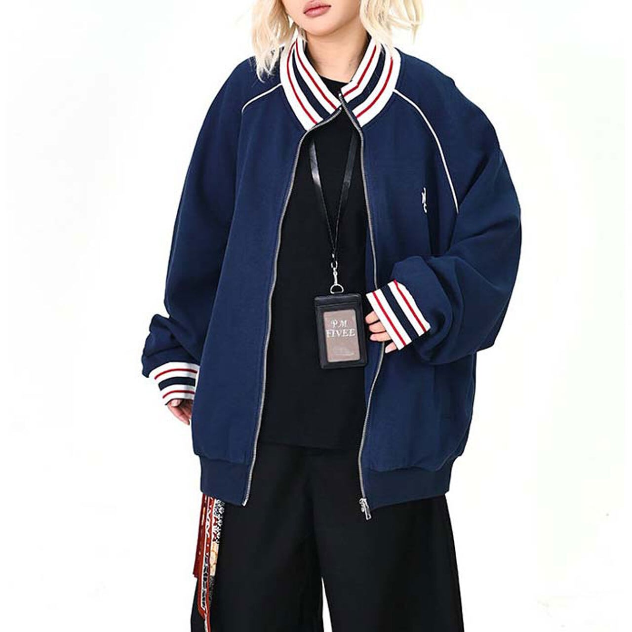 スタジャンライクなリブデザインがアクセントのジップブルゾン。