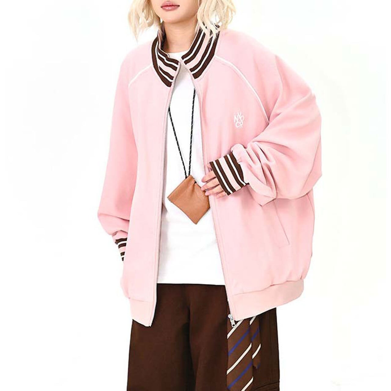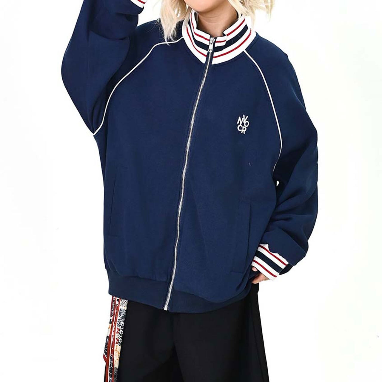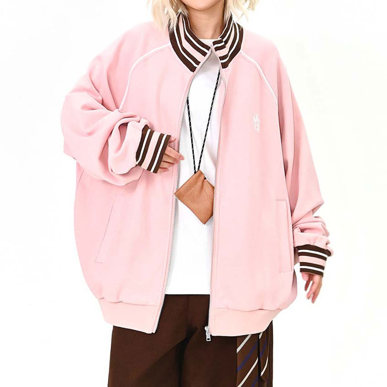 スタジャンライクなリブデザインがアクセントのジップブルゾン。