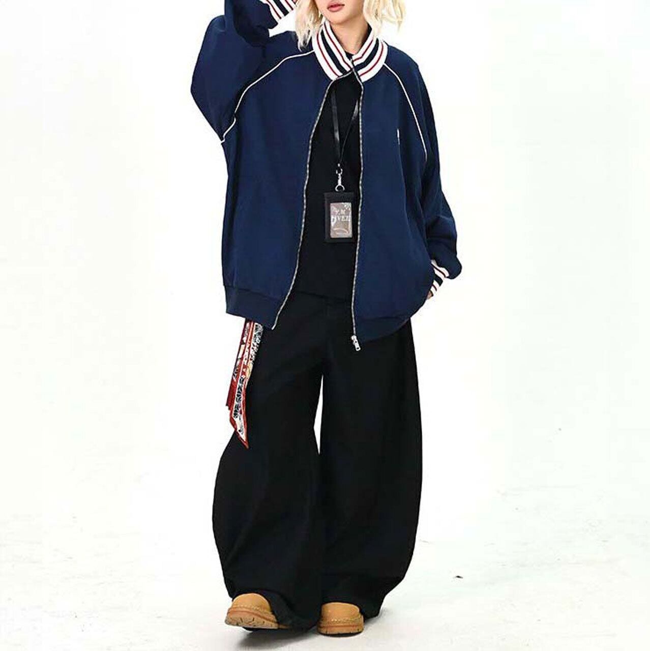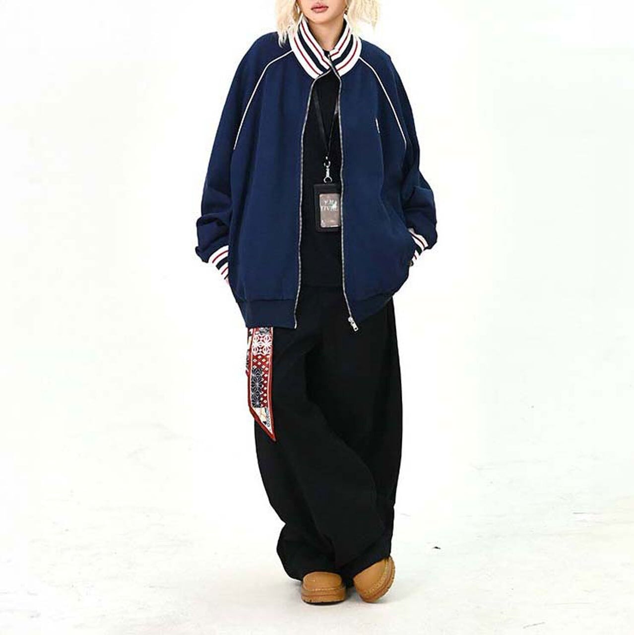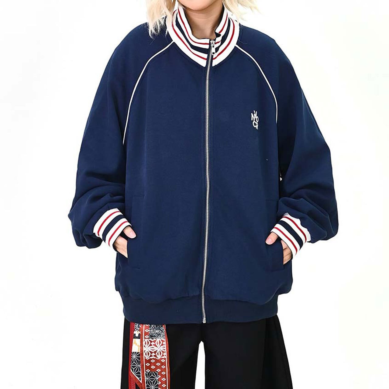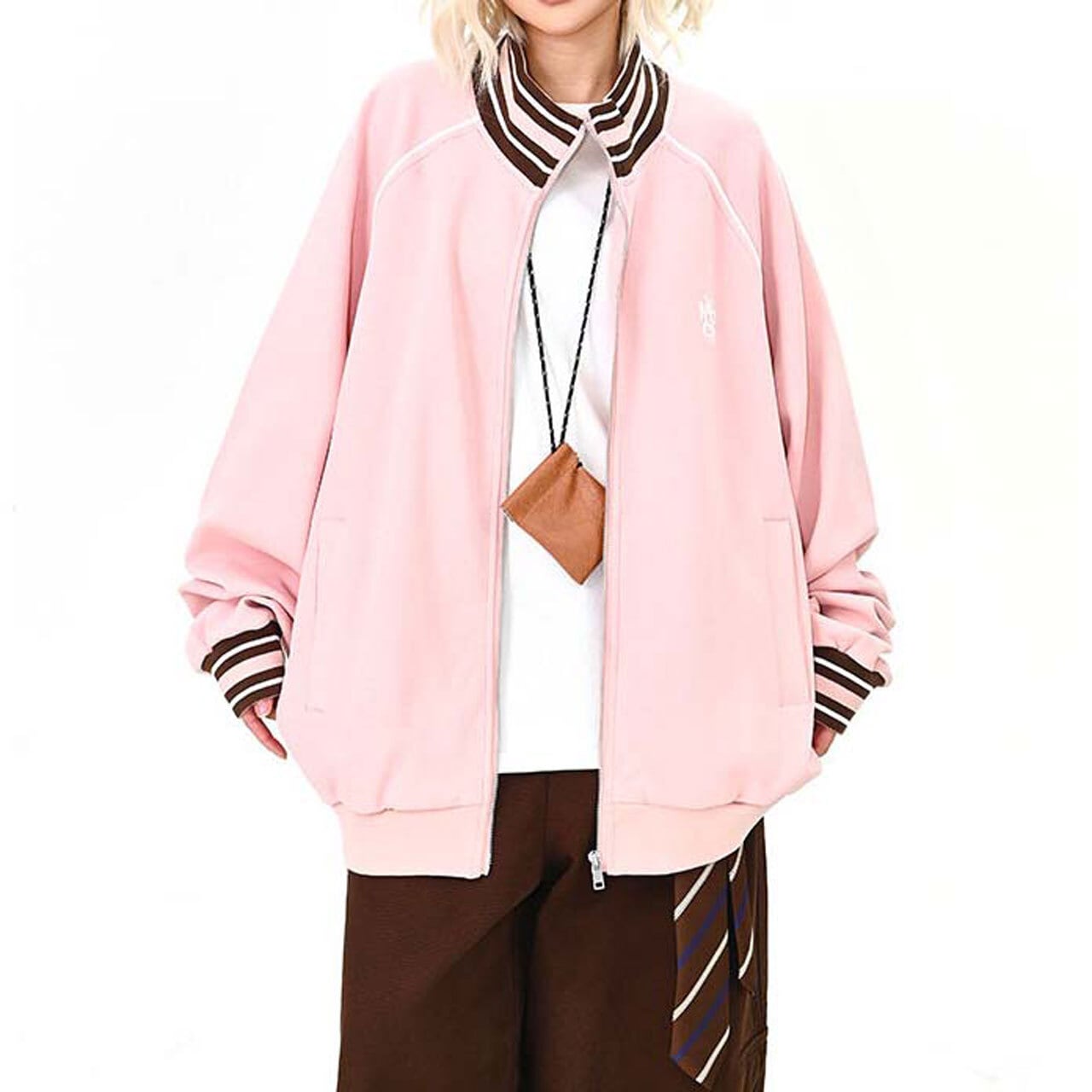 スタジャンライクなリブデザインがアクセントのジップブルゾン。