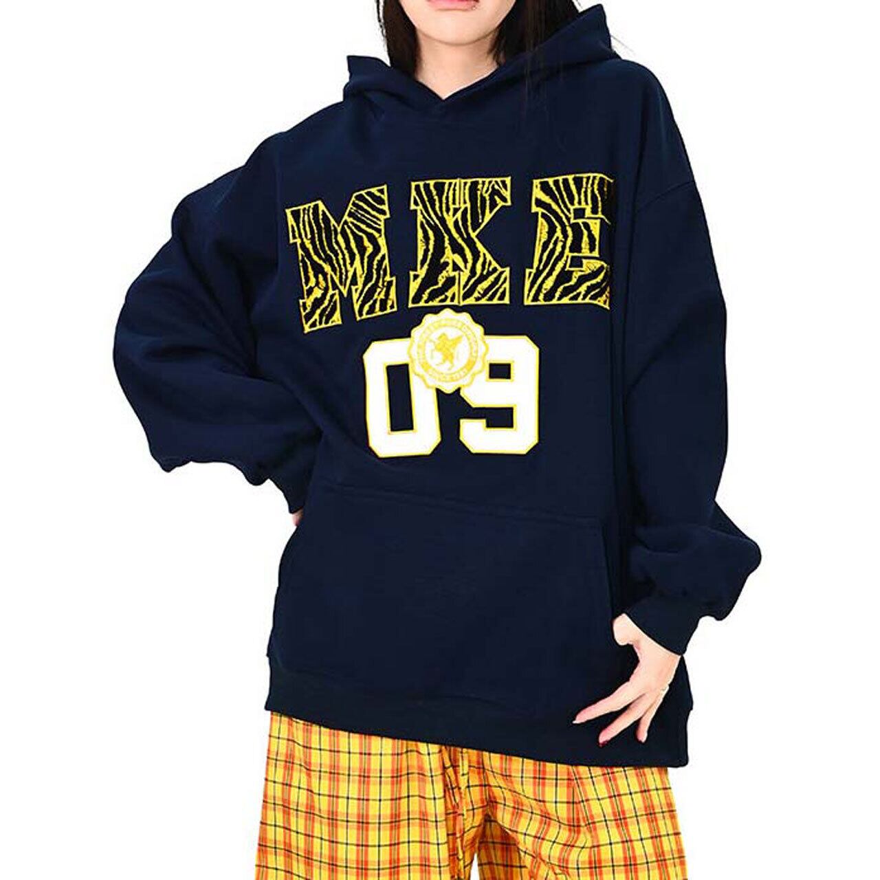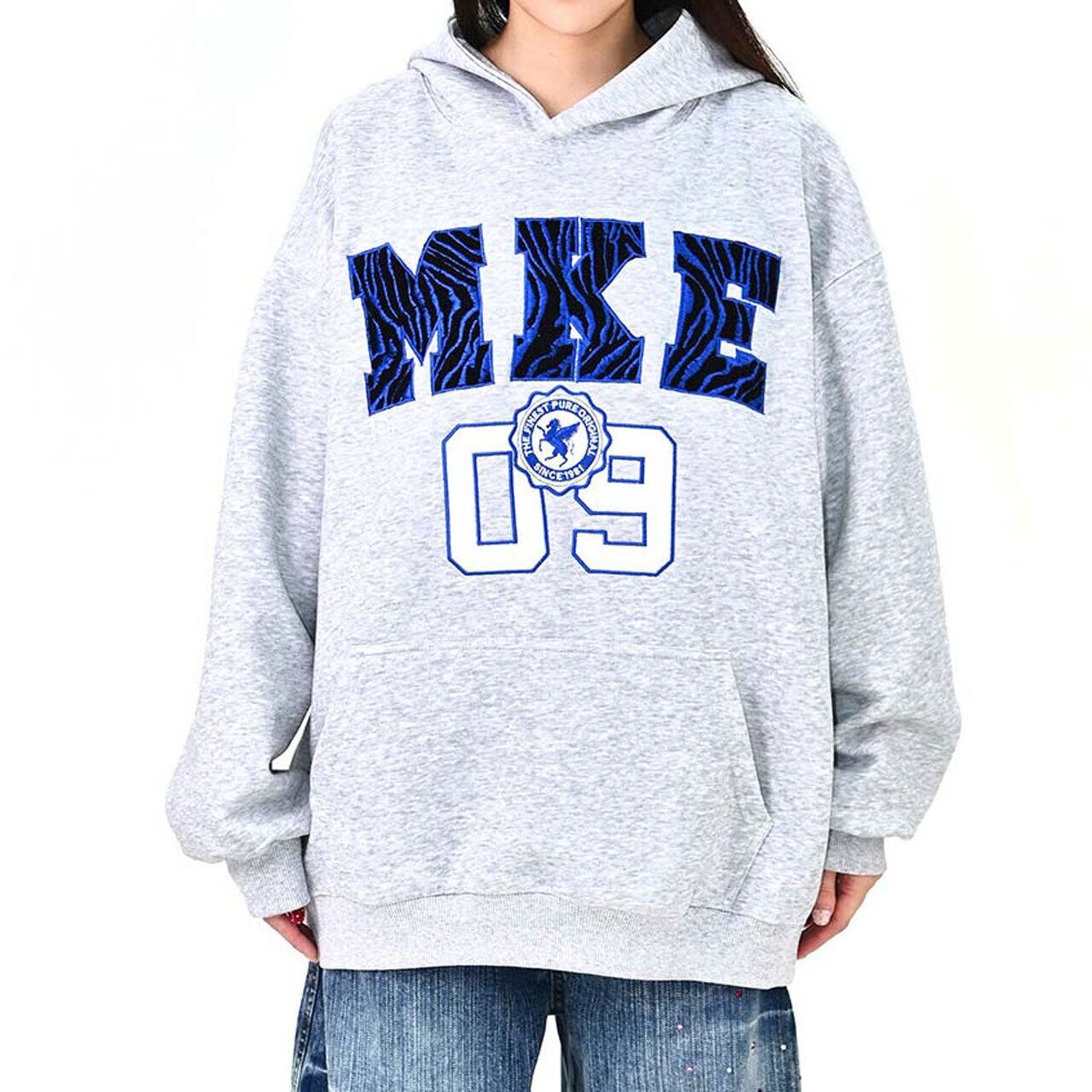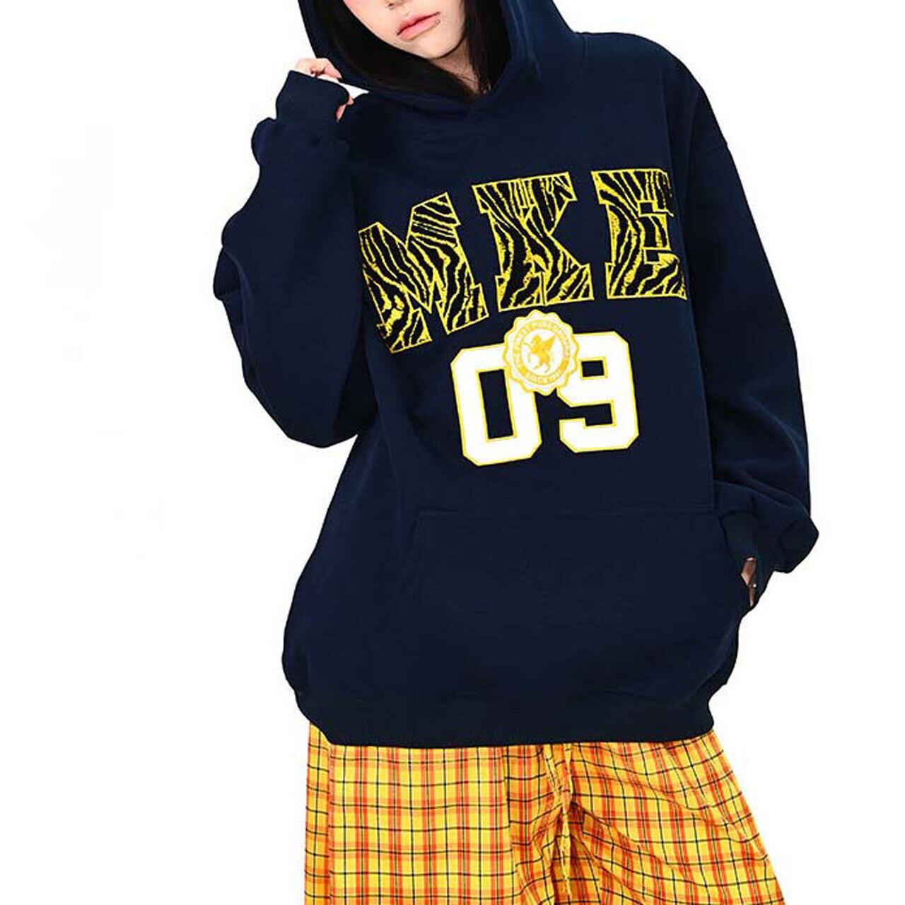 インパクトのあるロゴデザインが視線を集める、ストリート感たっぷりのフーディ。