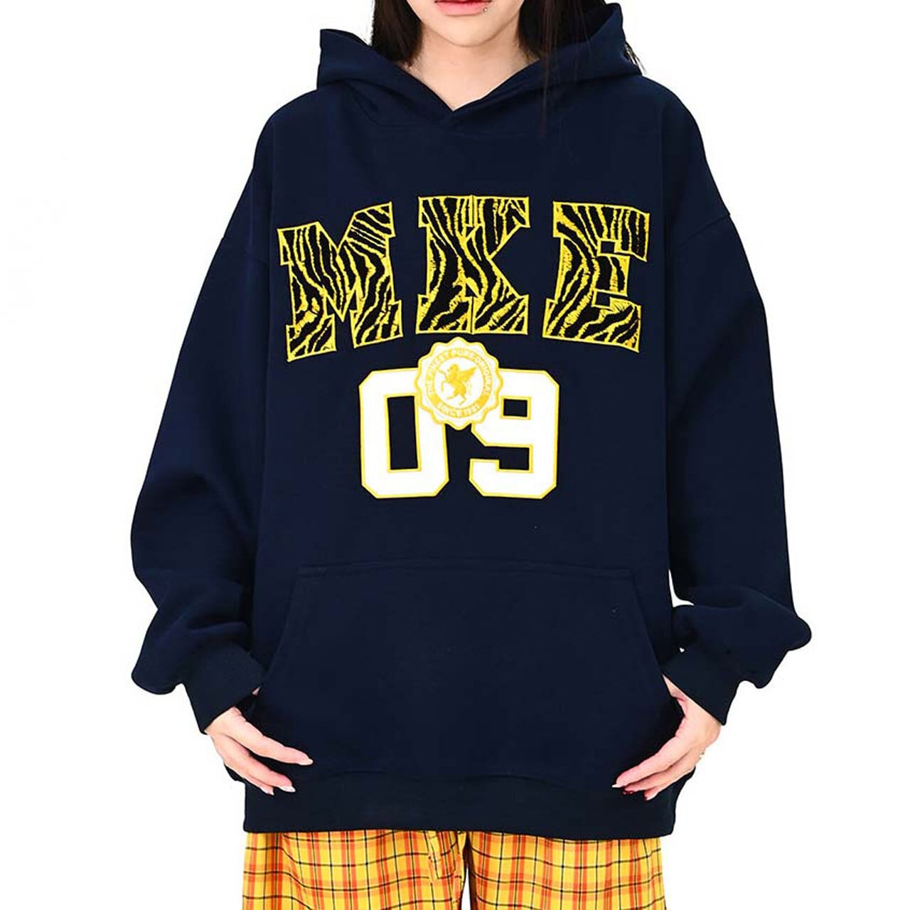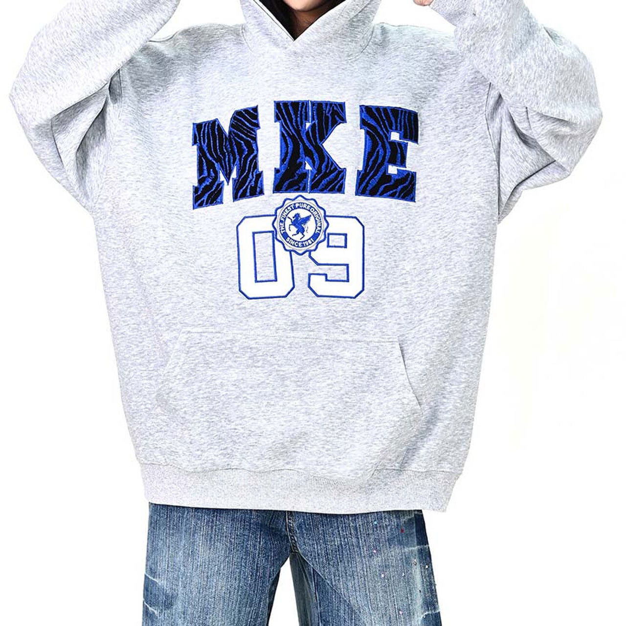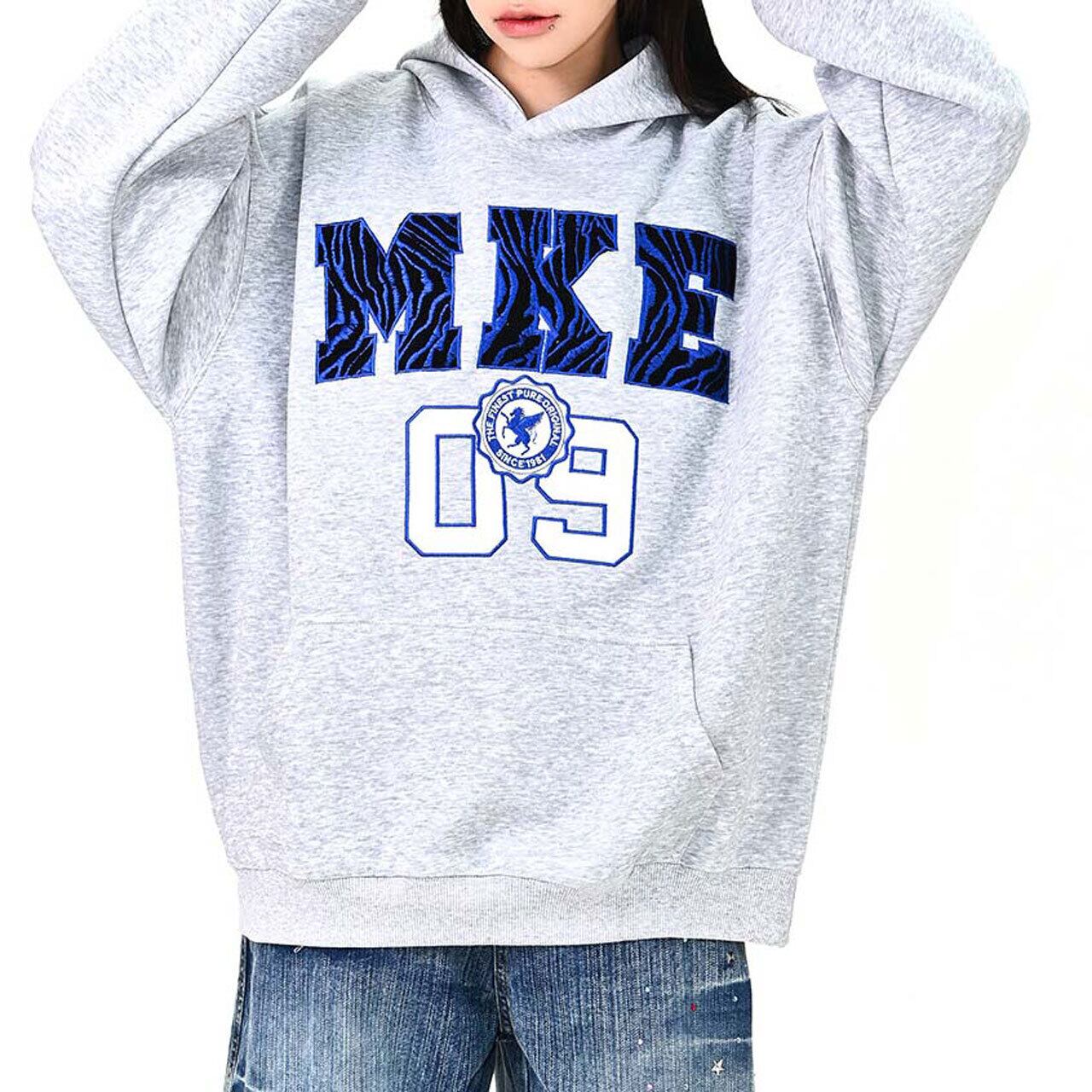 インパクトのあるロゴデザインが視線を集める、ストリート感たっぷりのフーディ。