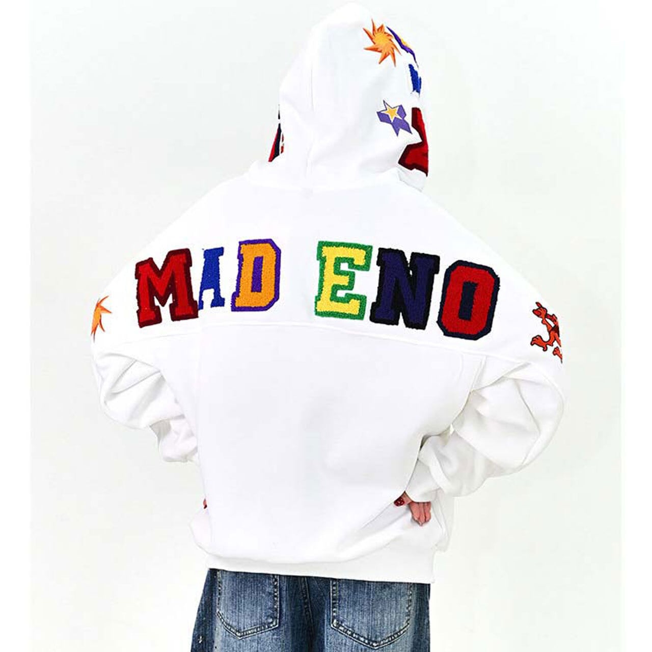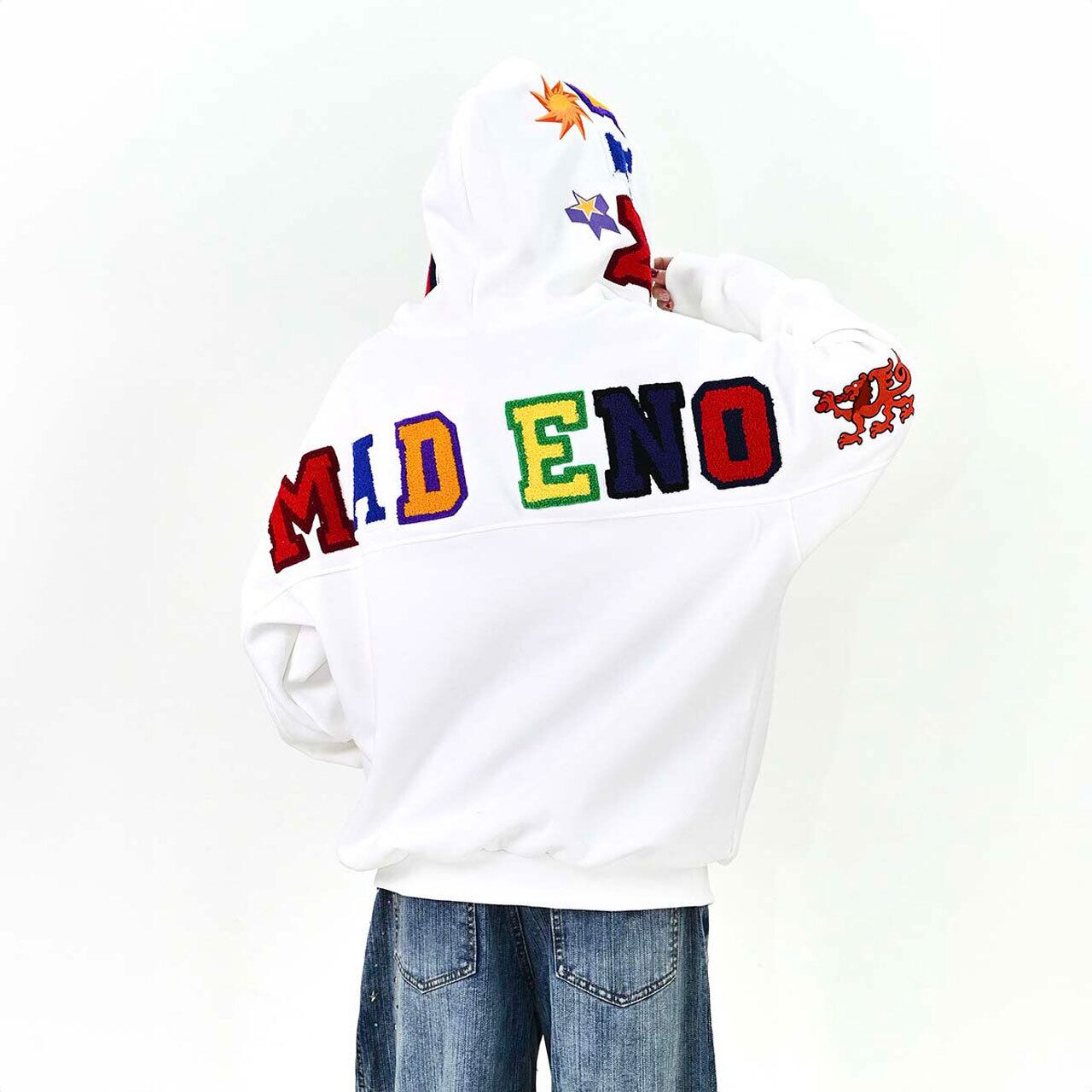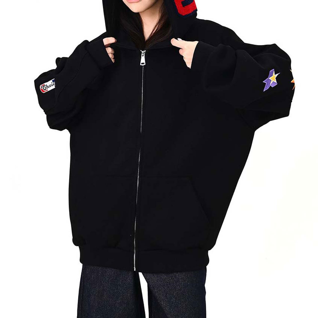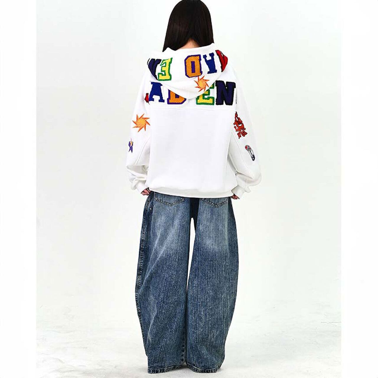 バックスタイルに大胆なロゴモチーフをあしらった、後ろ姿まで映えるフーディ。