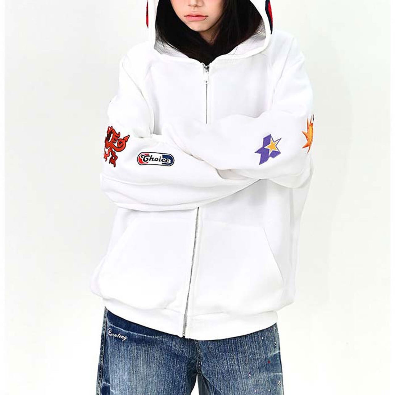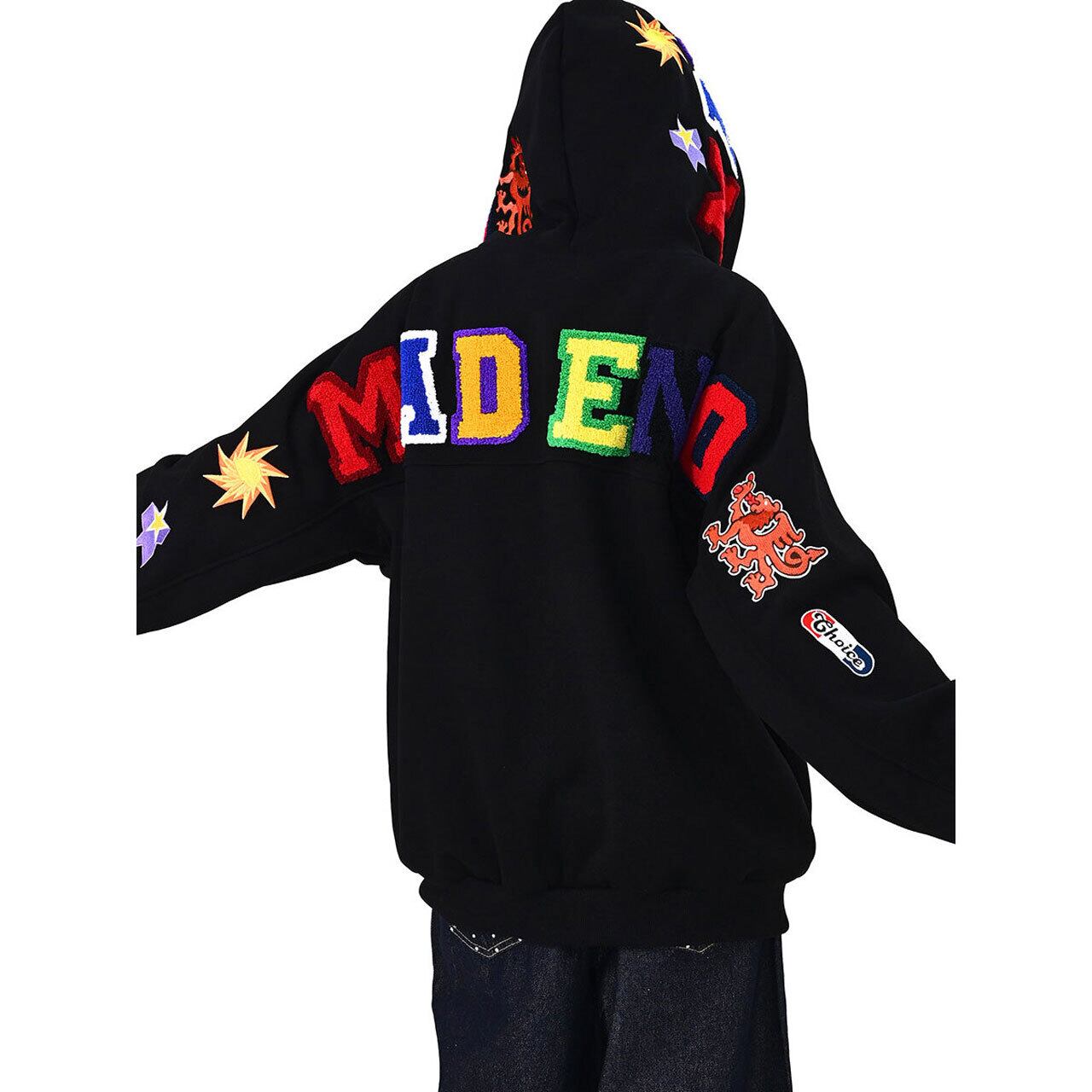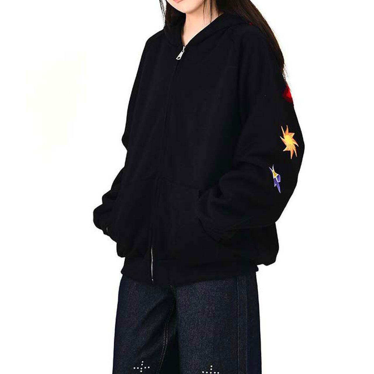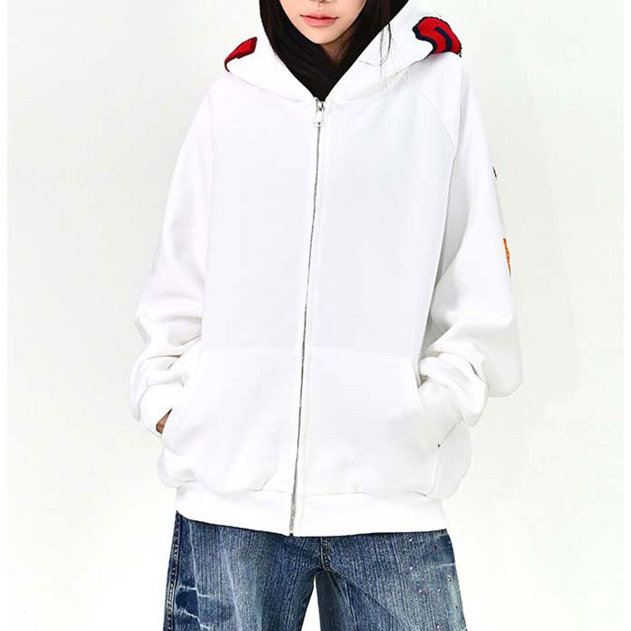 バックスタイルに大胆なロゴモチーフをあしらった、後ろ姿まで映えるフーディ。