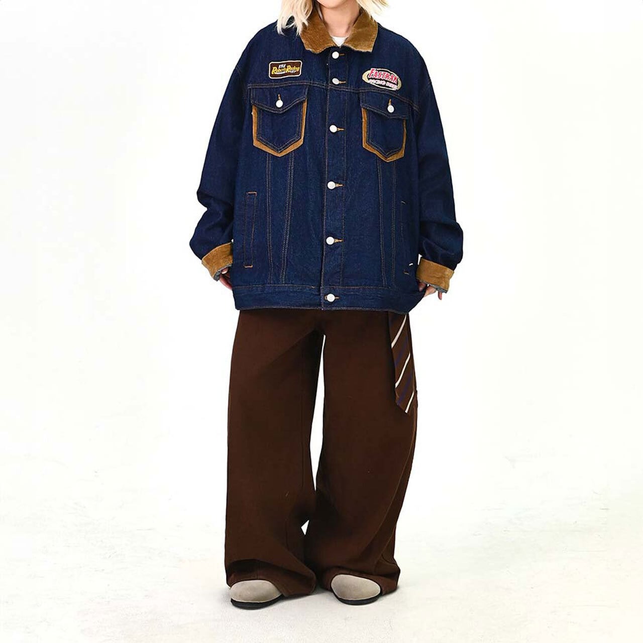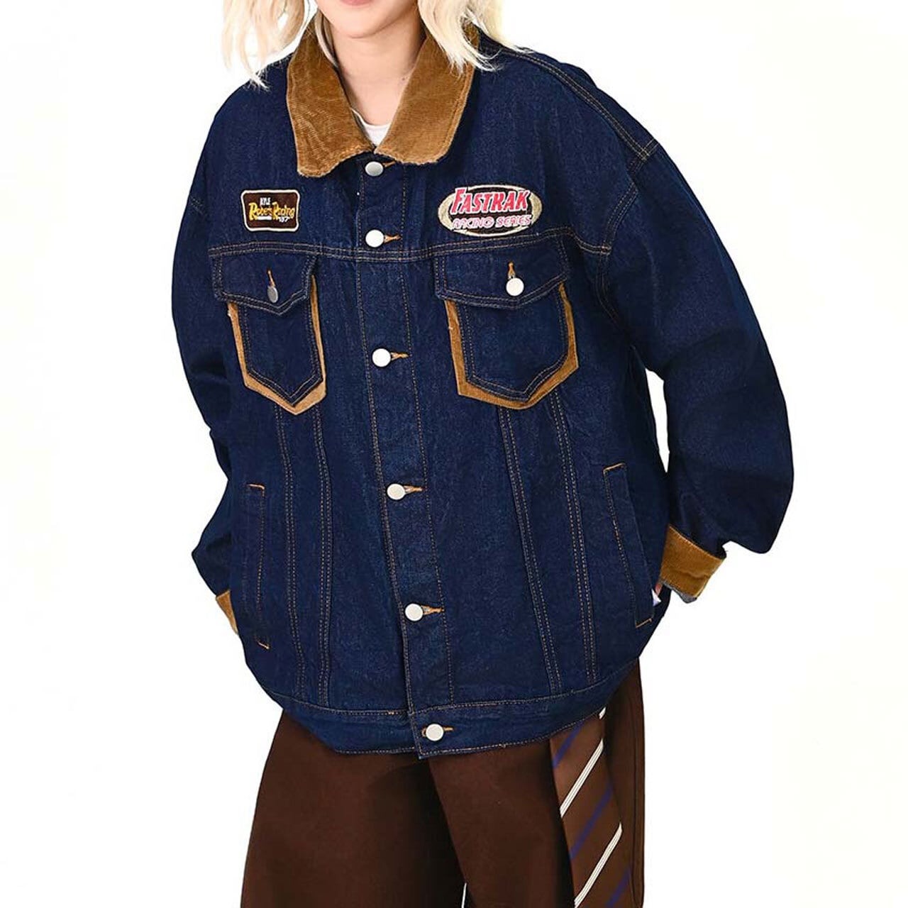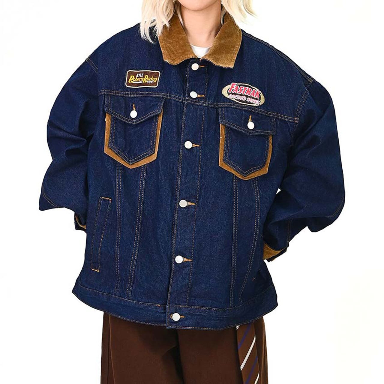 ワッペンディテールと配色切替が目を引く、ヴィンテージムード漂うデニムジャケット。
