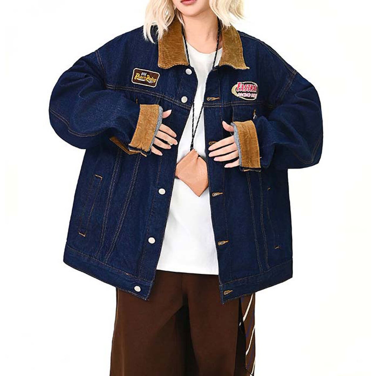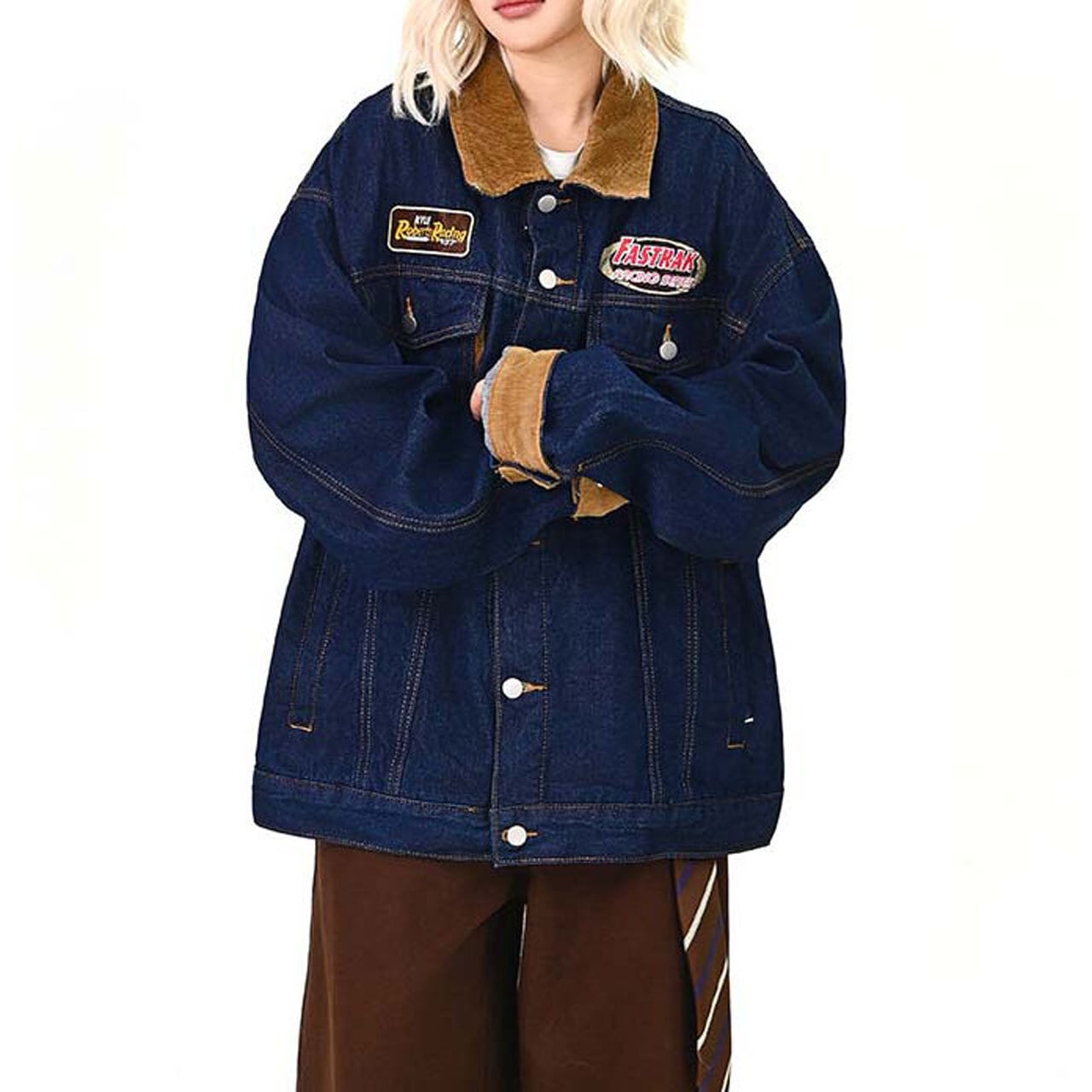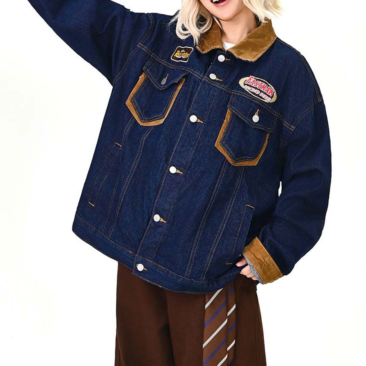 ワッペンディテールと配色切替が目を引く、ヴィンテージムード漂うデニムジャケット。
