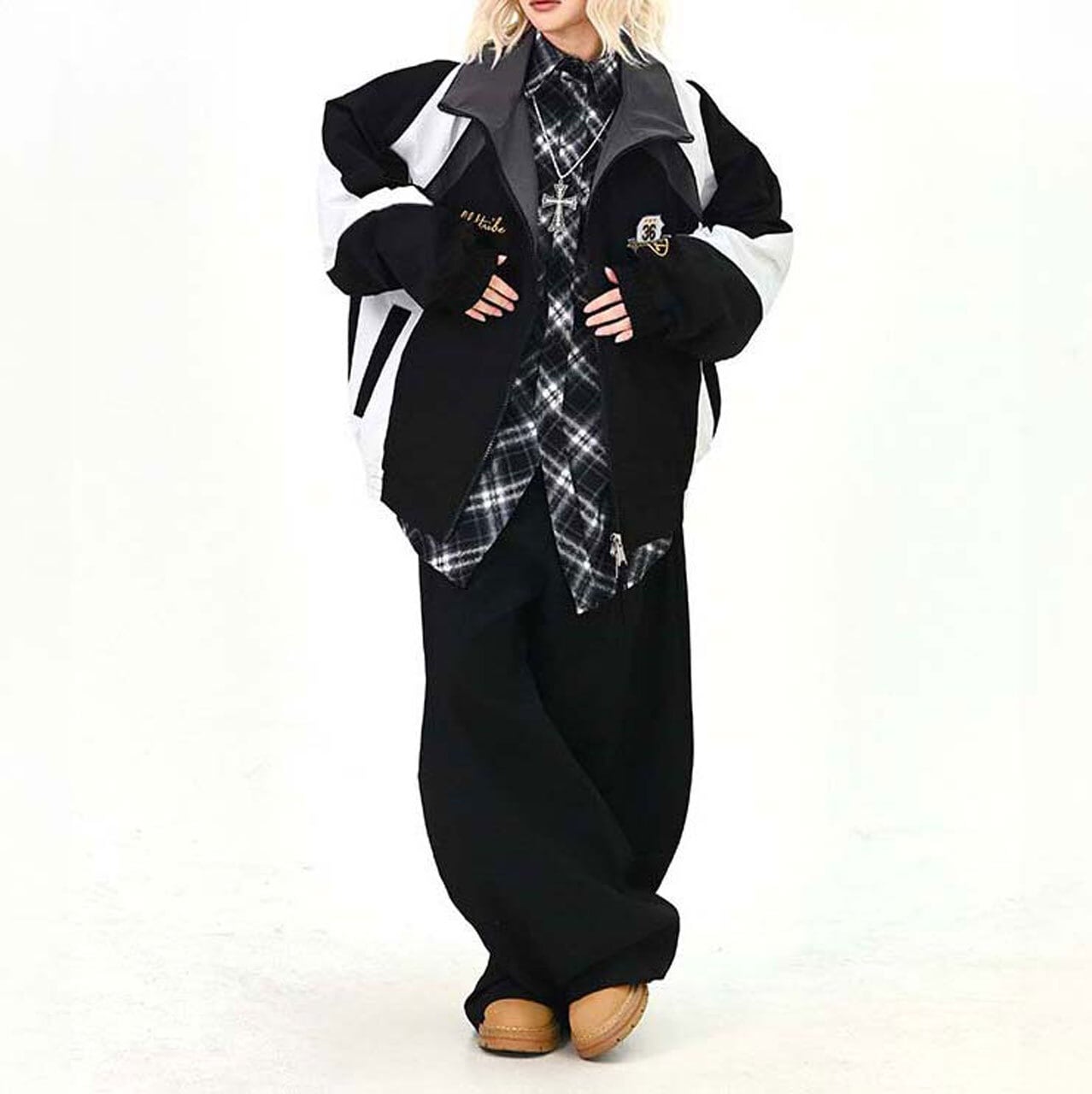 ワイドパンツやデニムと合わせて、ストリート感のあるカジュアルスタイルに。