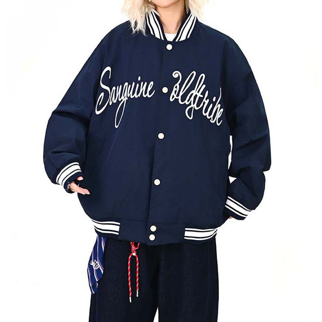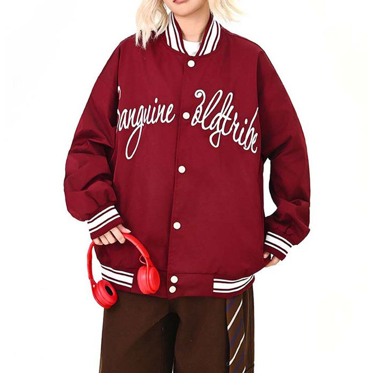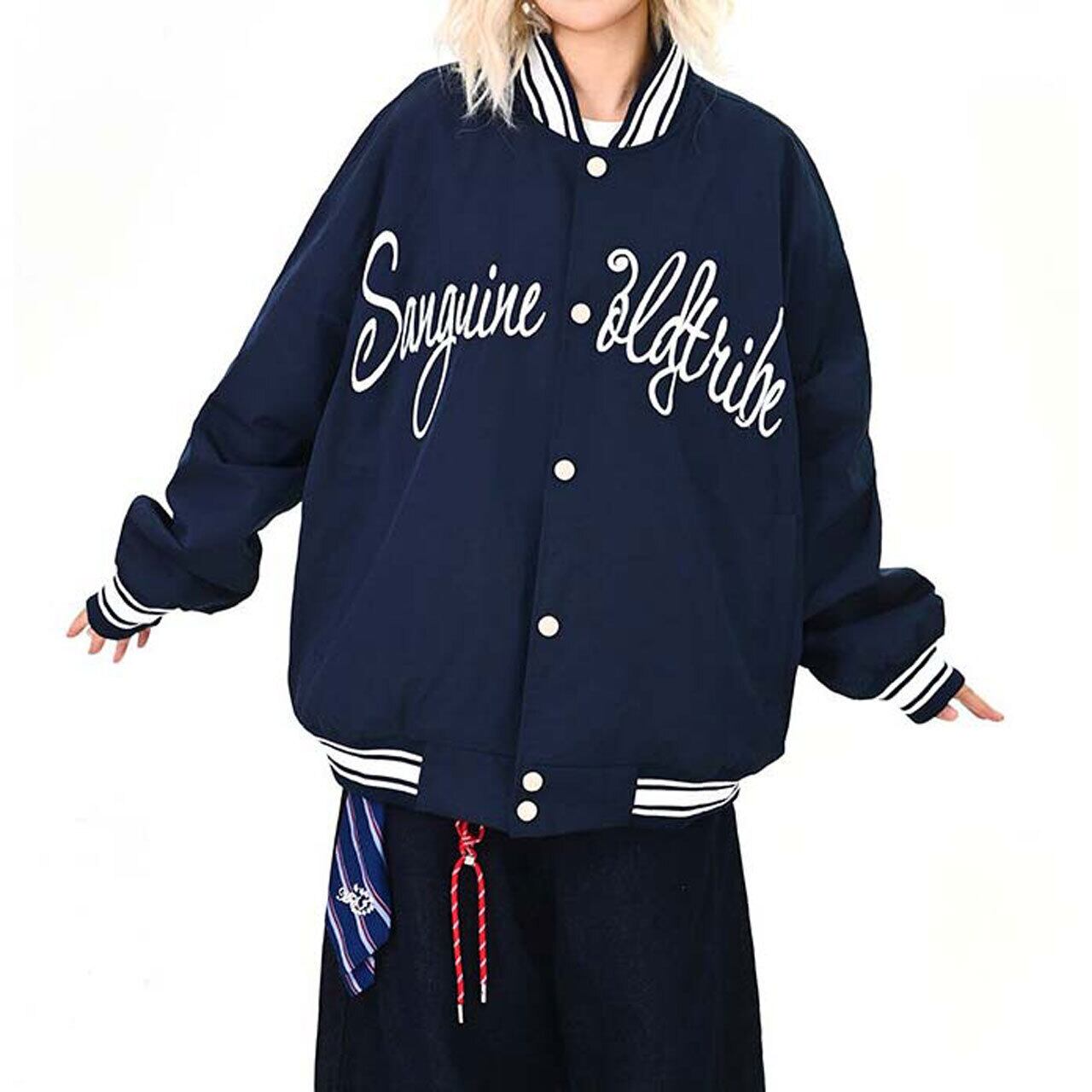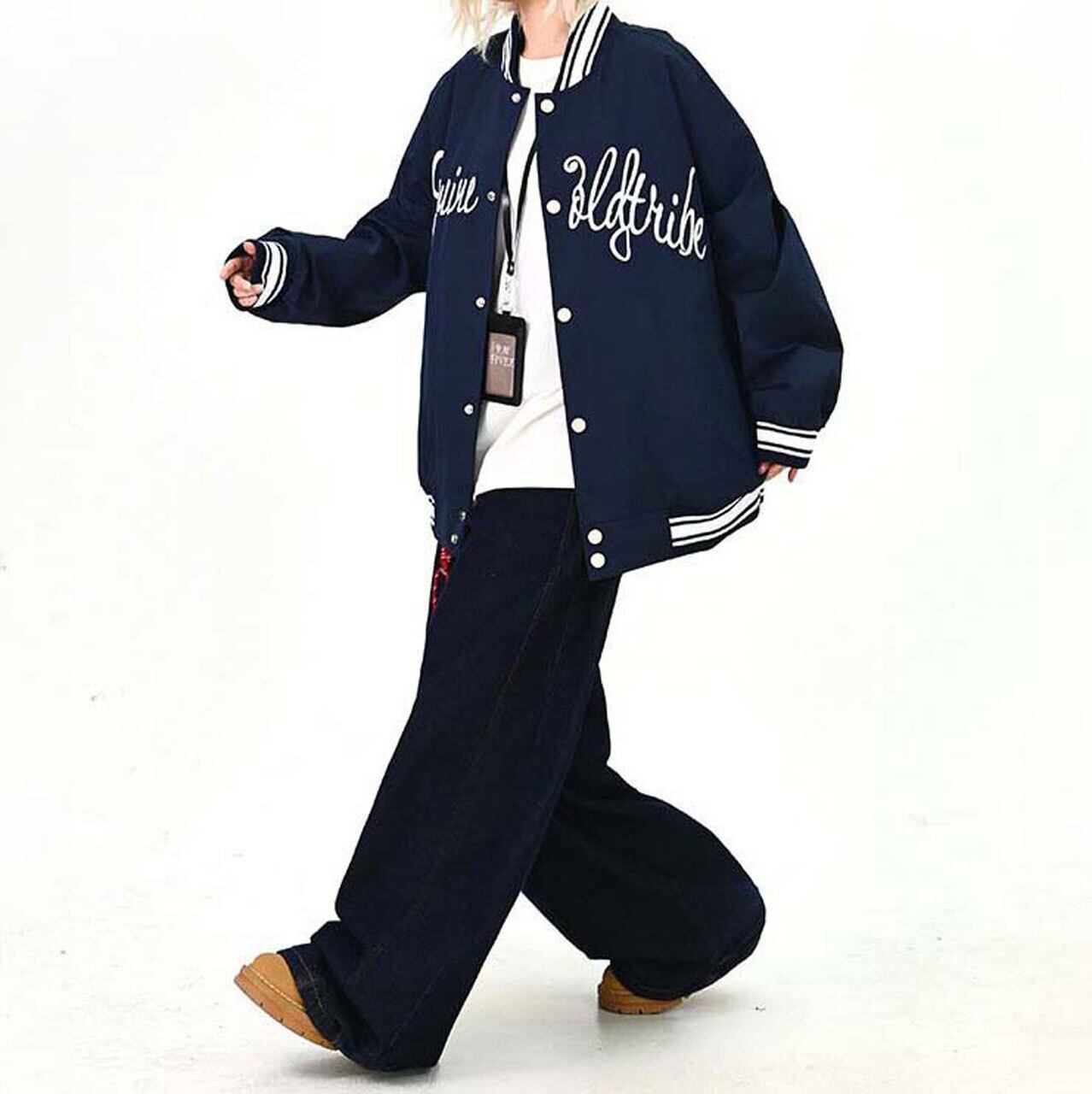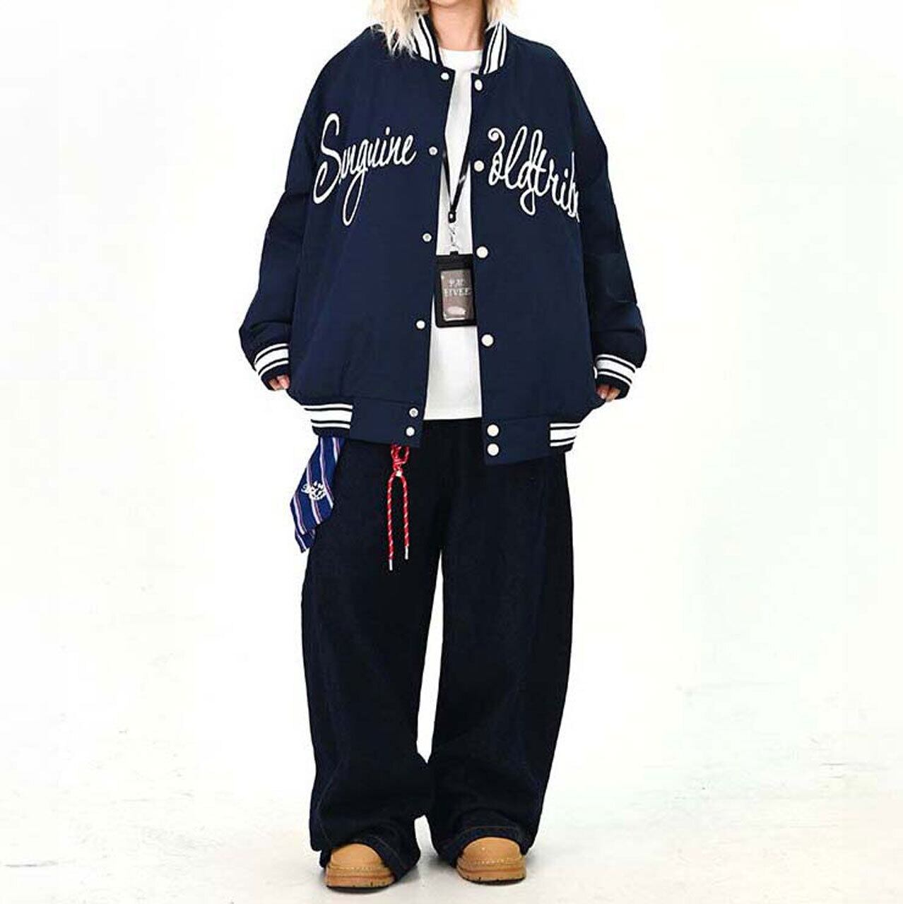 フロントのロゴが視線を引く、ストリート感強めのスタジャン。