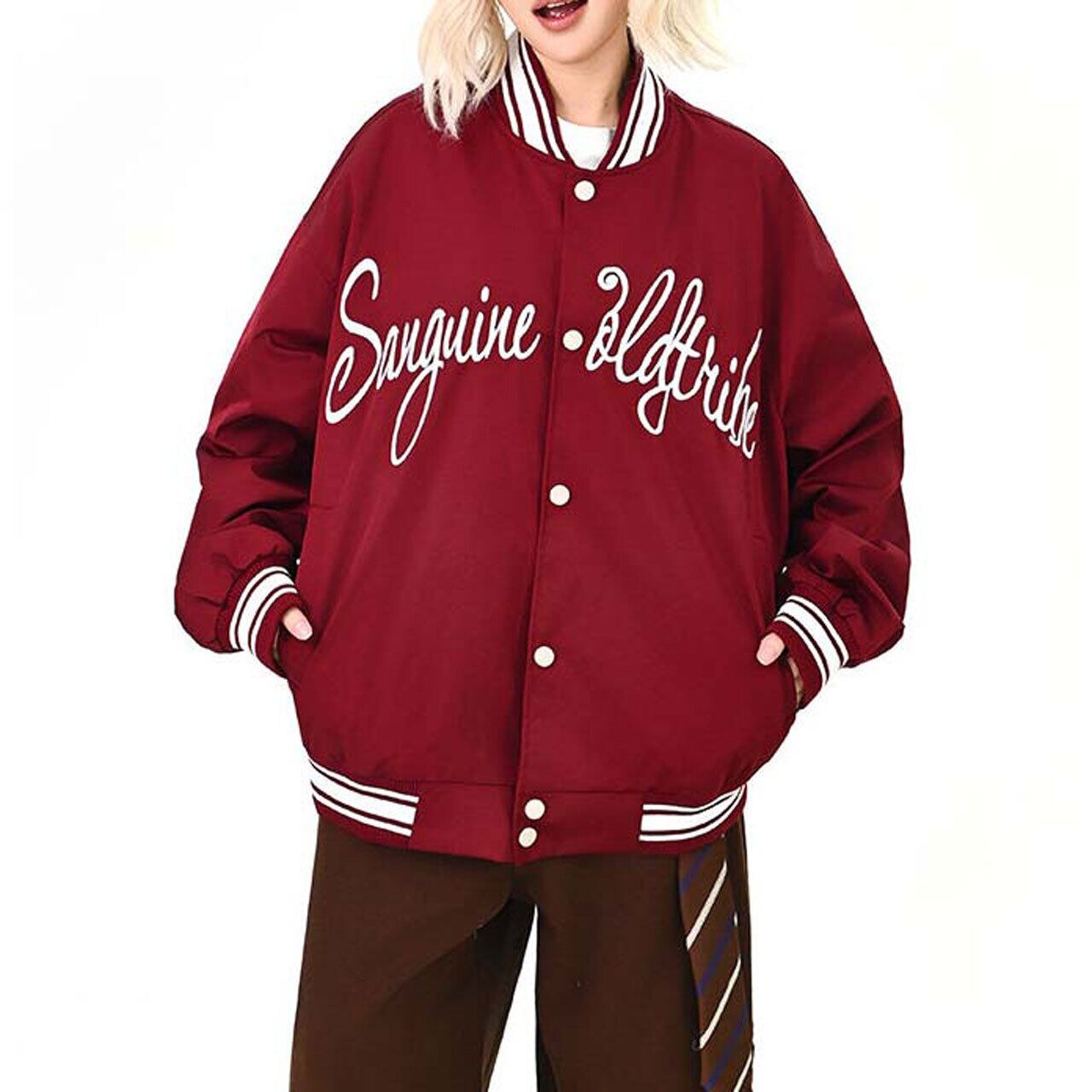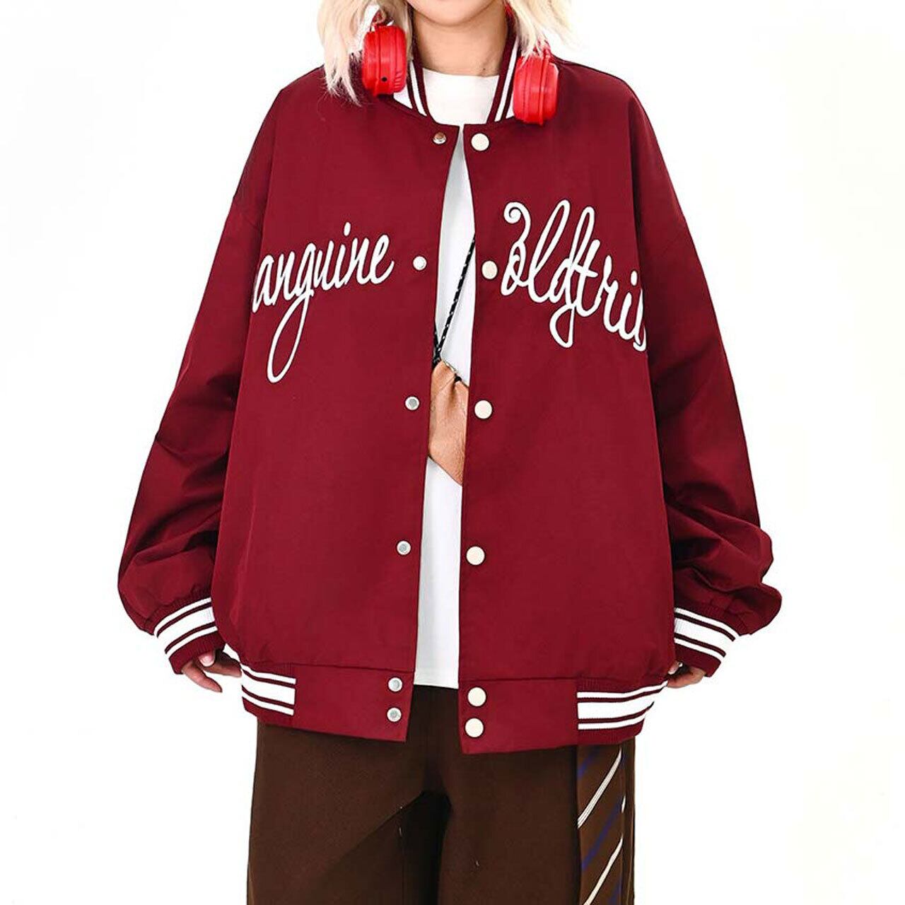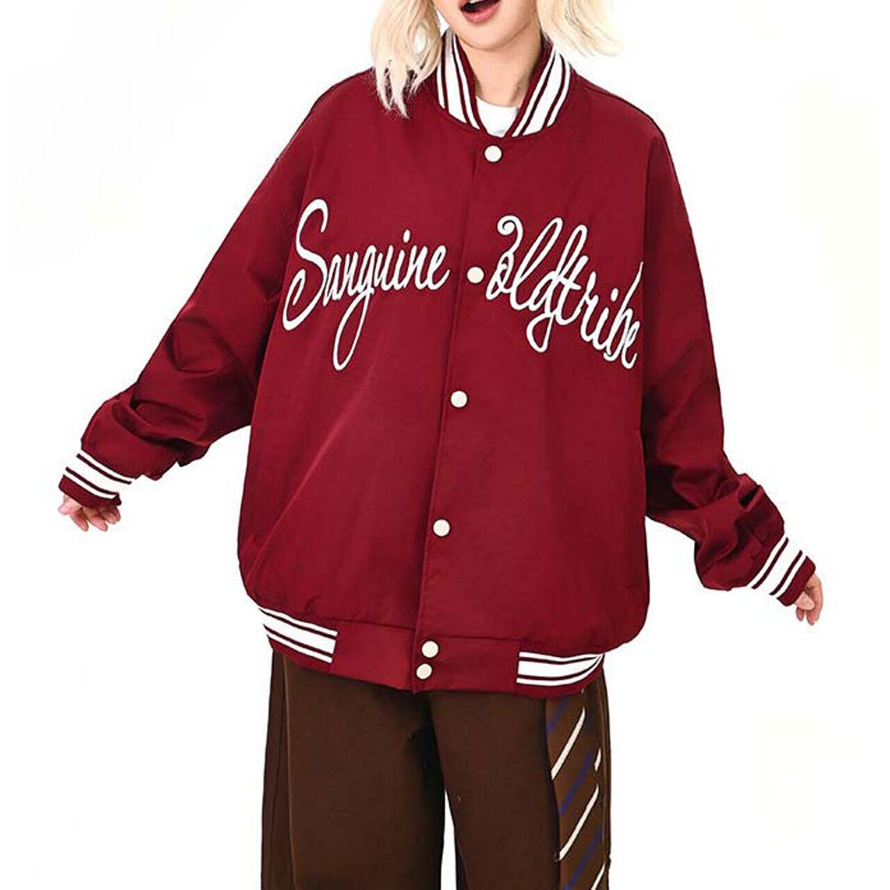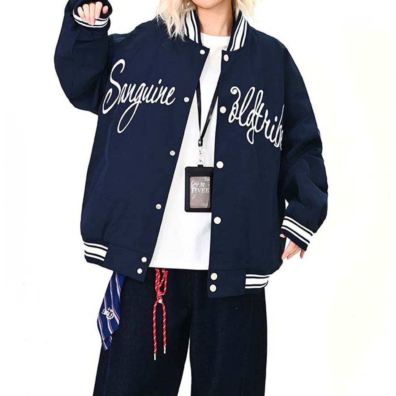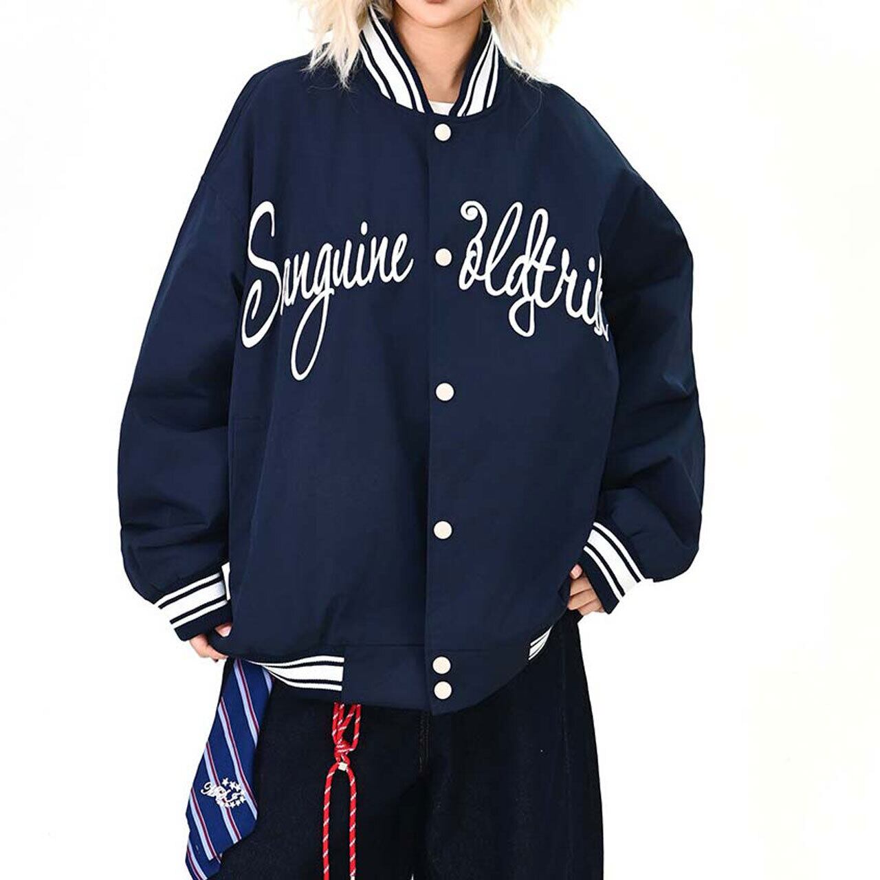 フロントのロゴが視線を引く、ストリート感強めのスタジャン。