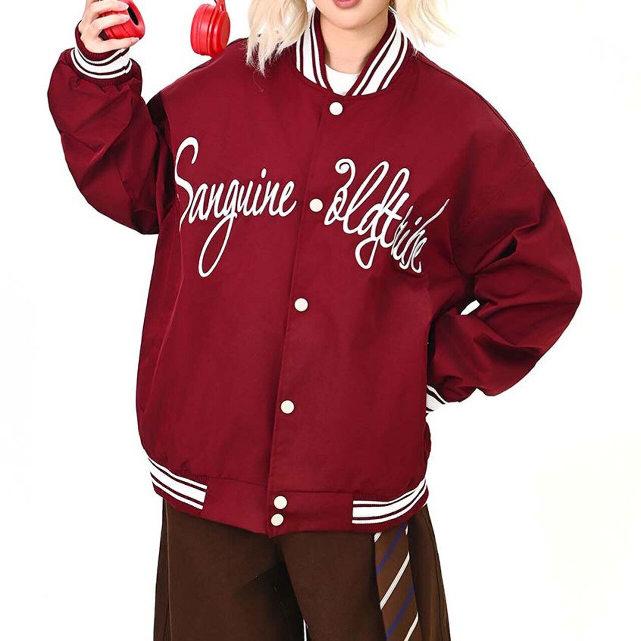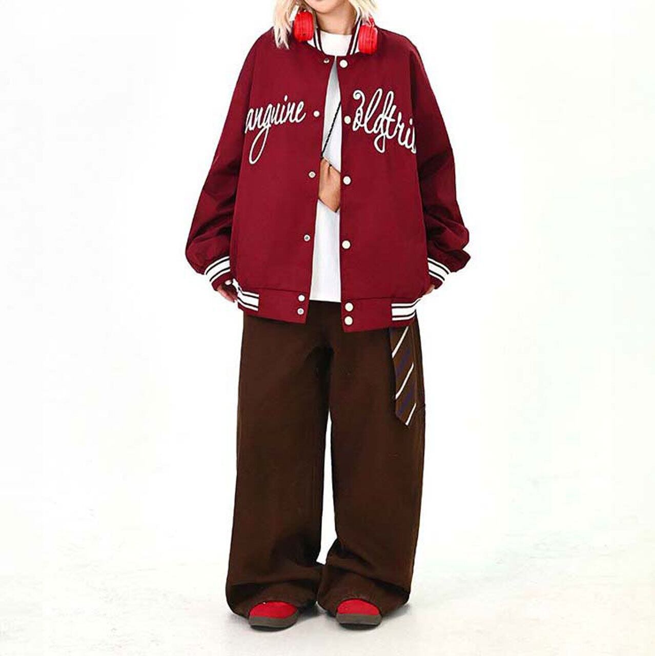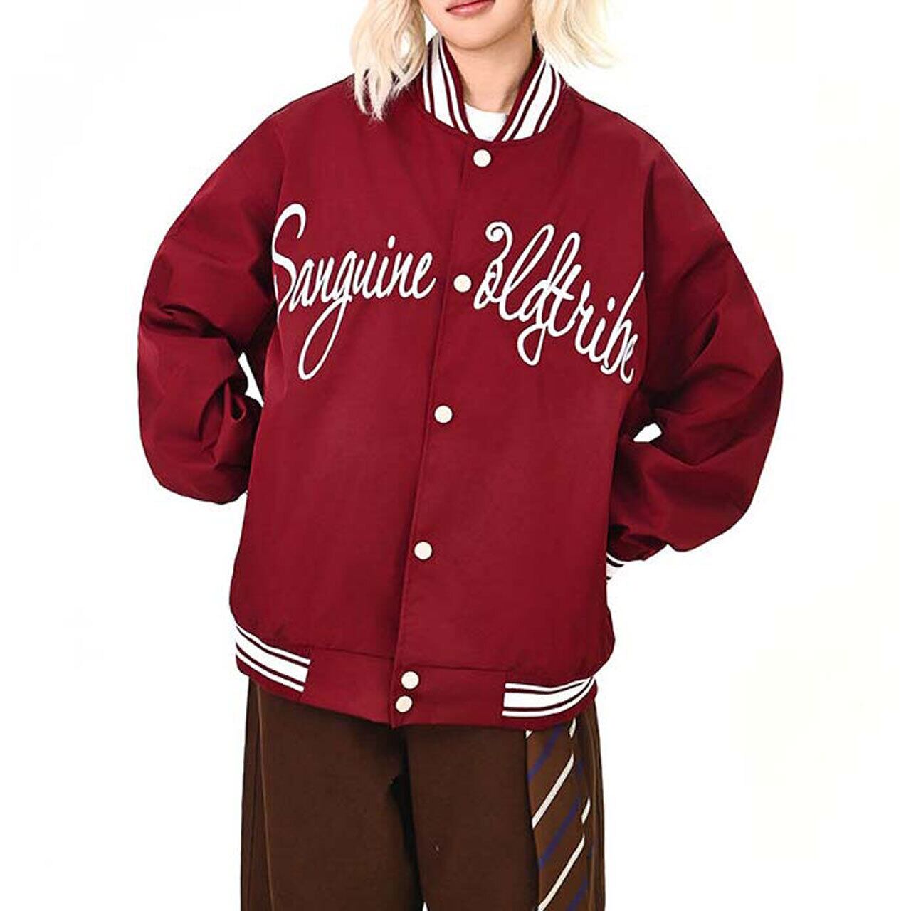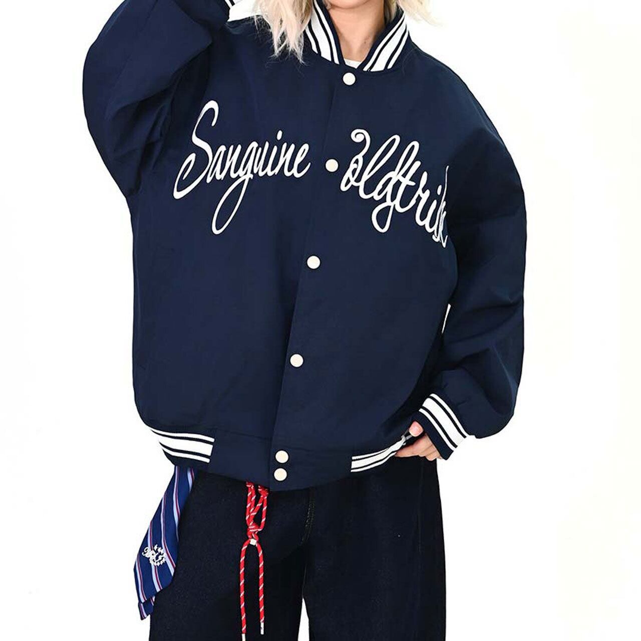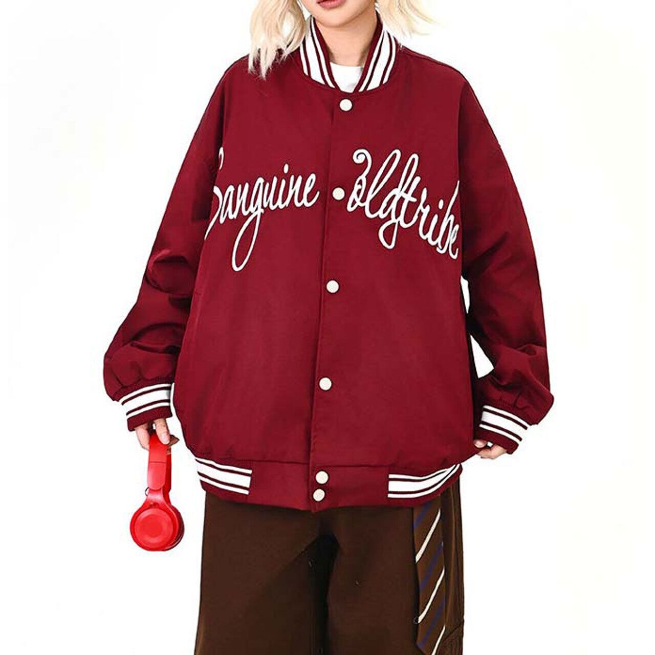 フロントのロゴが視線を引く、ストリート感強めのスタジャン。