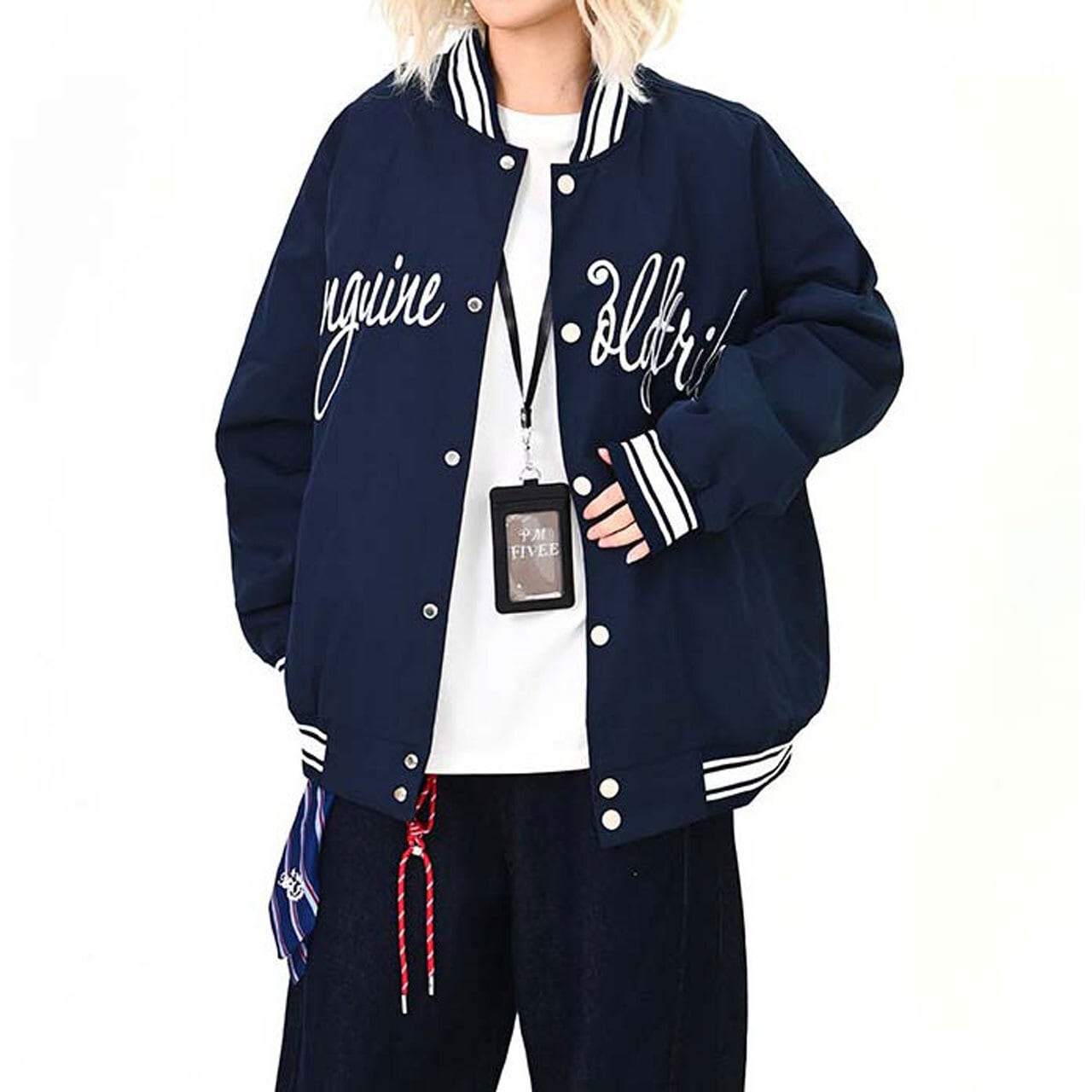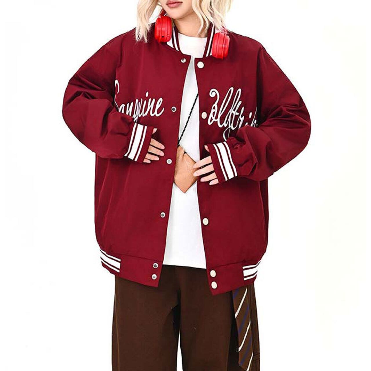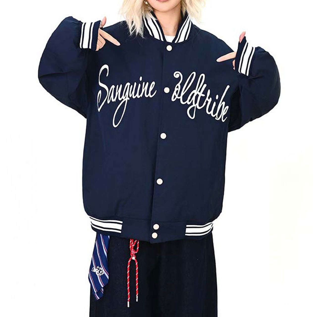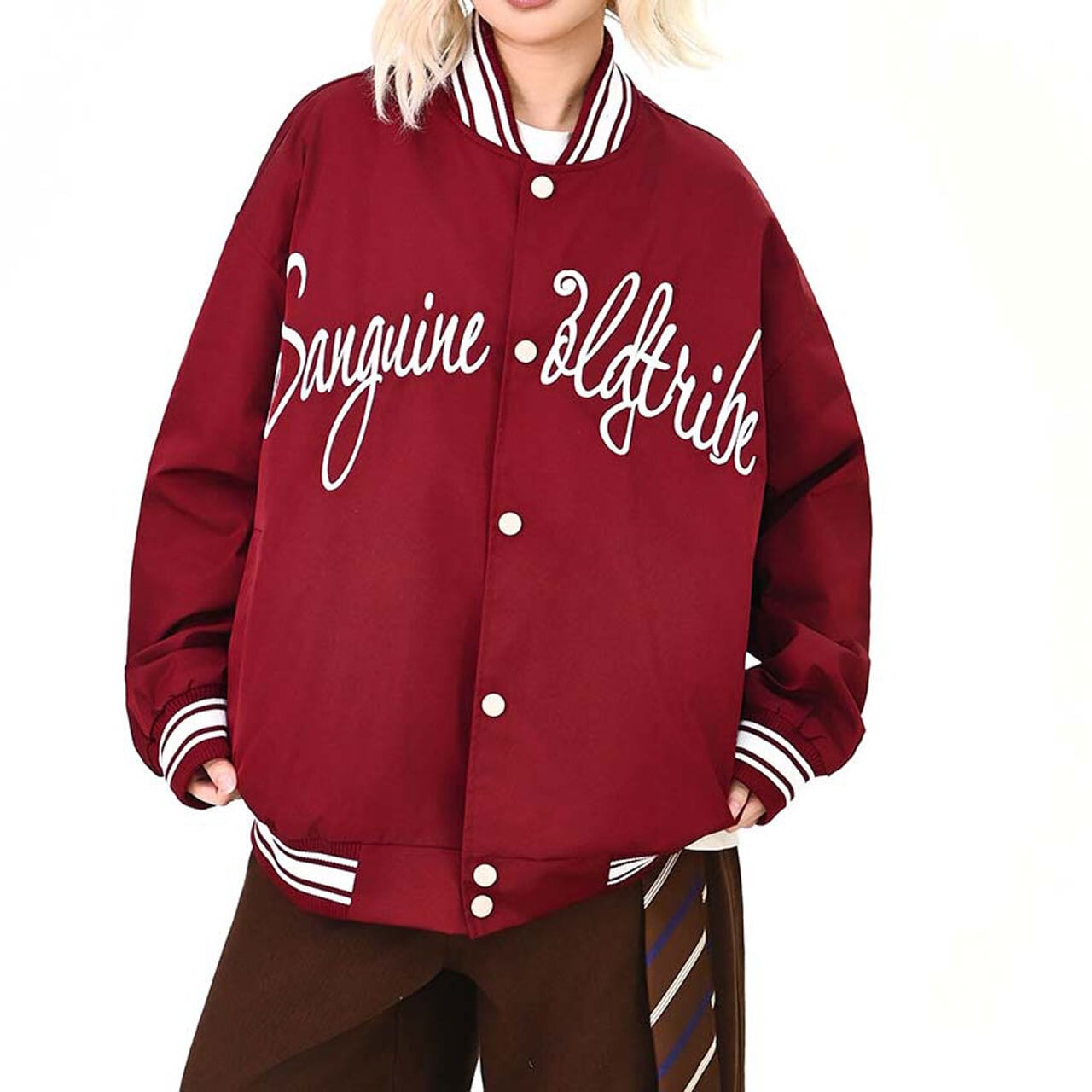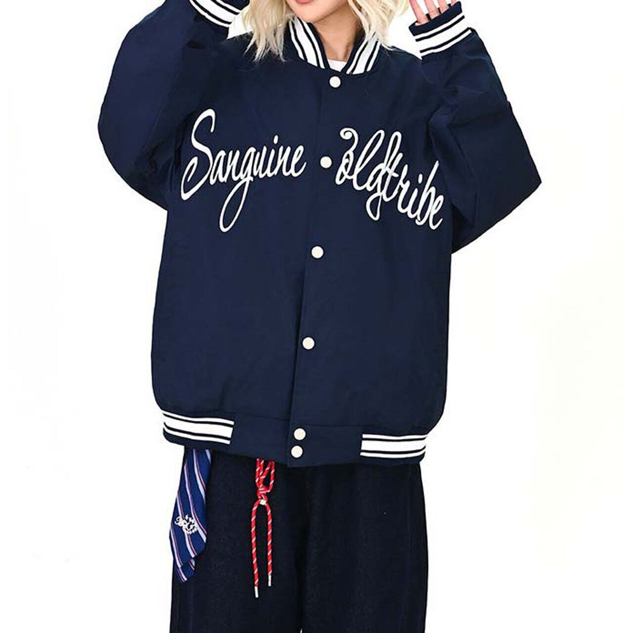 フロントのロゴが視線を引く、ストリート感強めのスタジャン。