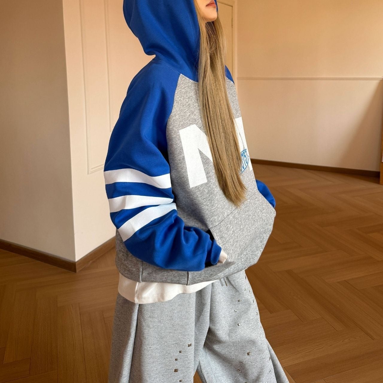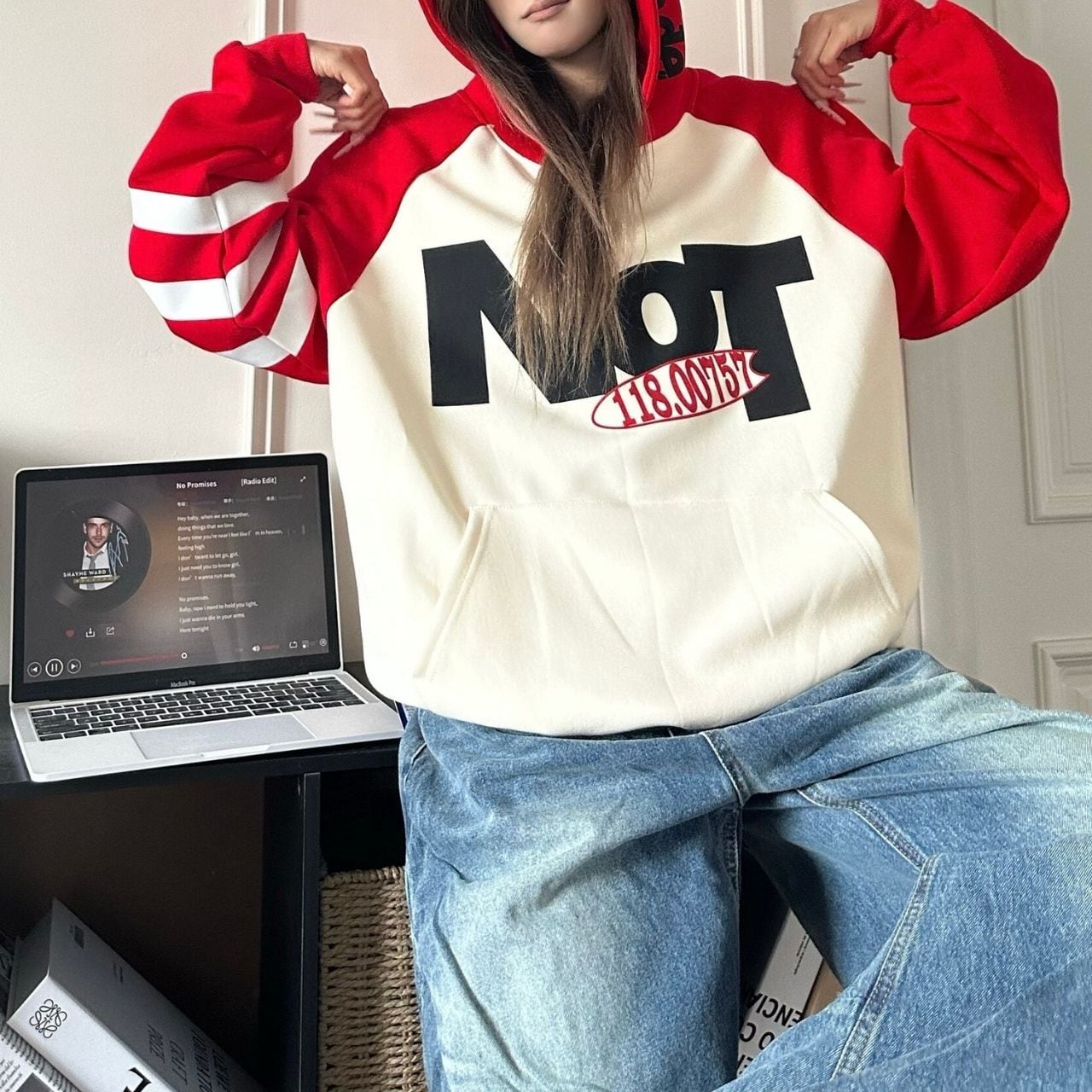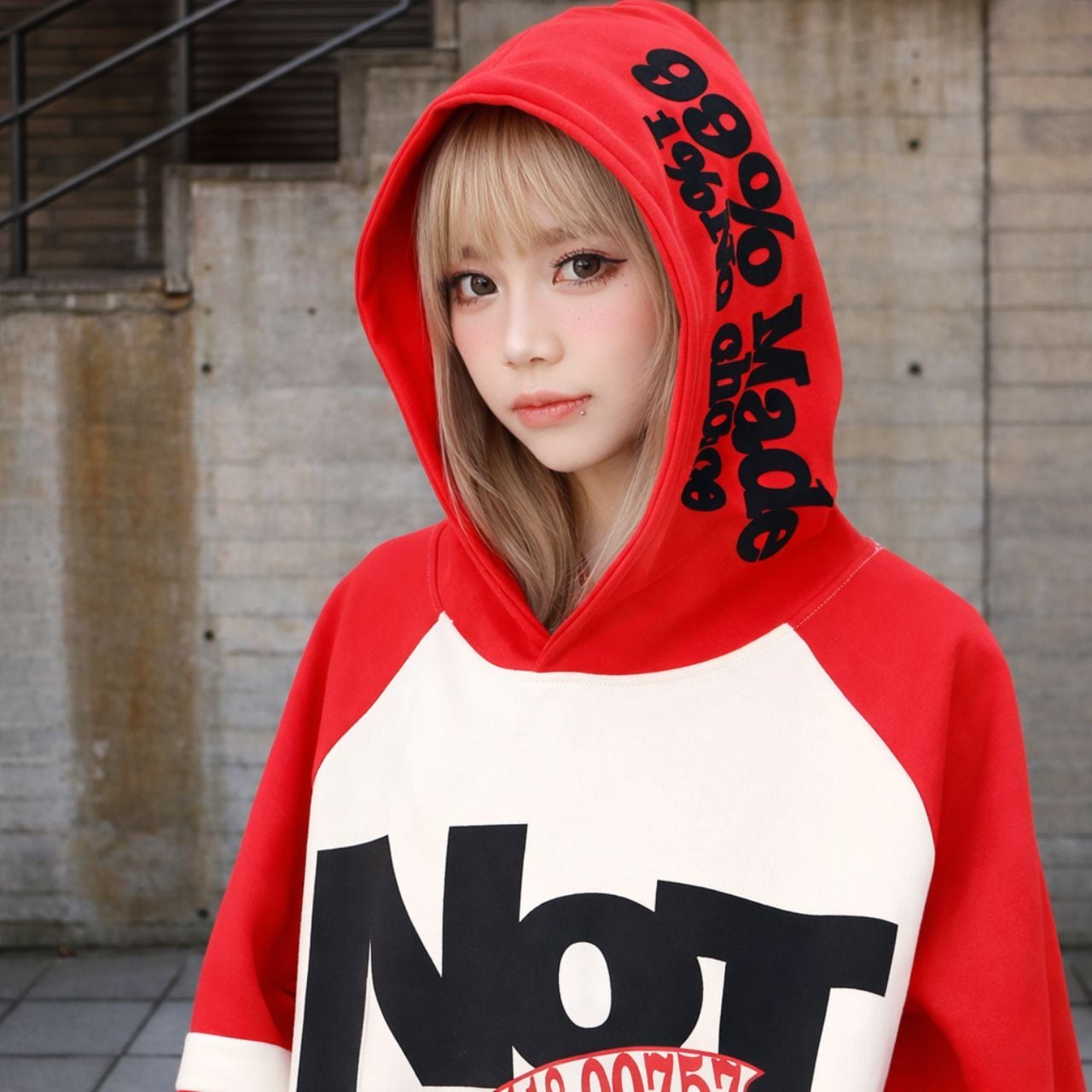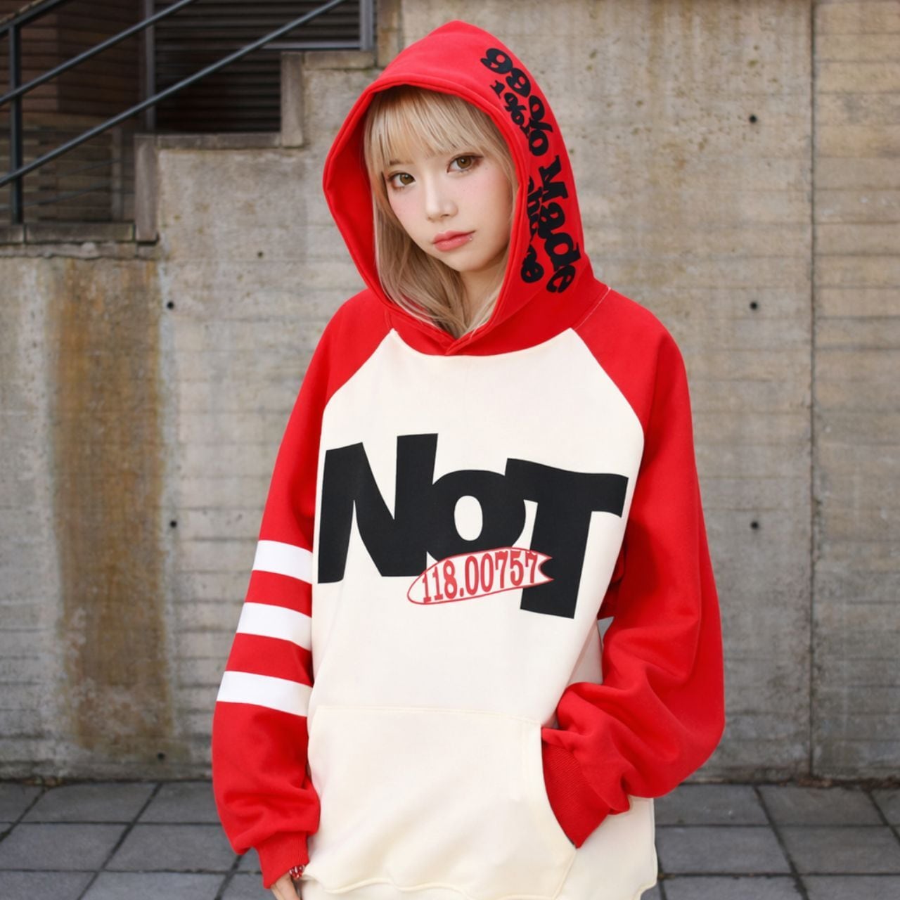 大胆なロゴデザインが目を引く、ストリート感たっぷりのフーディ。