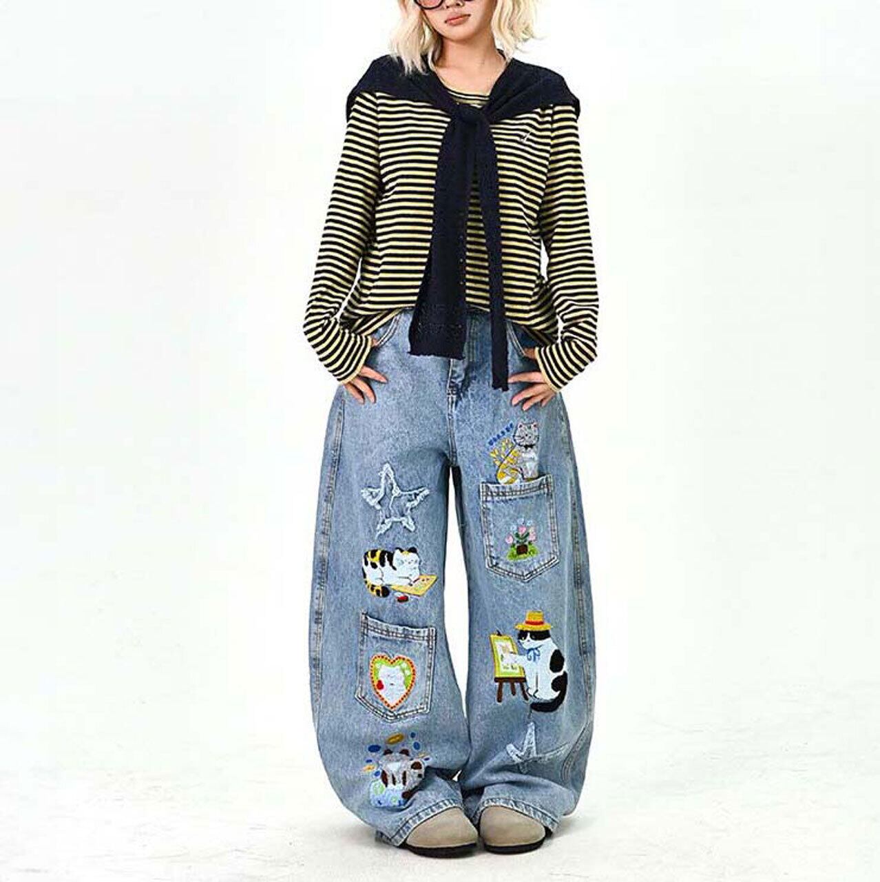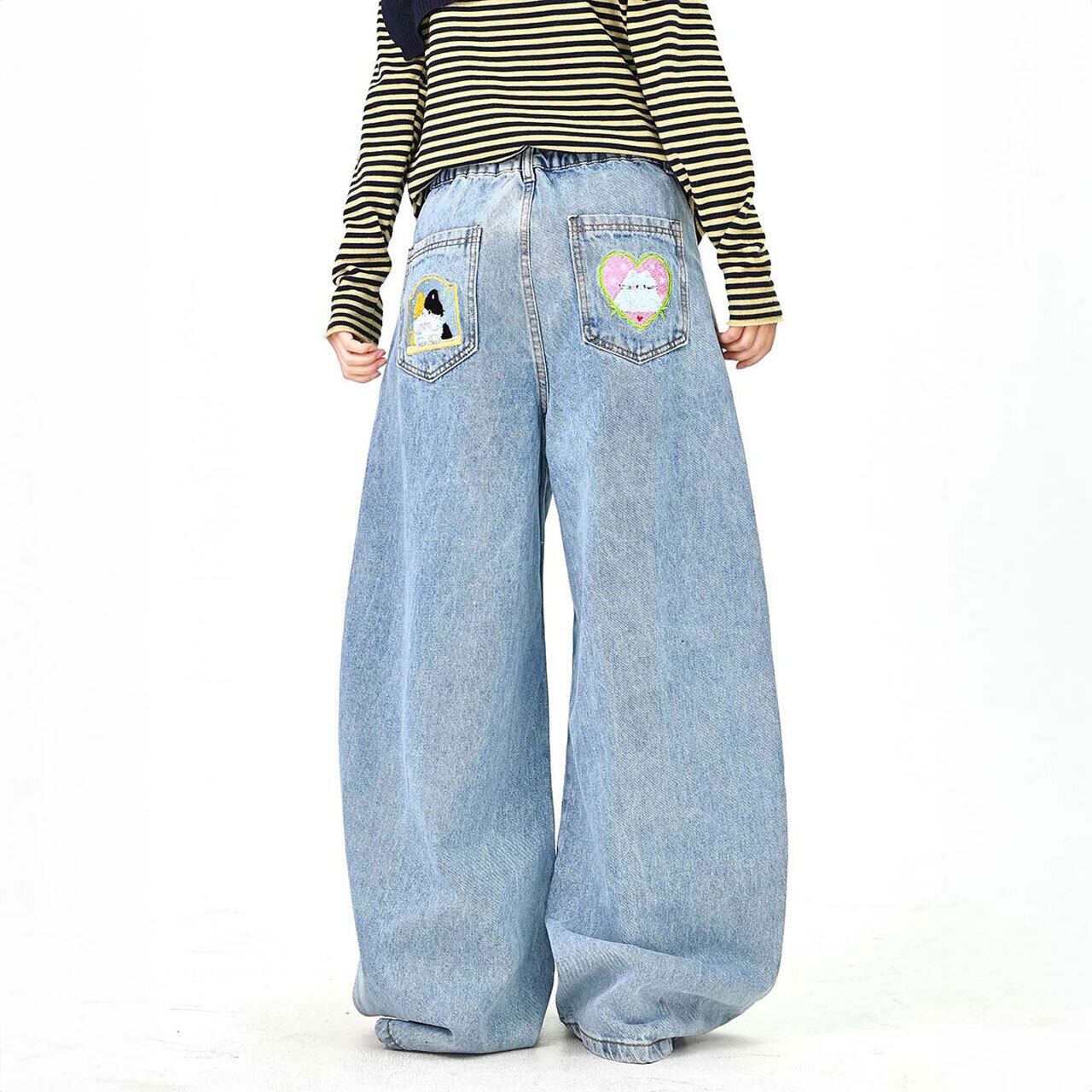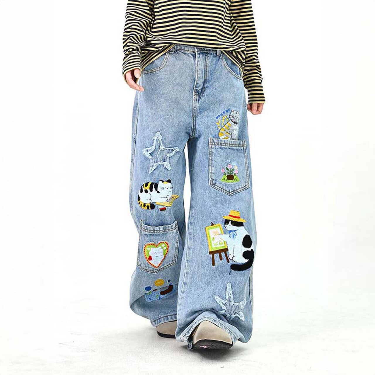 キャットアートエンブロイダリーデニムパンツ 1col R01651