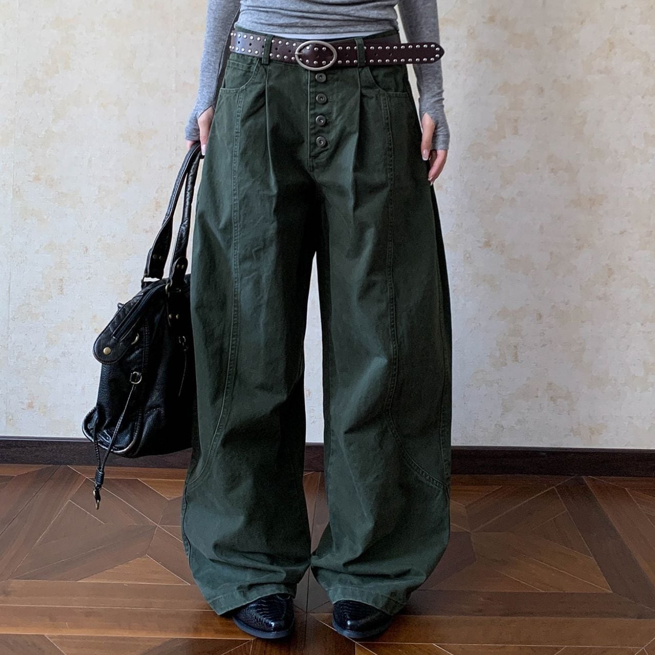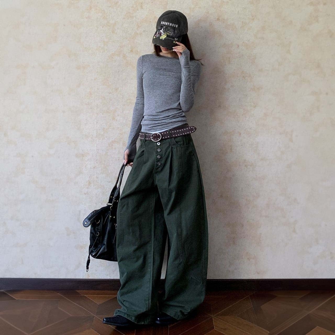 フロントボタンミリタリーワイドパンツ 1col R01654